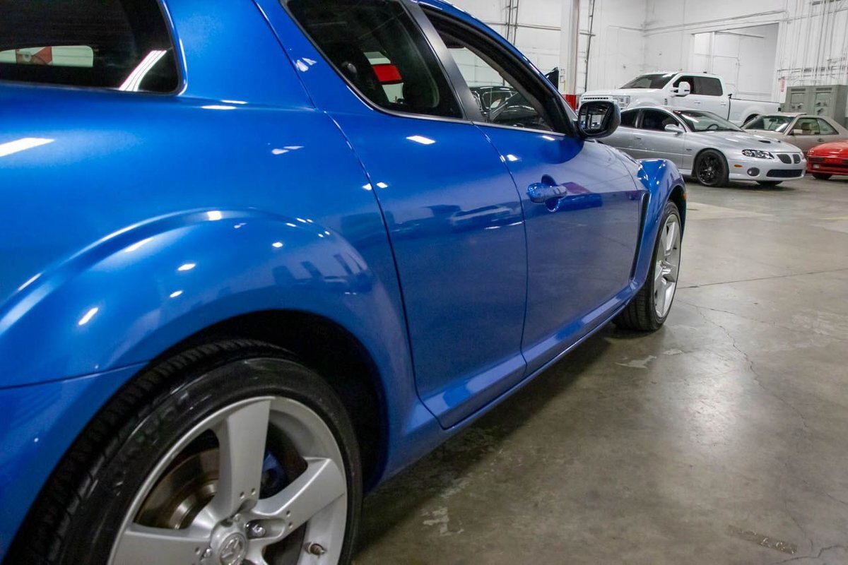 The Mazda RX-8 is a sports car manufactured by Japanese automobile manufacturer Mazda between 2002 and 2012. It was first shown in 2001 at the North American International Auto Show. It is the successor to the RX-7 and, like its predecessors in the RX range, it is powered by a rotary Wankel engine. The RX-8 was available for sale in North America from the 2003 model year. The Mazda RX-8 utilizes a rotary Wankel engine. The piston-less engine uses a triangular rotor inside an oval housing and produces a modest 189 horsepower and 159-pound feet of torque. Power bumps up to 238 horsepower in 2008-2012 examples. A myriad of various drivetrains are available in the Mazda RX-8.