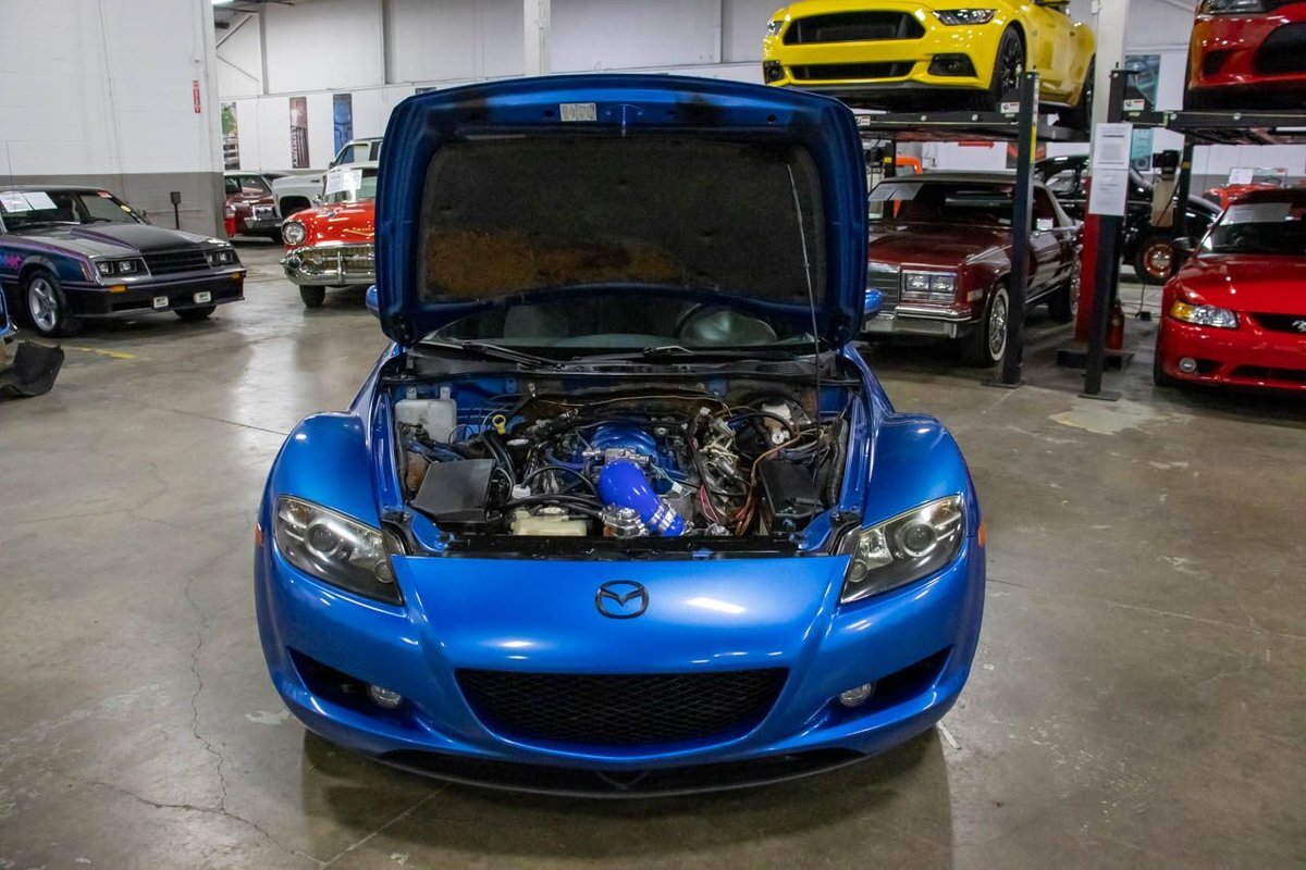 GR Auto Gallery is pleased to present this LS Swapped, 2006 Mazda RX8 for your consideration. This RX8 comes with Blue exterior over a Black interior. Powering this Mazda is an LS1 5.7 Liter V8 making 359whp paired with a Tremec T56 6-speed manual transmission. This RX8 comes with some nice features such as: a new clutch, long tube headers, a new custom steel driveshaft to a '93 FD RX7, and new Tein Flex-Z coil overs, with new brakes and bushing as well, and much more. Drive this one out of our showroom or have us assist with shipping it to you anywhere in the United States! Don't hesitate to give us a call with any questions or for more information.