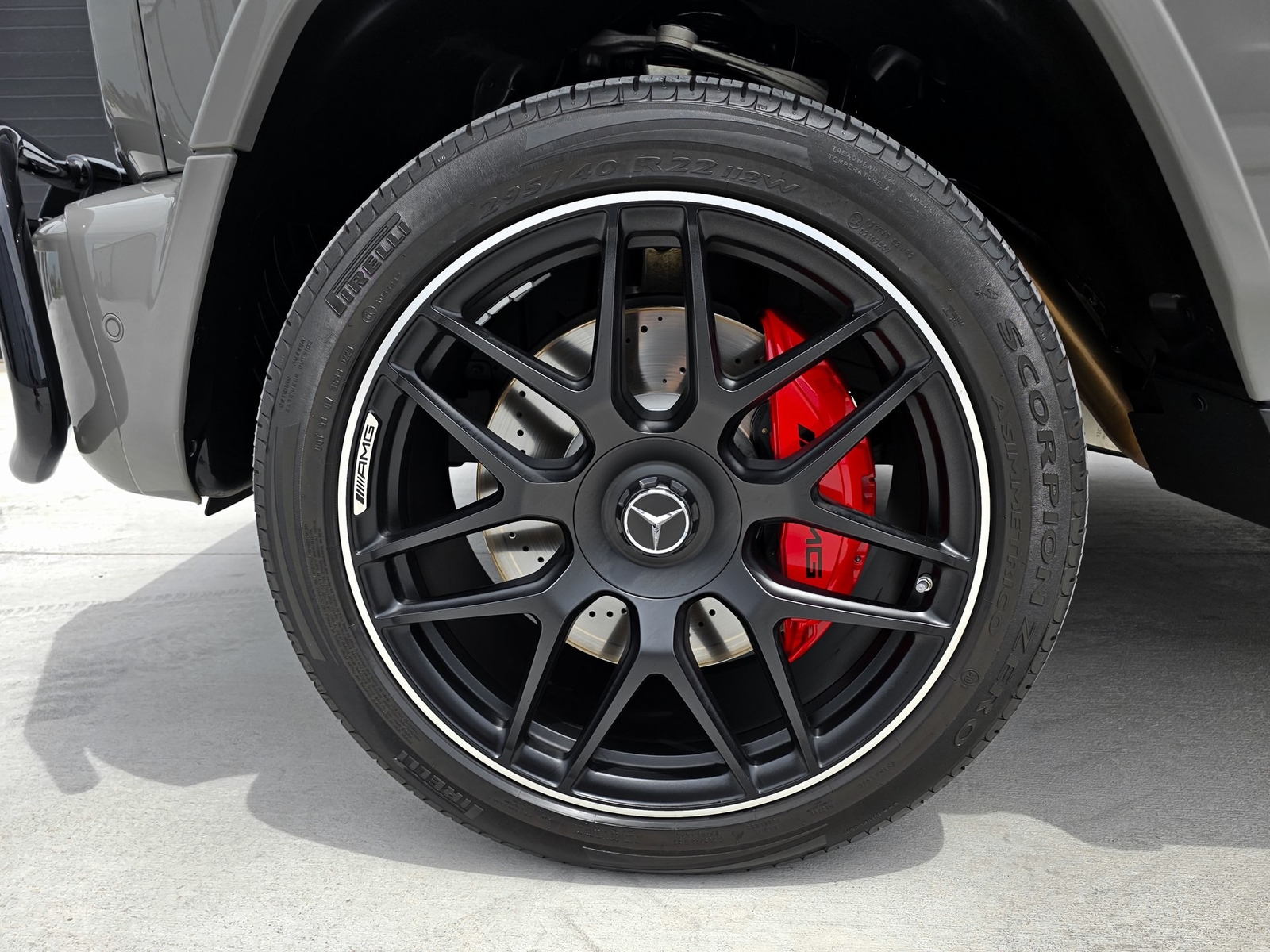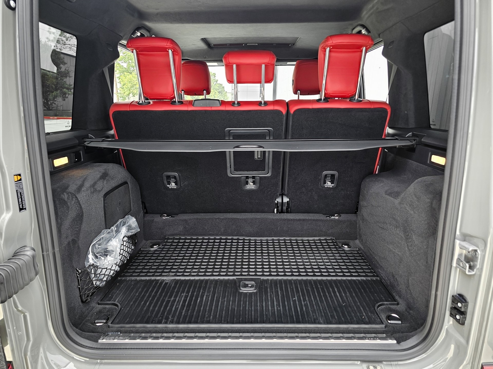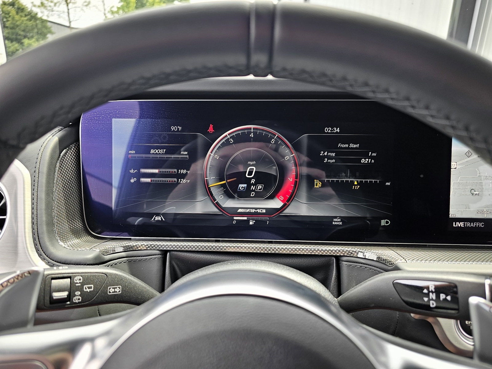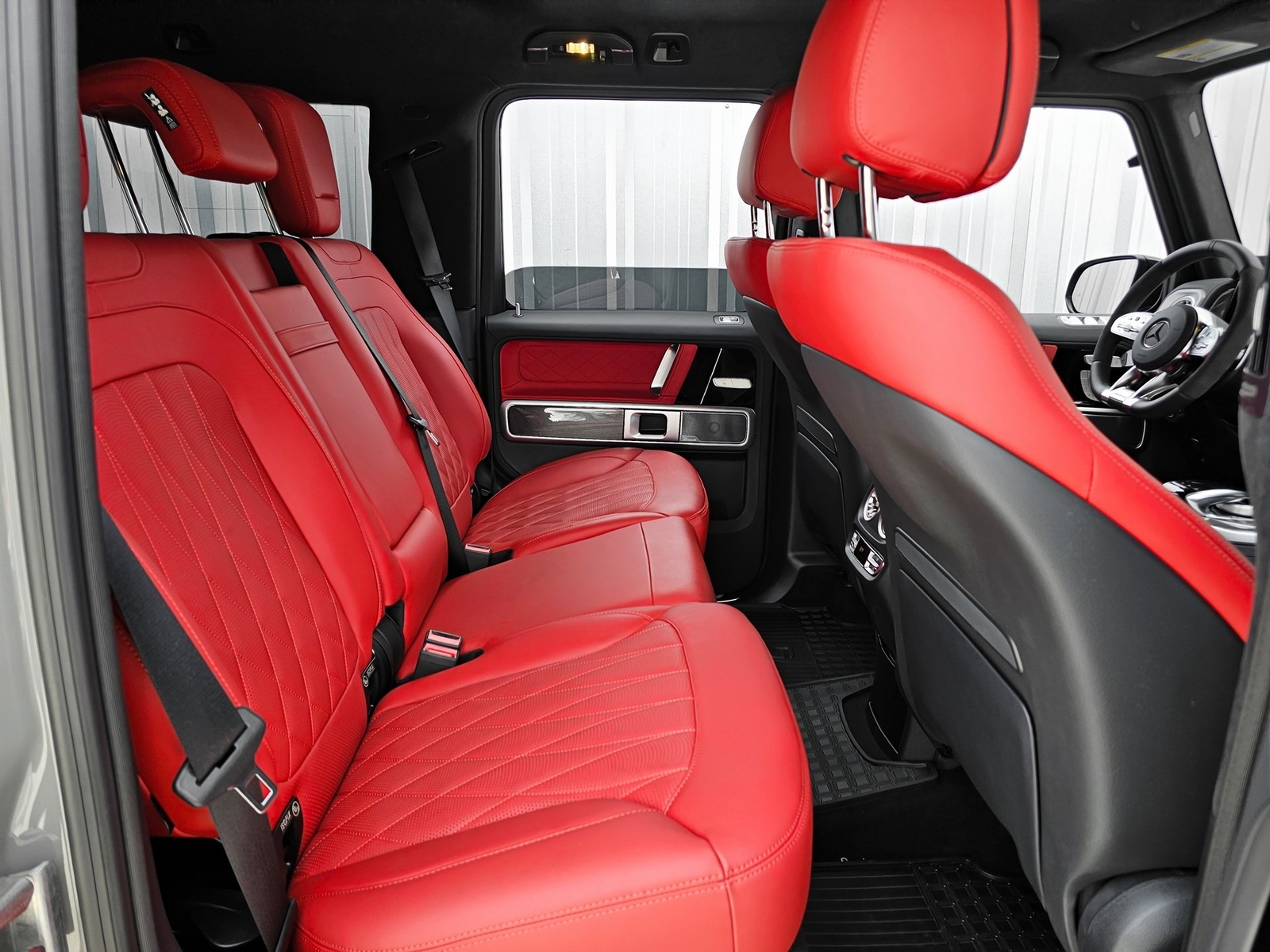 The 2023 G 63 AMG boasts a timeless, muscular design with its signature boxy shape, prominent grille, and AMG body styling. The bold exterior is complemented by 20-inch AMG wheels and striking LED lighting. Inside, youll find a meticulously crafted cabin featuring premium Nappa leather, carbon fiber accents, and cutting-edge technology. The spacious interior offers the perfect blend of comfort and functionality, with heated and ventilated seats, a Burmester surround sound system, and dual 12.3-inch displays for infotainment and driver information.