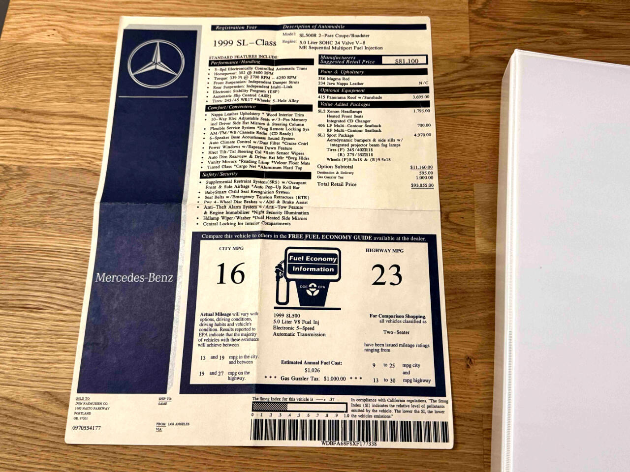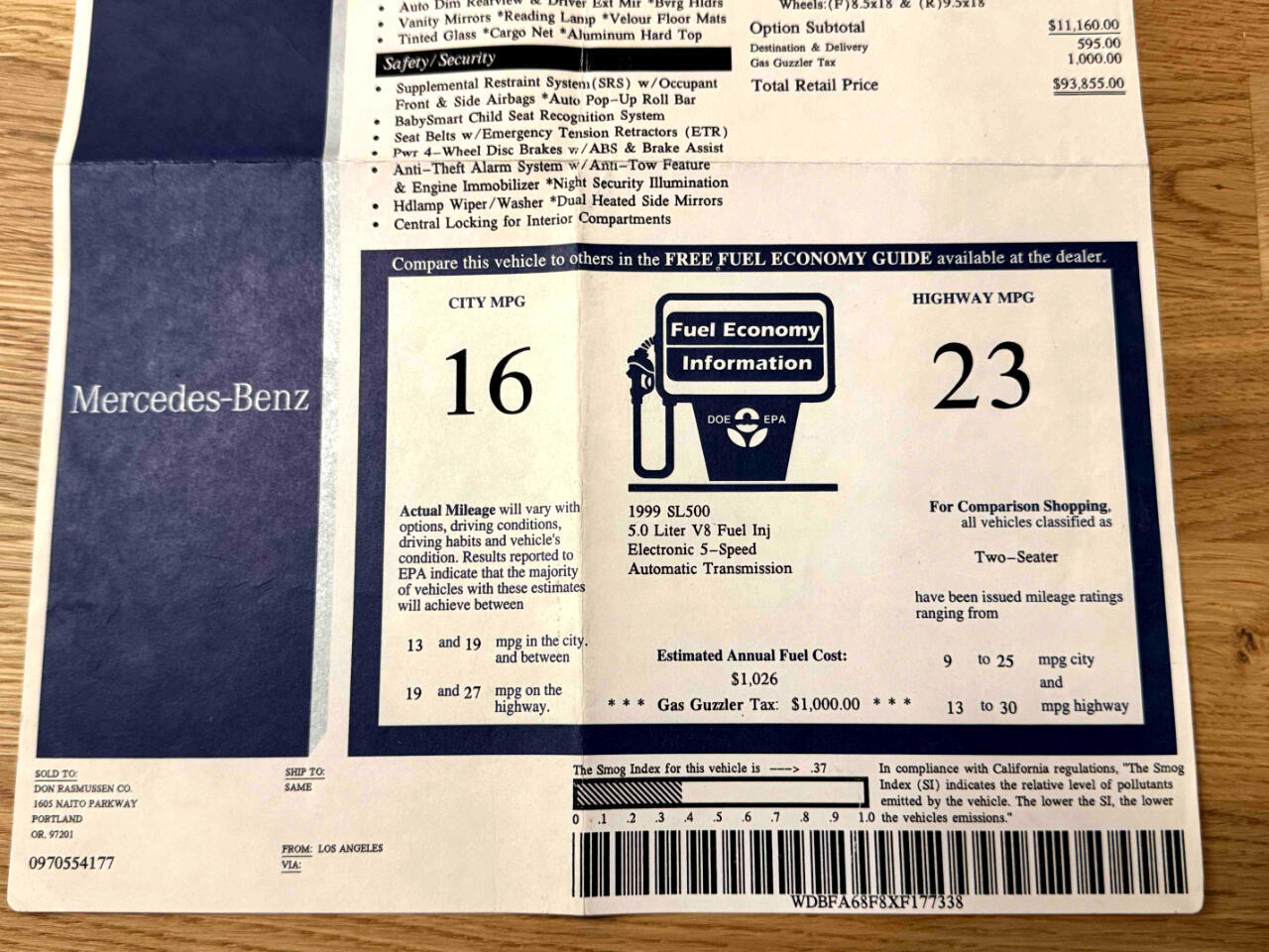 FULL HIGH RESOLUTION PHOTOS AND DETAILED DESCRIPTION ON YOU HAVE A VEHICLE YOU ARE LOOKING TO SELL, PLEASE CALL US AT 770-455-8494WE SHOW VEHICLES BY APPOINTMENT ONLY. PLEASE CALL TO SCHEDULE AN APPOINTMENT IN ORDER TO VIEW A LISTING IN PERSON.NEW ARRIVAL!! TOP HYDRAULICS REBUILT!! FACTORY OPTIONED PANO ROOF INCLUDED WITH STAND! EVERY SERVICE STAMP/RECORD SINCE NEW IN A BINDER! ULTRA RARE MERCEDES BENZ R129 SL500 WITH SPORT PACKAGE, FACTORY OPTIONED CHROME AMG SPORT WHEELS, AND PANORAMIC ROOF! MERCEDES BENZ OF PALM SPRINGS SERVICED AND NAPA VALLEY-OWNED AS DOCUMENTED IN OWNERSHIP HISTORY. METICULOUSLY WELL MAINTAINED AND HIGHLY ORIGINAL. CLEAN CARFAX WITH NO ACCIDENTS, NO DAMAGE, AND ALL ORIGINAL PAINT.RECENTLY RECEIVED SUSPENSION OVERHAUL, ALIGNMENT, AND BRAND NEW MICHELIN TIRES NOT EVEN 1000 MILES AGO. RUNS AND DRIVES VERY NICELY. COMES WITH TWO KEYS AND TWO BLANK SPARES, ALL BOOKS, MANUALS, RECORDS, ORIGINAL WINDOW STICKER, VMI, INTERNAL OPTIONS SHEET, ORIGINAL RADIO, PANO ROOF, AND MORE. $93,855 ORIGINAL MSRP!!EXTERIOR IS PAINTED INMAGMA RED WITHJAVA LEATHERINTERIOR.OPTIONS AND FEATURES INCLUDE:5.0L M113 V8 ENGINEAUTOMATIC TRANSMISSIONSL1 SPORT PACKAGE18 CHROME 5 SPOKE AMG SPORT STAGGERED WHEELSSL2 XENON HEAD LAMPSPANORAMA ROOF WITH SUNSHADECUP HOLDERBLACK SOFT TOP WITH NO RIPS OR TEARSELECTRONICALLY ADJUSTABLE FRONT SEATS WITH HEAT, MEMORY AND MULTI CONTOURCONTINENTAL HEAD UNIT BLUETOOTH RADIO WITH OEM INCLUDEDBOSE SOUND SYSTEMCRUISE CONTROLAIR CONDITIONING (ICE COLD)BURL WALNUT WOOD TRIMPOWER WINDOWSBOOKS & MANUALSWIND DEFLECTORAND MORE.GAS MOTORCARS IS A FAMILY OWNED AND OPERATED CAR DEALERSHIP LOCATED IN MARIETTA, GA. WE ONLY SELL VEHICLES OF THE HIGHEST QUALITY. WE SHIP VEHICLES WORLDWIDE AT THE BUYER'S EXPENSE. WE TAKE CONSIGNMENTS AS WELL AS TRADES.WE SHOW VEHICLES BY APPOINTMENT ONLY.PLEASE CALL AHEAD TO SCHEDULE A DATE AND TIME IN ORDER TO VIEW A LISTING IN PERSON.FOLLOW US ON INSTAGRAM @GASMOTORCARSIt is the customers sole responsibility to verify the existence and condition of any equipment listed. Neither the dealership nor DealerCarSearch is responsible for misprints on prices or equipment. It is the customers sole responsibility to verify the accuracy of the prices with the dealer, including the pricing for all added accessories. Visit Gas Motorcars online at to see more pictures of this vehicle or call us at770-455-8494 today to schedule your test drive.