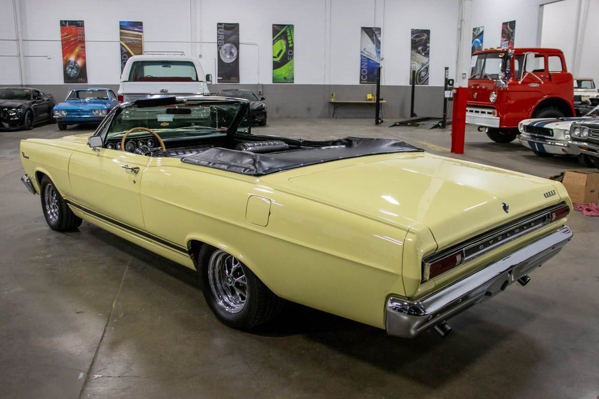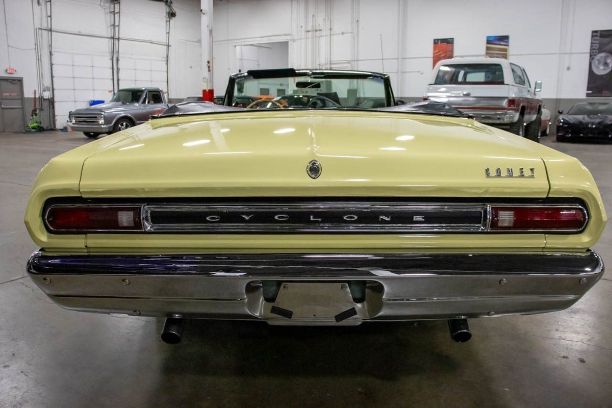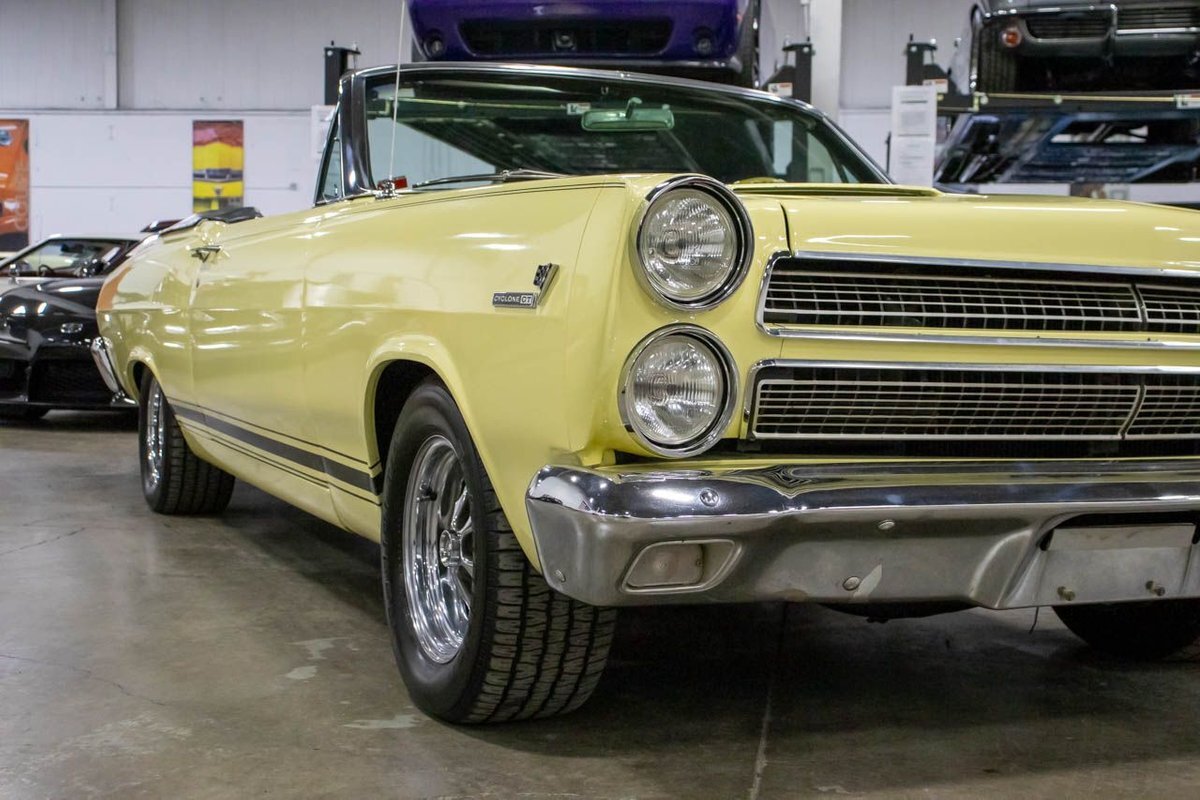 GR Auto Gallery is pleased to present this 1966 Mercury Comet Cyclone GT Convertible for your consideration. This Comet comes suiting a beautiful Jamaican Yellow exterior paint with a Black top over a clean Black interior. Powering this Mercury is a 390ci V8 making 355hp paired with an automatic transmission. This Comet Cyclone GT does come with some great features such as; power steering, power brakes, front disc brakes, bucket seats, a power top, a real oak wood steering wheel, a larger front sway bar, a rear sway bar, American Eagle overdrive unit, and multiple extra parts. This car has been owned since 1999 and just had the motor freshly rebuilt in November 2023. Drive this one out of our showroom or have us assist with shipping it to you anywhere in the United States! Don't hesitate to give us a call with any questions or for more information.