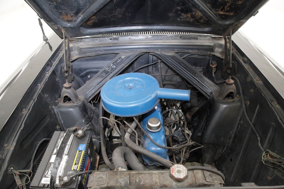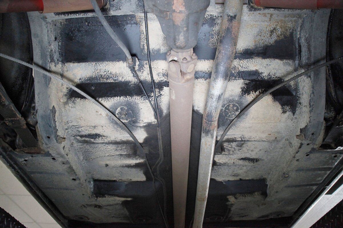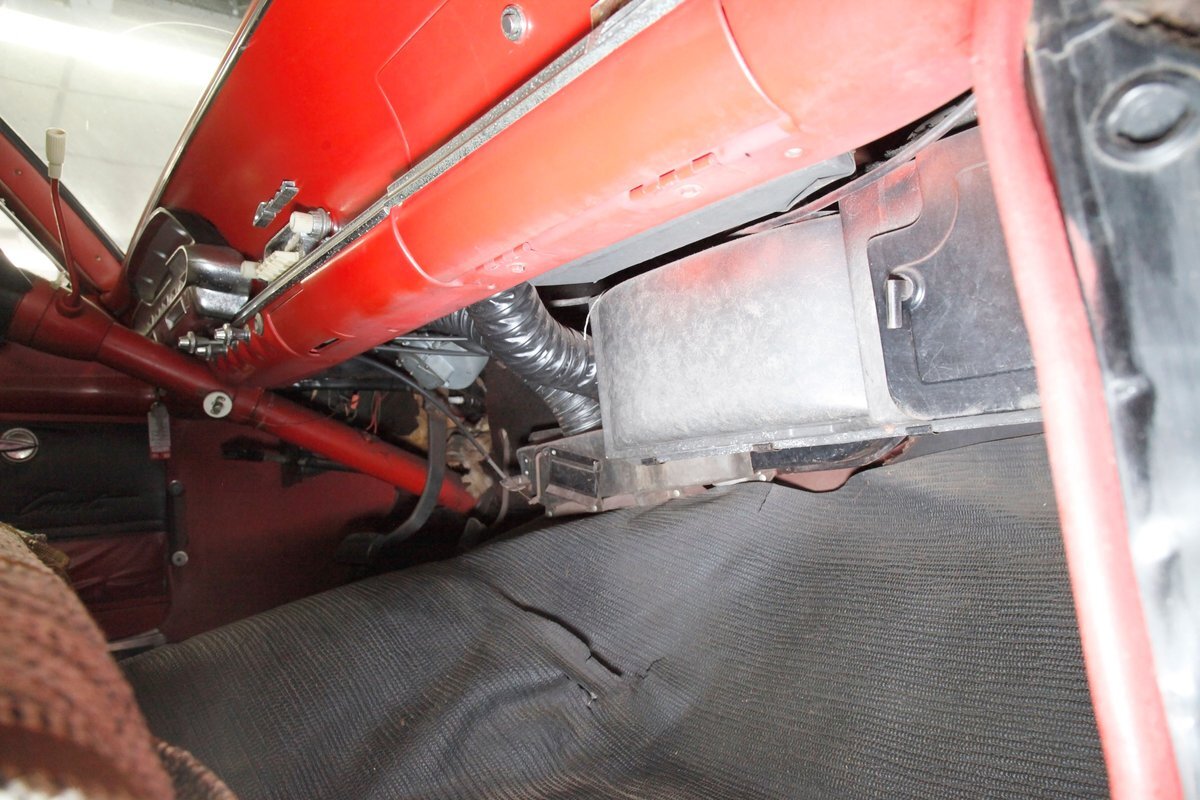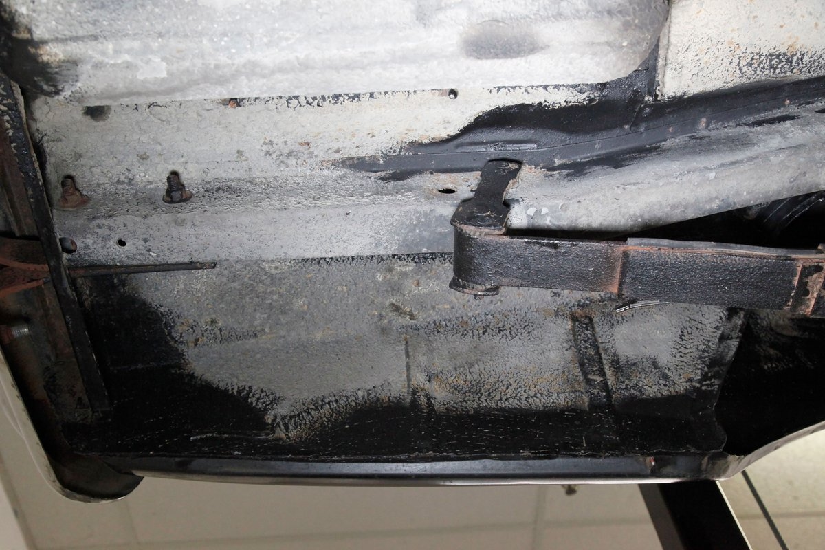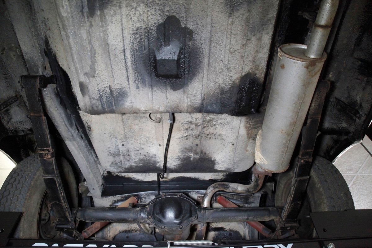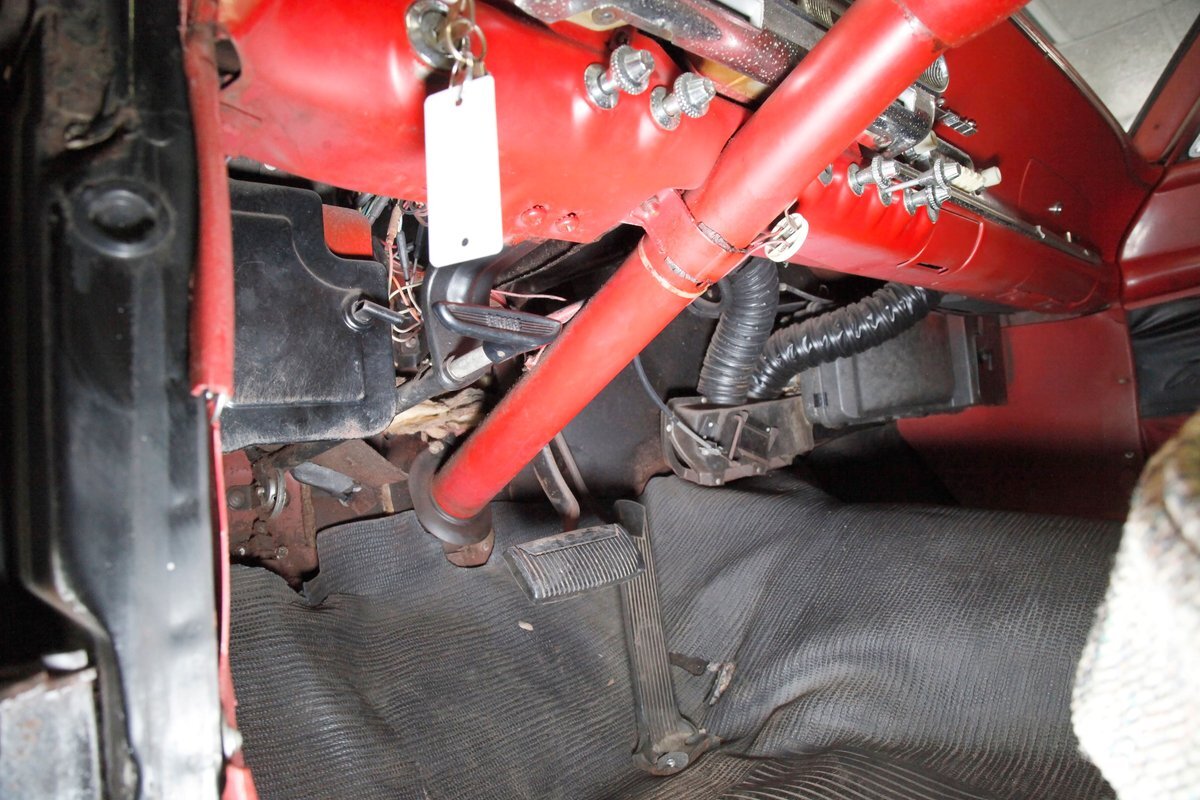 Mostly surface rust with the unibody remaining sound, but not without some areas of surface rust on the original flooring, suspension and rockers. We note new front floor pan and toe kicks courtesy of Auto Krafters, and these are the correct stamped style pans. Providing the ride is an independent coil sprung front suspension, and leaf spring rear suspension as well as drum brakes all around being noted with the front brakes having just been treated to new shoes.