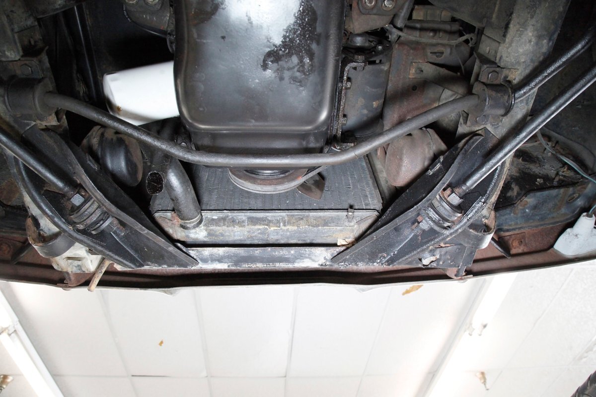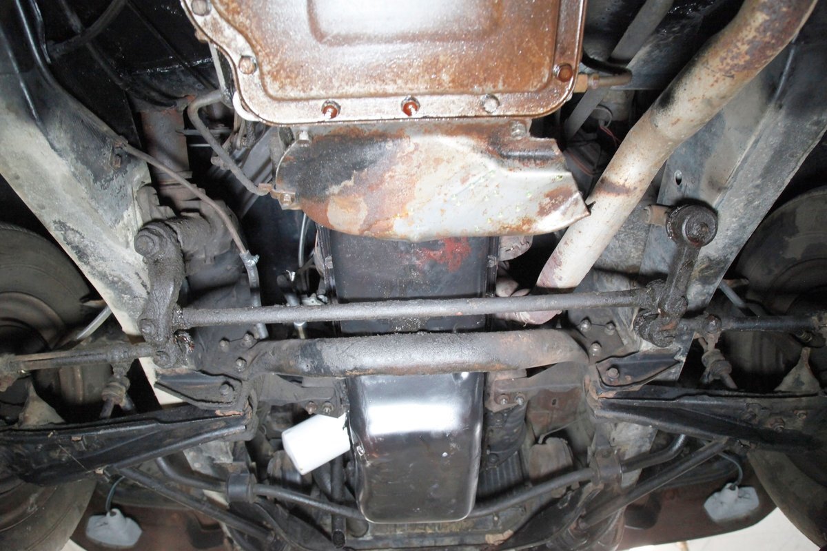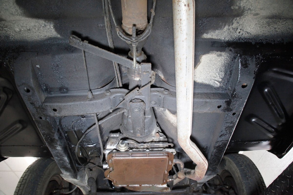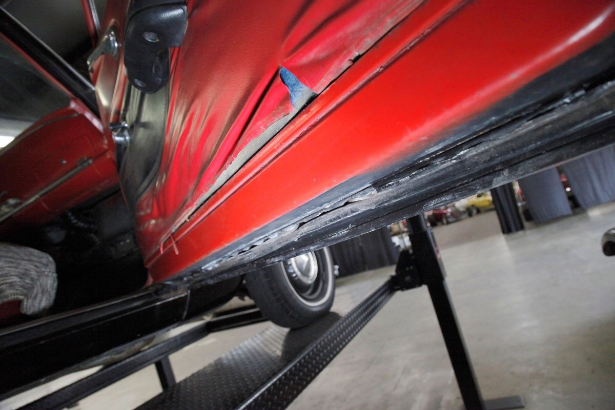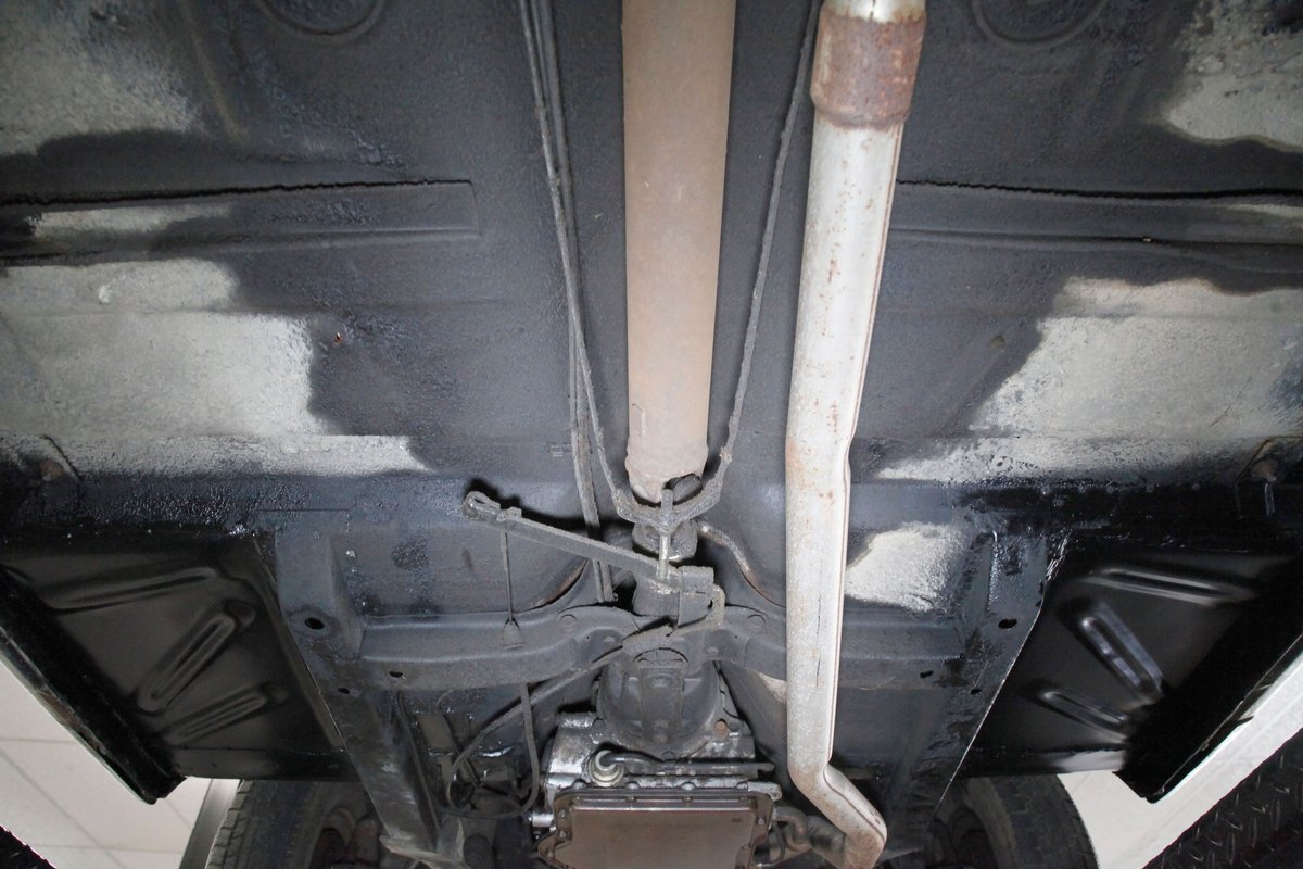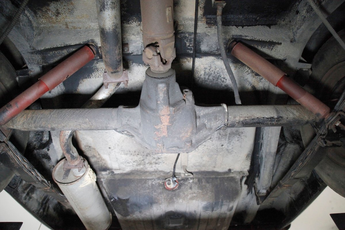 Mostly surface rust with the unibody remaining sound, but not without some areas of surface rust on the original flooring, suspension and rockers. We note new front floor pan and toe kicks courtesy of Auto Krafters, and these are the correct stamped style pans. Providing the ride is an independent coil sprung front suspension, and leaf spring rear suspension as well as drum brakes all around being noted with the front brakes having just been treated to new shoes.