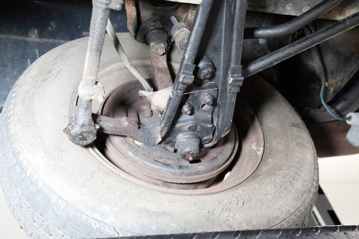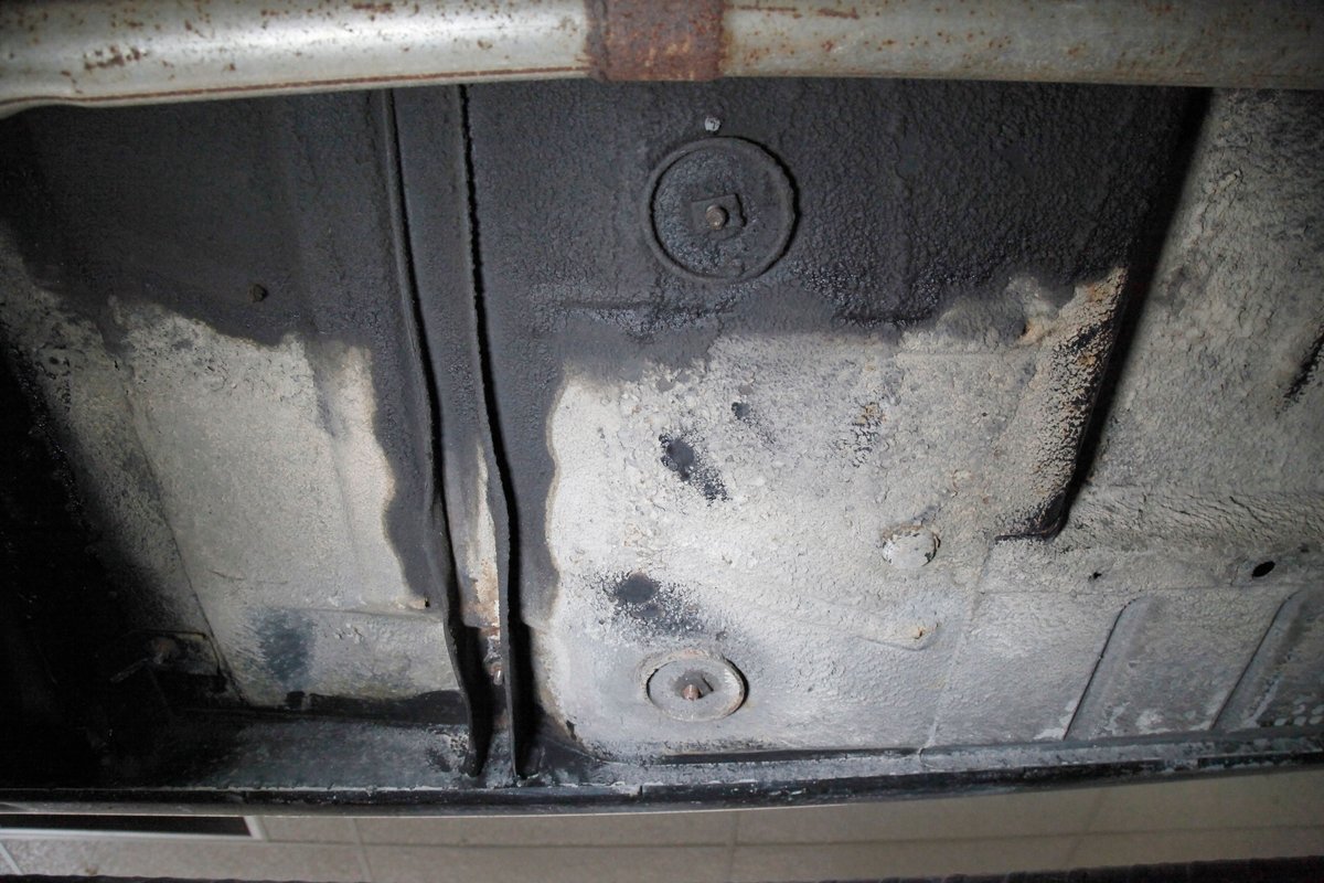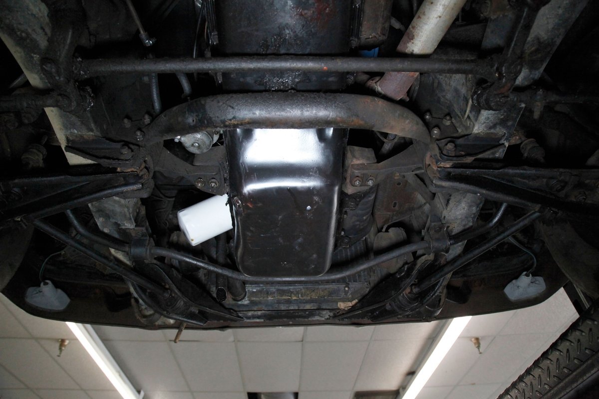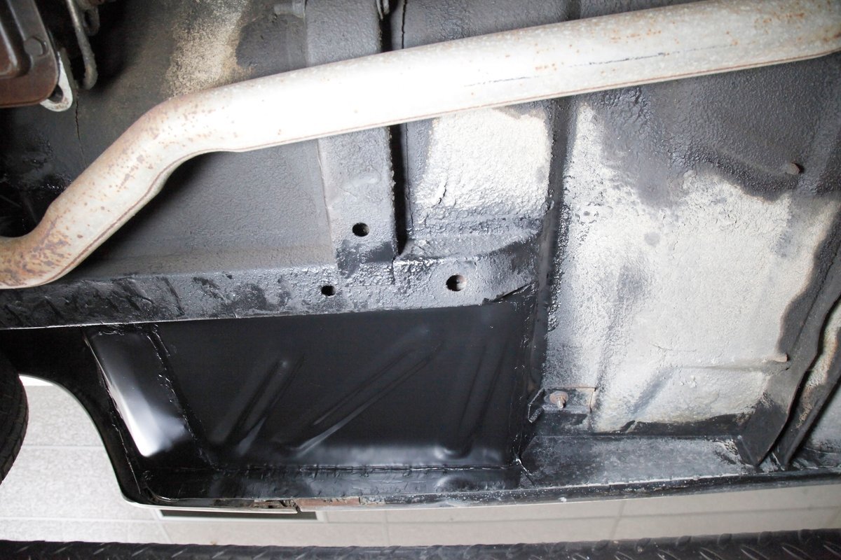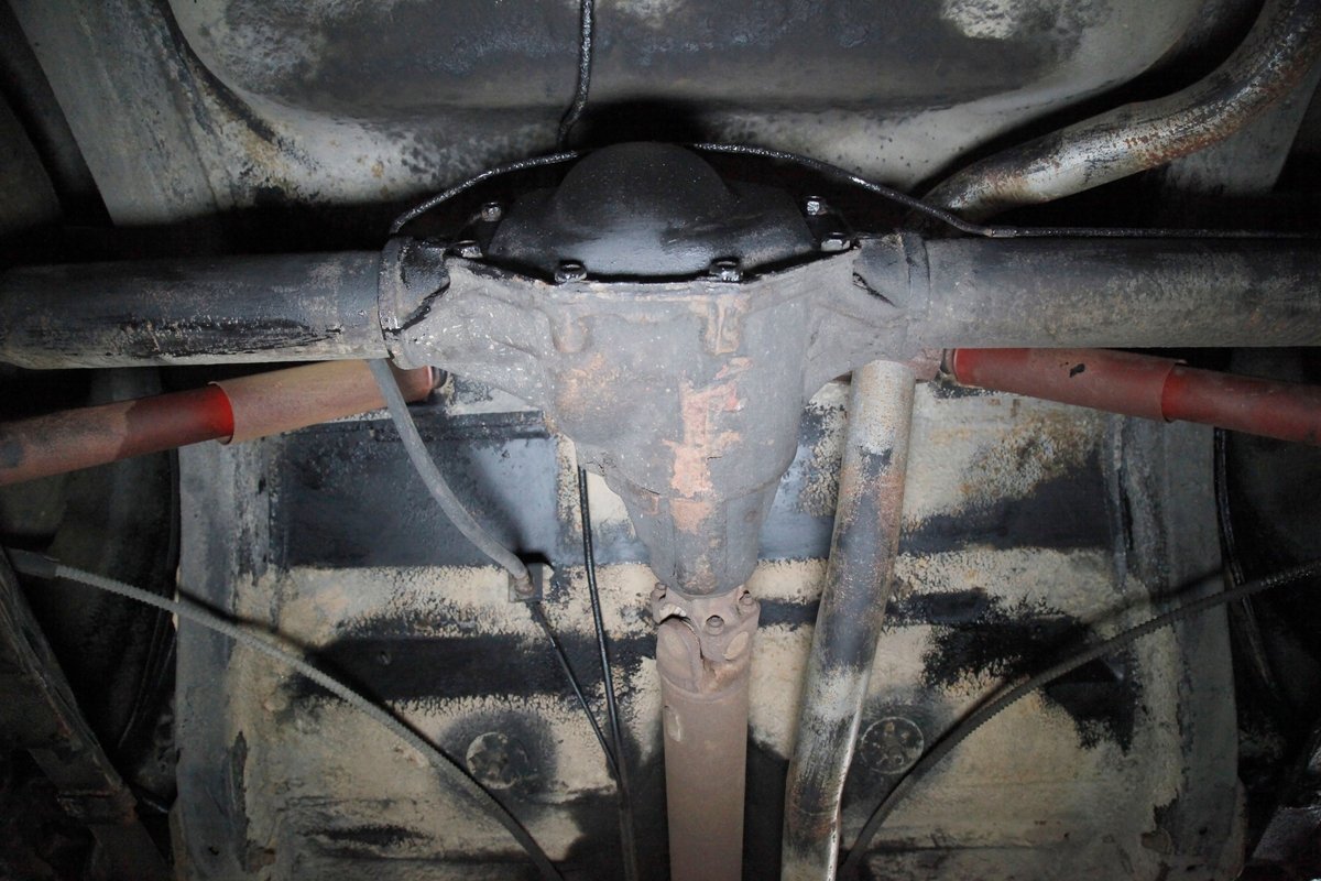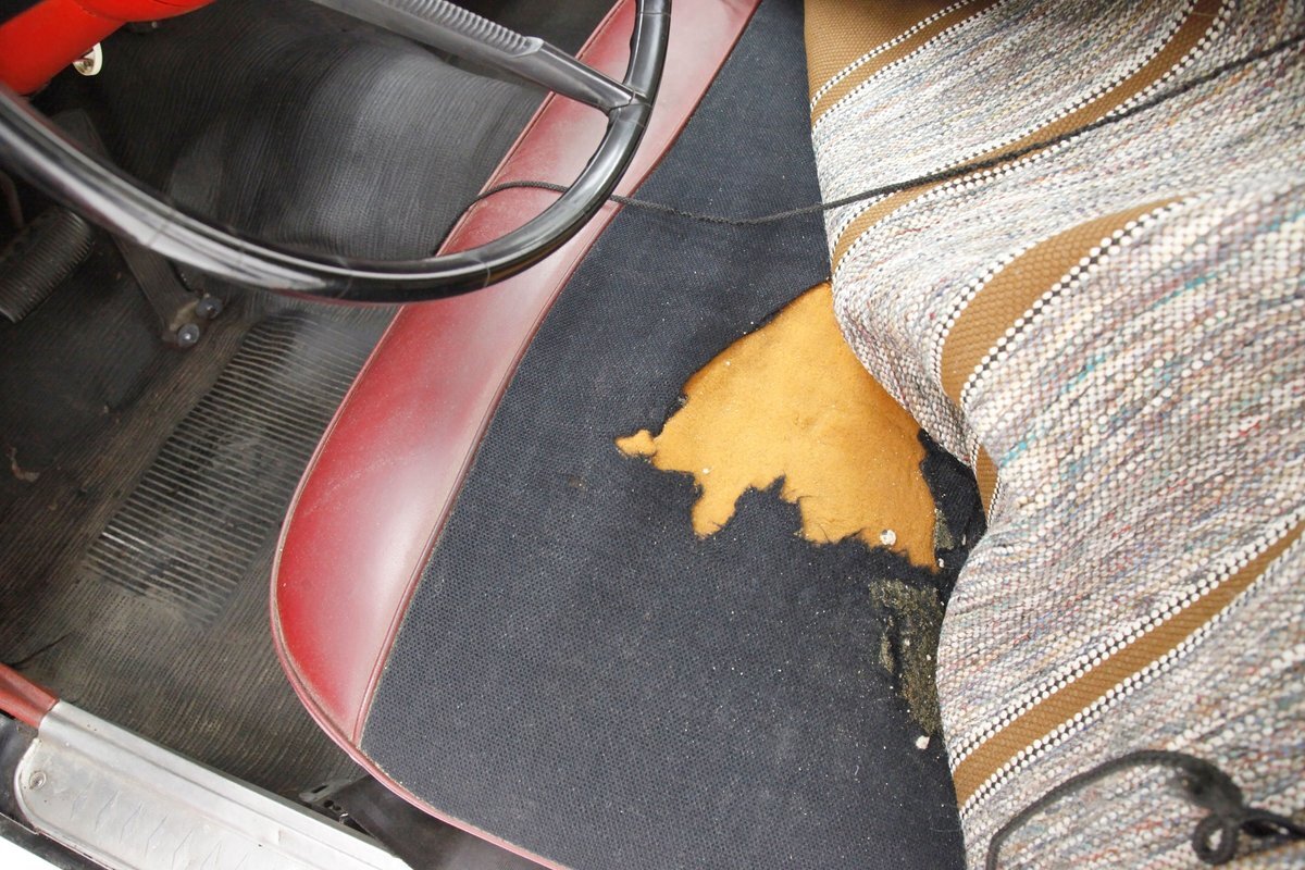 Mostly surface rust with the unibody remaining sound, but not without some areas of surface rust on the original flooring, suspension and rockers. We note new front floor pan and toe kicks courtesy of Auto Krafters, and these are the correct stamped style pans. Providing the ride is an independent coil sprung front suspension, and leaf spring rear suspension as well as drum brakes all around being noted with the front brakes having just been treated to new shoes.