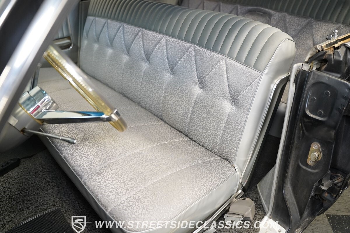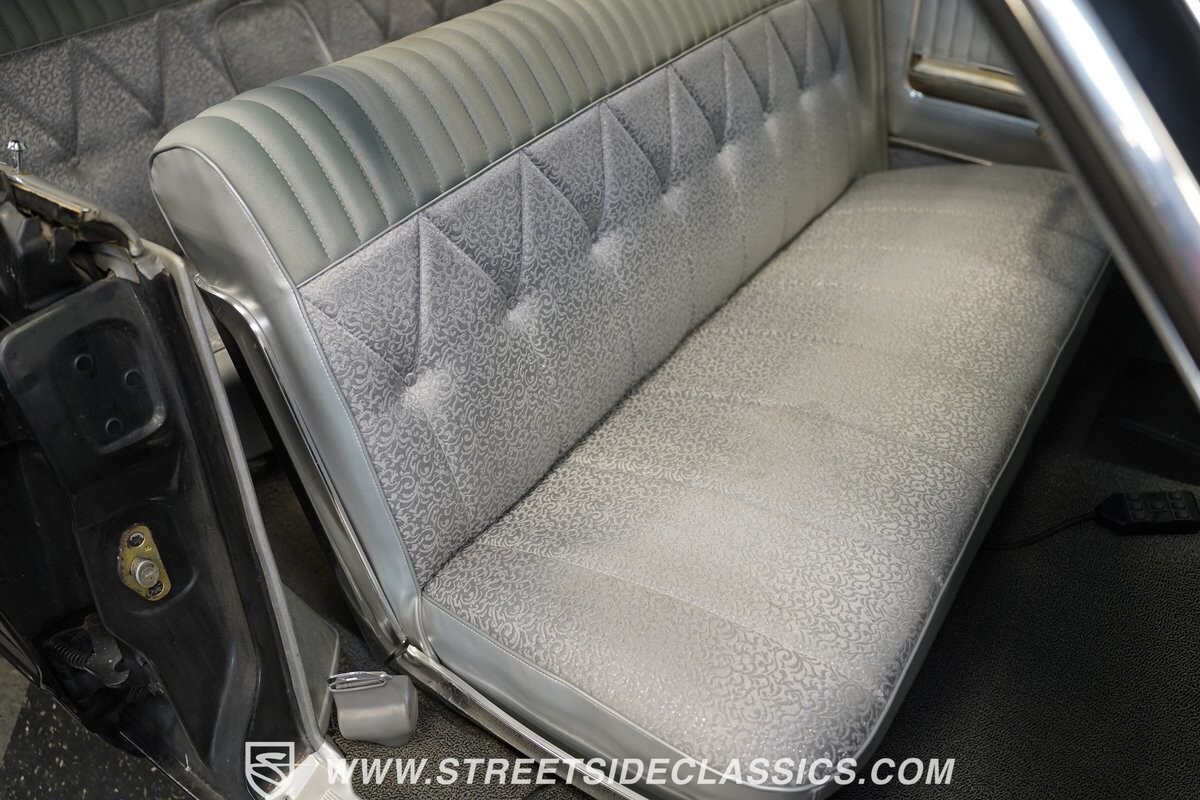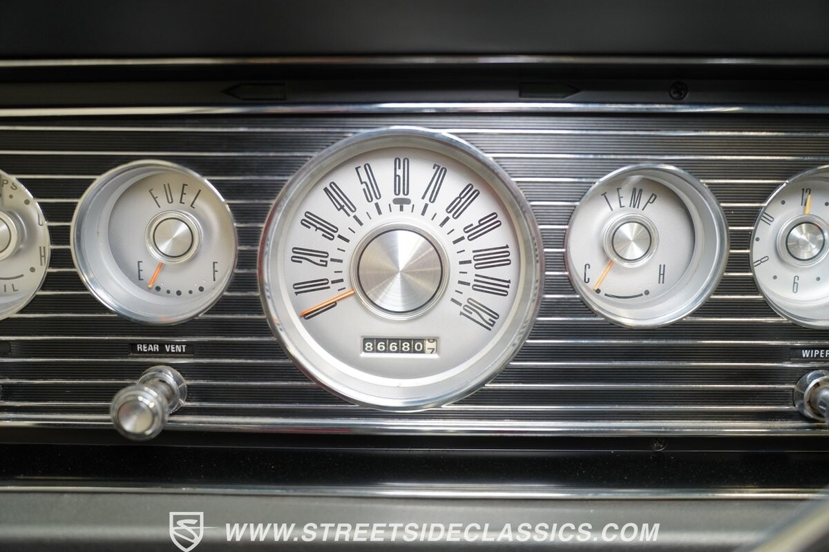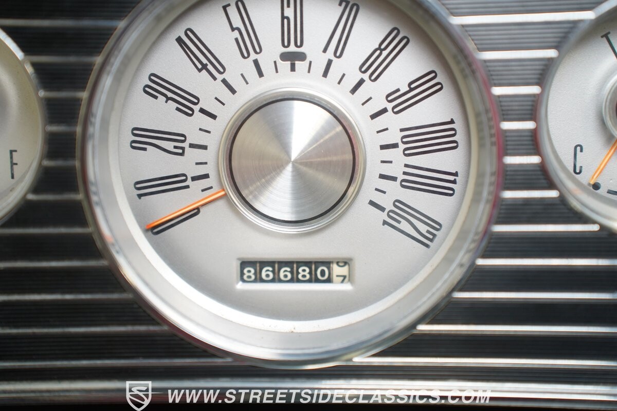 Inside, we find a shimmering silver interior highlighted by front and rear bench seats and a five-pod white-faced gauge cluster. A two-spoke steering wheel sits just after of the column shifter, while an upgraded Bluetooth AM/FM CD Player sits tucked away nicely in the glove box, ready to add a soundtrack to any ride.