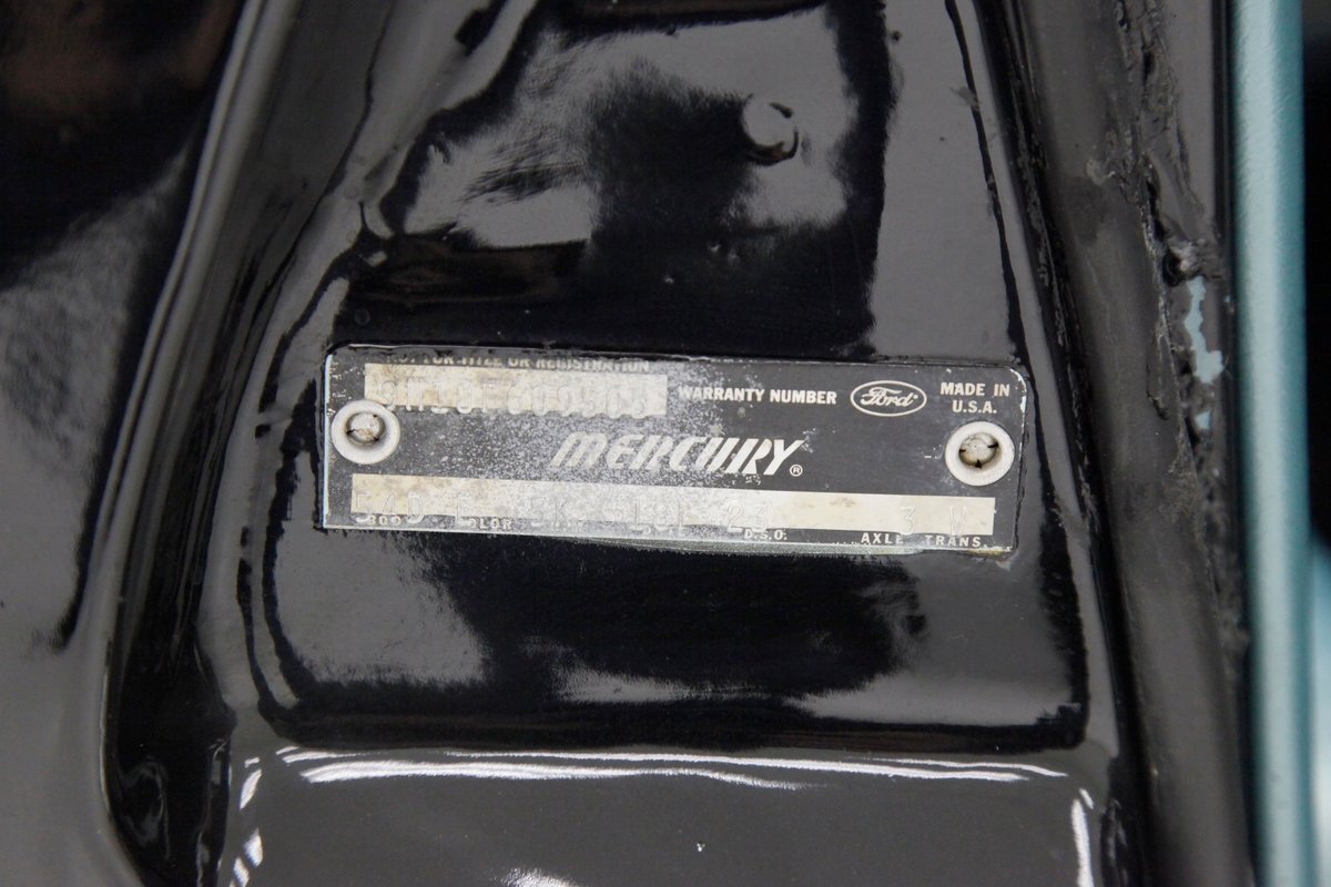 For consignment a 1969 version of the nearly top of the line Mercury Montego MX. This has a full history of ownership including its transformation to its current muscle status, however it started life as a lowly 302 8 cylinder engine and now has a 331ci V8. During this time the car was treated to a color change to the tune of $12,000, presents very nicely and is a well cared for example, all straight, all black all shiny and all Mercury the sign of the cat! Snarl snarl...