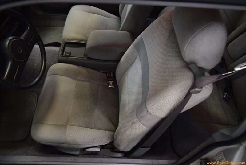 INTERIOR CONDITION OVERVIEW: The interior is gray cloth that looks almost new! With 32,000 miles on the clock, some minor creasing and wear is expected, but the seats show well and really validate the mileage. The dash plastic, headliner, and sunvisors are showing their age despite the mileage–an unfortunate side effect of cost-cutting measures of the era. Interior defects are shown in the photos.
