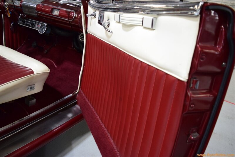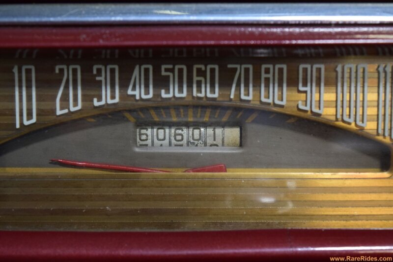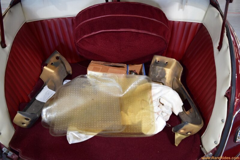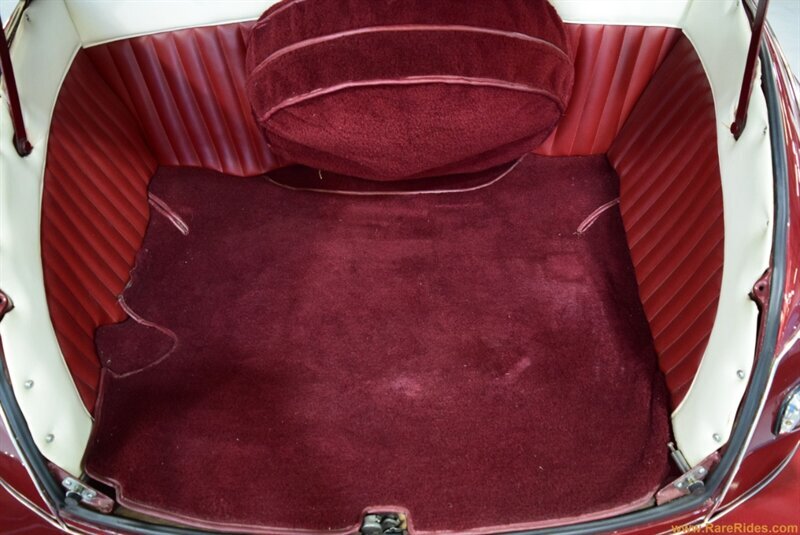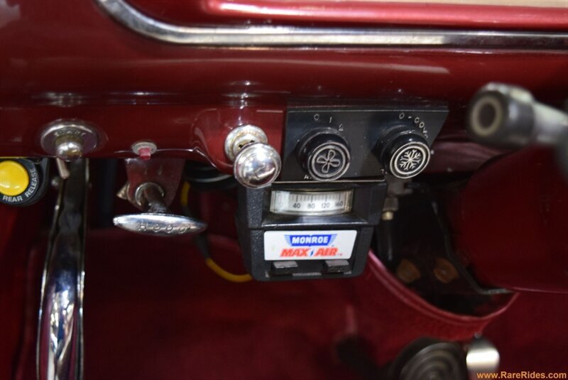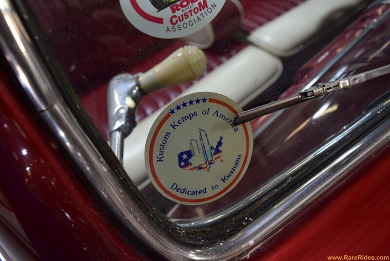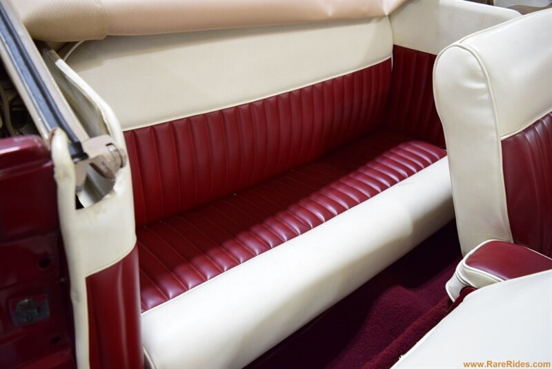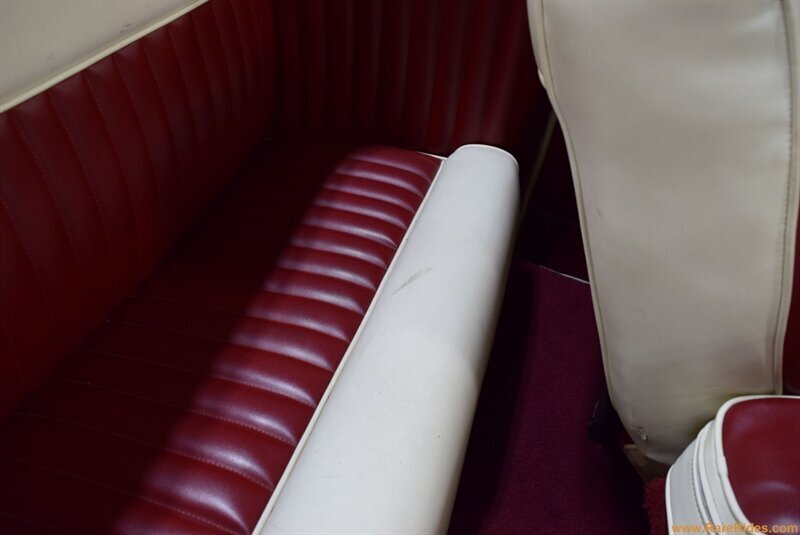 INTERIOR CONDITION OVERVIEW: The red and white custom interior is in great shape, and the majority of the interior is believed to be original from 1960 when the customization was completed. There are some components that have been added since the original customization, including the front seat, steering wheel & column, and stereo which all appear to be additions from the 1970s/1980s. This car even has air conditioning and power windows!