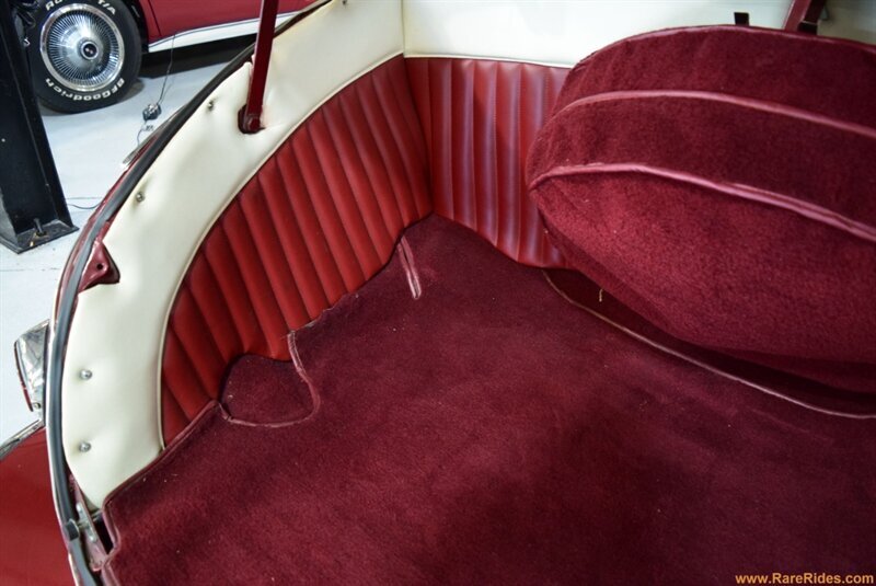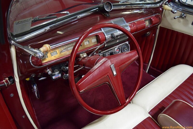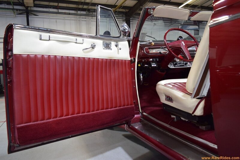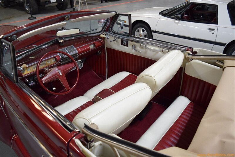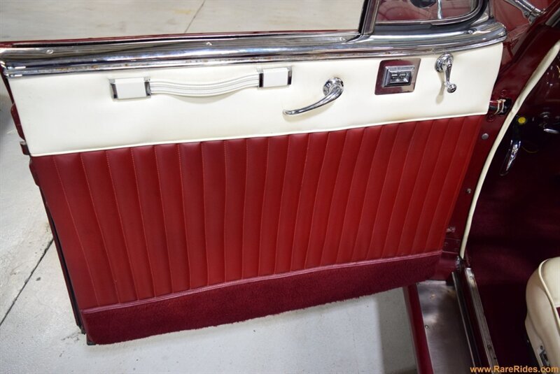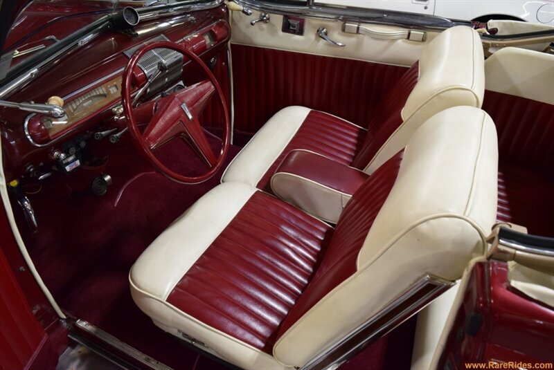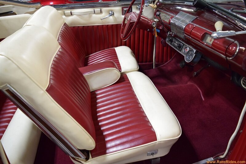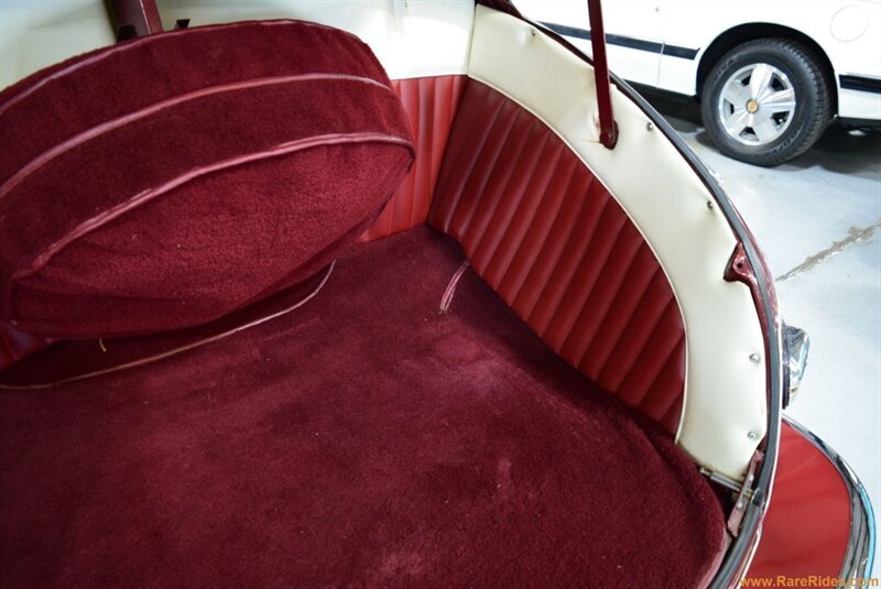 INTERIOR CONDITION OVERVIEW: The red and white custom interior is in great shape, and the majority of the interior is believed to be original from 1960 when the customization was completed. There are some components that have been added since the original customization, including the front seat, steering wheel & column, and stereo which all appear to be additions from the 1970s/1980s. This car even has air conditioning and power windows!