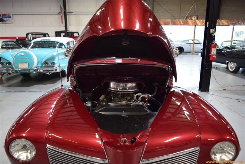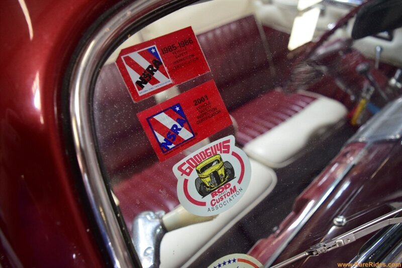 HISTORY: According to Don Miller, this car was customized in Ohio in 1959/1960 by a builder named Bax Brown. This is when the car was customized with a chop, frenched lights, and painted Honduras Maroon. It was repainted once in the 1970s, and the Ford flathead engine was swapped out for a Chevrolet 350 in the 1980s. After changing hands a few times, this car has been owned by Don Miller for over 10 years.