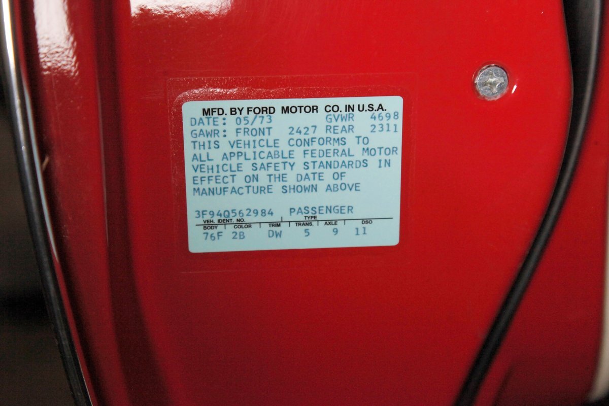 Under the hood in the restored but lightly patinaed engine bay is a number matching Q-Code Cobra Jet 351ci Cleveland V8 topped with a single 4-barrel carburetor. This mill is bathed in Ford blue and is topped with a factory single snout air cleaner assembly. On the back is a Toploader 4-speed manual transmission which sends power back to a Ford 9-inch 3.25 conventional rear axle. A strong heart for this kitty.