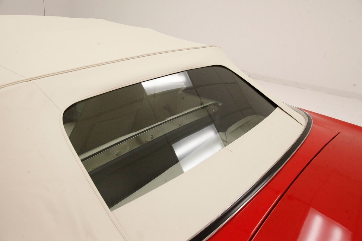The Cougar is quite different from the Mustang in the realm of styling and for 1973 the two platform shared cars split further apart in theory and style. Leading the way is the adopted from other Mercury vehicles split grille treatment with a prominent center section and waterfall style grille. In a break from the previous generation, 4 exposed headlights replace the hidden headlights of yore. At the rear, inset into the bumper, are ribbed and trim highlighted sequential tail lights. A respray of Bright Red covers the panels which show a few inclusions and flaws, but one must look closely to find them. Rust is nonexistent and the gaps remain well minded. A newer white canvas convertible top with a glass rear window is now on and is tear and leak free. Chrome bumpers and all trim retains its shine and shows very little wear. Dual exhaust with turn down chromed tips peek out the back at the bottom of the chassis. Standard 14" Mercury wheel covers adorn the 4 corners and are wrapped in deeply treaded whitewall radials. Cue the cat growling.