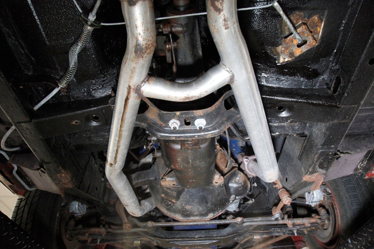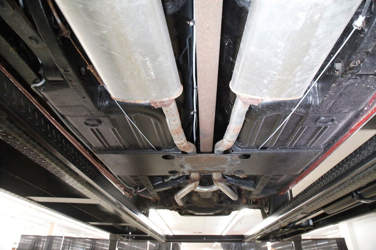 Some surface rust is seen, but only on areas that were overlooked during the undercoating process. The unibody, flooring, rockers and torque boxes remain solid and rust free. Independent coil spring suspension is on the front, meanwhile bringing up the rear is a leaf spring suspension. Dual exhaust with stock replacement mufflers are on and power disc brakes for the front, and power drums for the rear.