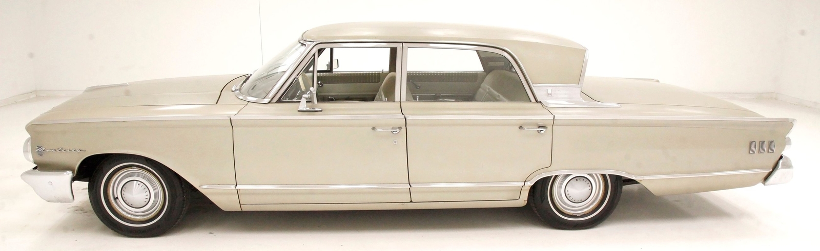 For consignment, a Camelot era Mercury in the form of a 3 owner 1963 Mercury Monterey Custom sedan. Yes, it's a "breezeway" car with a roll down rear window, 36,466 original title verified miles and all original condition! Bathed in Castilian gold and the interior fabric with its metal thread to die for, it's a real 60's time capsule. Roll down that rear glass, (just part way otherwise it will buffet!), slip inside and let's go into the way back machine Peabody.
