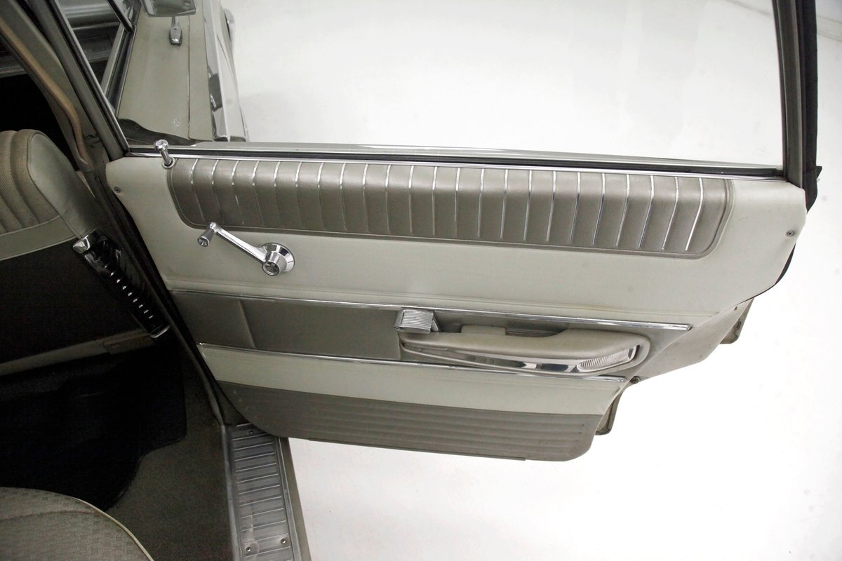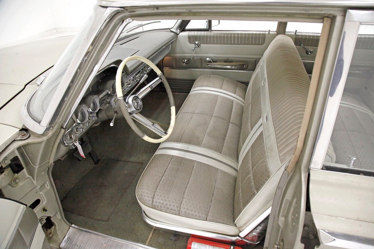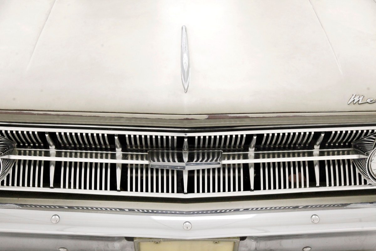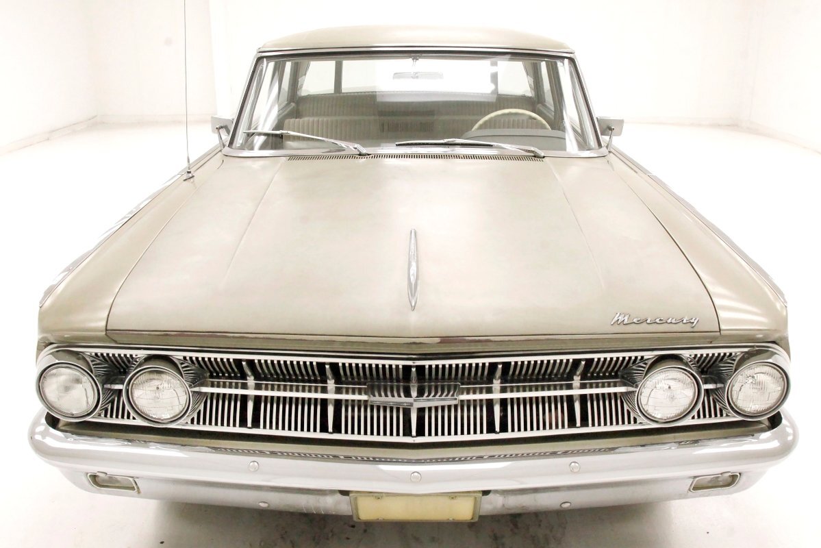 A chromed inward V shaver style front grille has dual wide bezel headlights on either side and it leads the way proudly. A wide curved wrap around bumper is below and now we can talk about the steel, of which I can mention has no rust, plenty of patina as it is original Castilian Gold paint from the factory. The gaps are well minded, the doors have nice chromed window framing and the roofline is truly unique in its own cool way particularly on that B pillar. A long, LONG trunk line sporting a tasteful fin on either side frames another "shaver" styled back end chrome piece that has 3 Dixie cup shaped tail lights on either edge and a near perfect chromed bumper below. Badging looks just fab and oh that roll down rear glass, no other car that was even remotely successful can tout having that. This, a pre A/C car that boosted Mercury sales in '63. The car rides on 14-inch wheels wrapped in 215/75R14 thin whitewall, (like the ties of the era), tires. Groovy and hip in a West Coast kinda way. Also showing some success in life, as it's a Mercury.