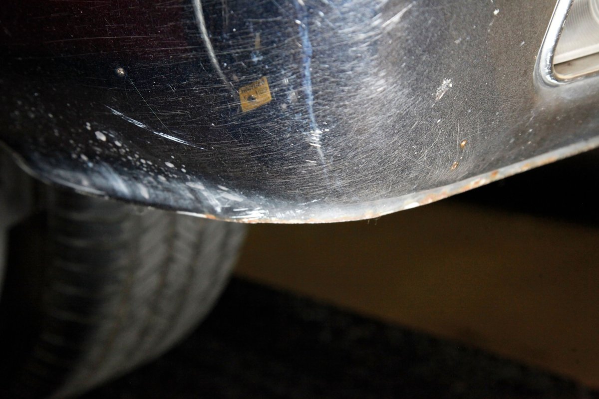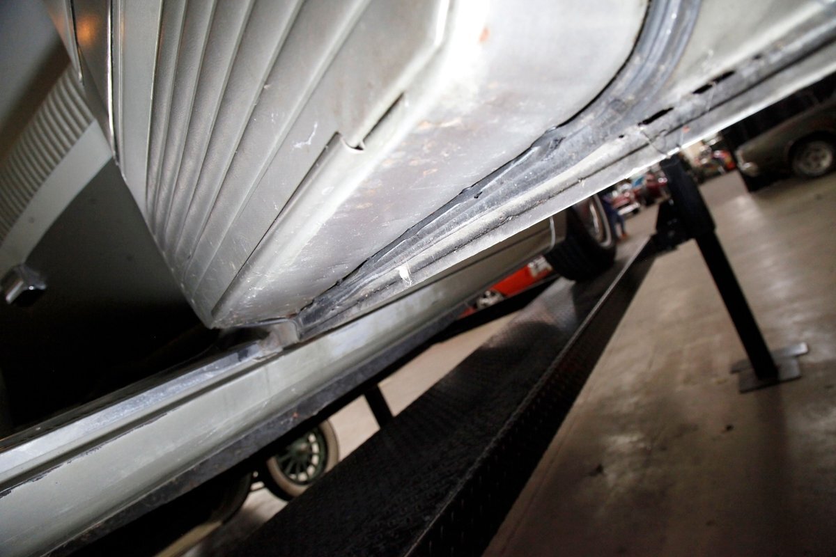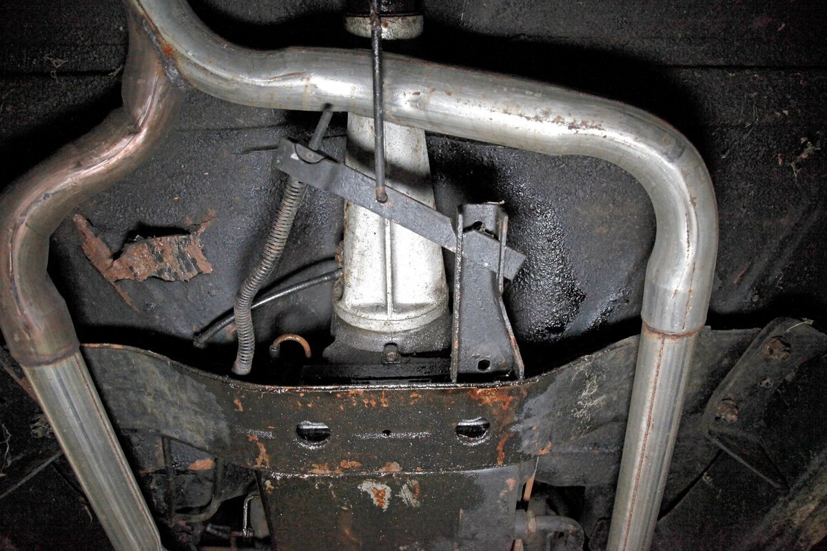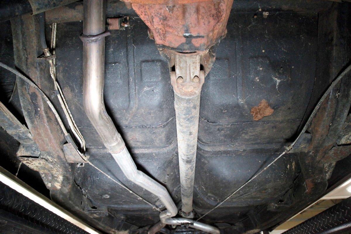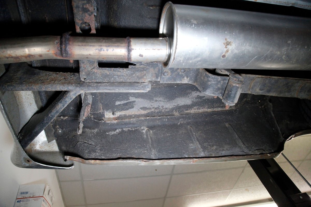 To the lift Batman! And here we see some surface rust, slight peel off of the undercoating, and lots of patina. A new fuel tank is on, and the floor pans and rockers are structurally sound. Some road dirt has embedded itself in the suspension which is front independent coil springs and rear leaf springs. Drum brakes are all around.