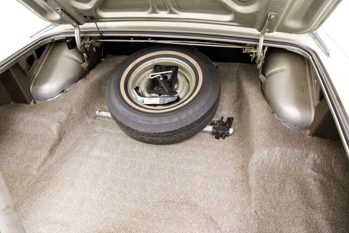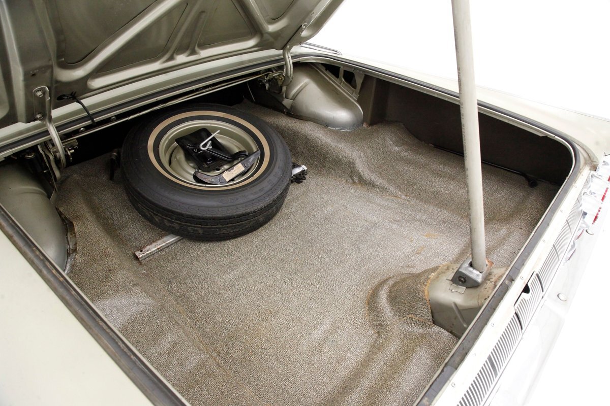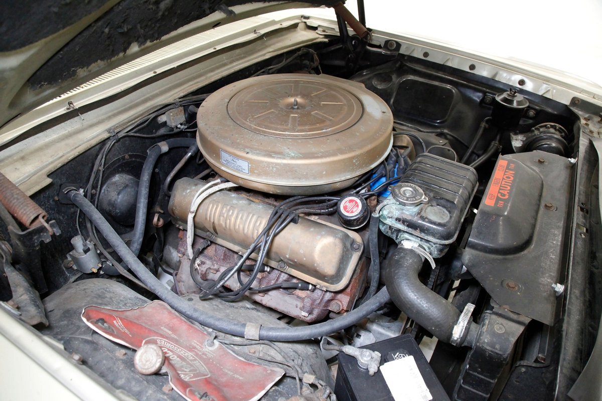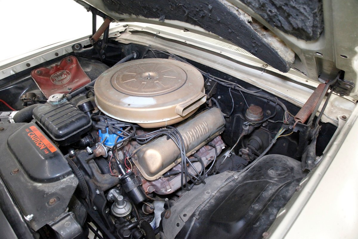 Under that long hood sits an original unrestored low mileage 390ci V8 it has a 2-barrel carburetor and a Cruise-O-Matic multi range 3-speed automatic transmission. The rear axle is a Ford 9 inch with 3.50 gears. Stock style single exhaust is noted and a large circular gold painted small snout air cleaner cover tops this original mill.