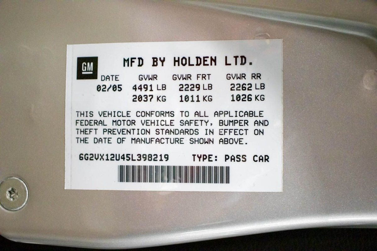 Vehicle Original VIN : 6G2VX12U45L398219