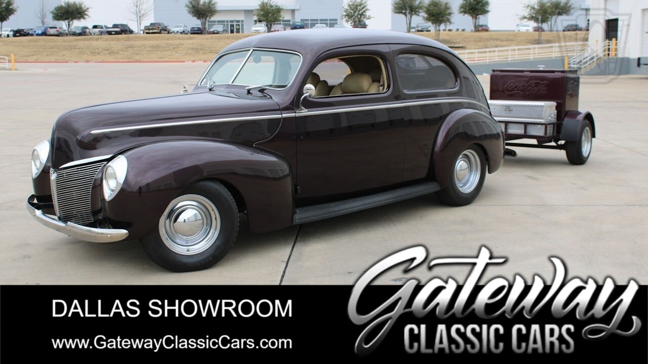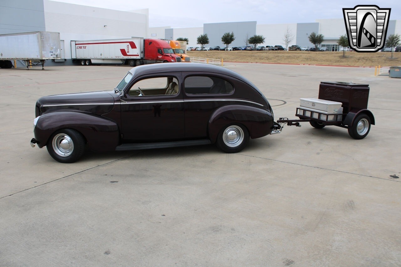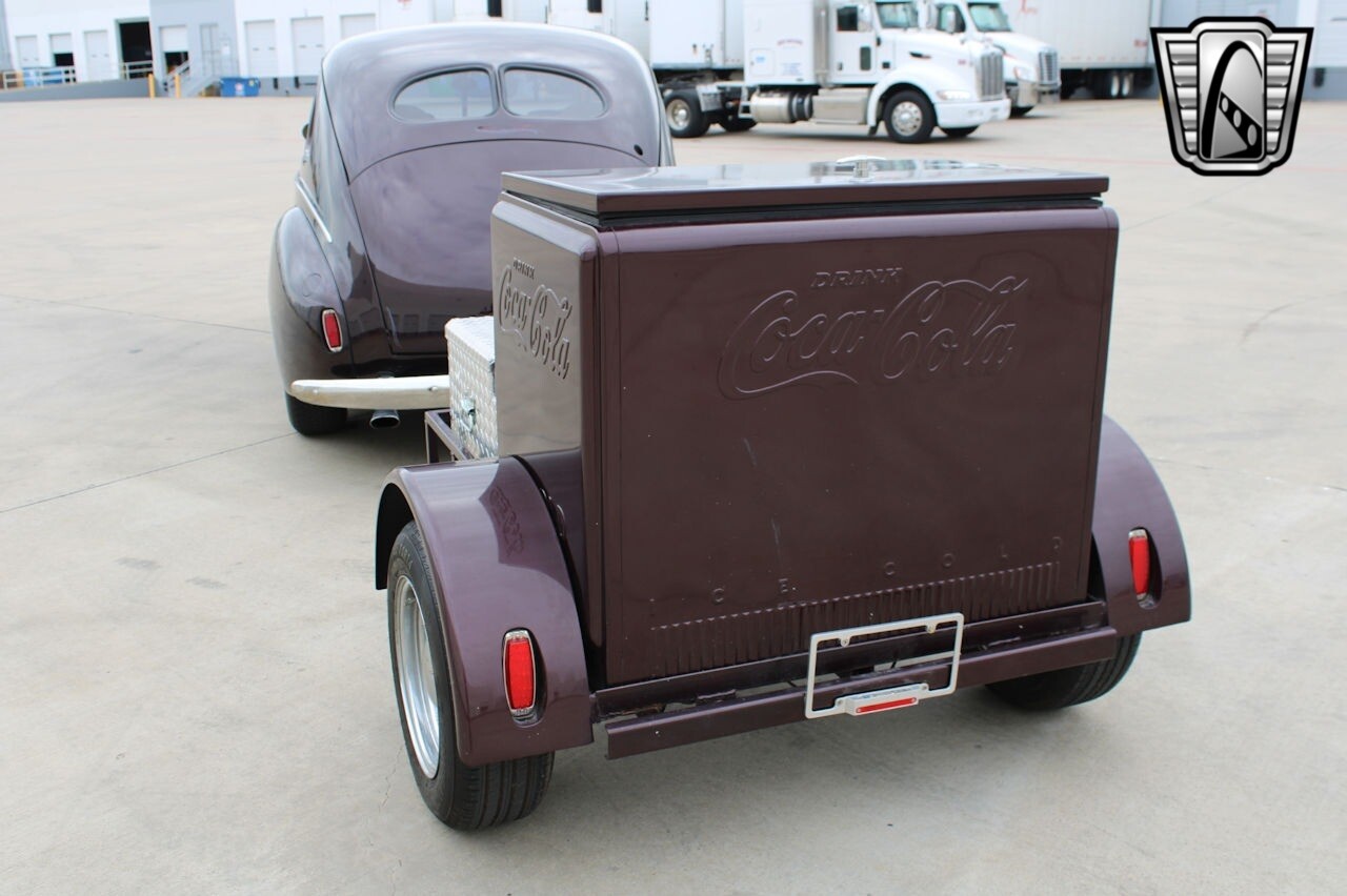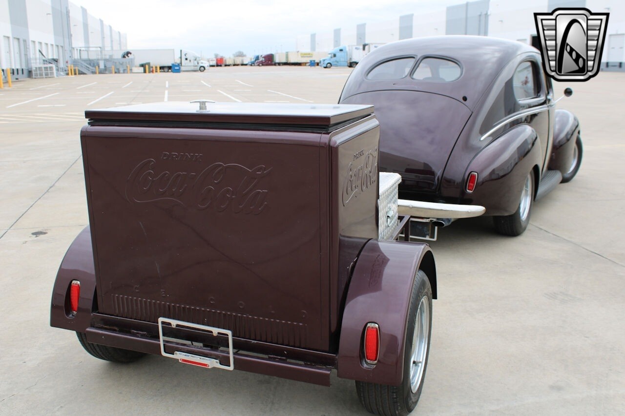 Gateway Classic Cars of Dallas is excited to offer for sale this 1940 Mercury Custom Streetrod. This Custom streetrod has an all chrome Chevy 350 with Vintage air conditioning, power steering, power brake, automatic transmission, shaved doors and they all pop open with keyless remote or pop switches under the door, power windows, custom billet steering wheel, and brake and gas pedals, real leather interior with power 4-way seats with lumbar support, custom headliner, interior lights, remote motorized rear license plate, battery kill switch in the trunk, the battery is located in the rear behind custom leather panels, also comes with paint matched Coca Cola trailer with matching lights, this is a rotisserie build with all glass removed before professionally painted. All new seals and chrome pieces. Car runs and drives like a dream. Equipped with Bluetooth radio with upgraded speakers inside the glovebox, glove box cover has led clock, all the gauges are blue Dakota digital gauges. Always garaged. Custom wheels. Fully loaded. Highway miles. Nice A/C. Looks & runs great. Low mileage on the build, modern tires. Upgraded sound system. Very clean interior. [ omitted ].