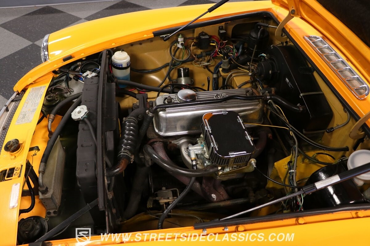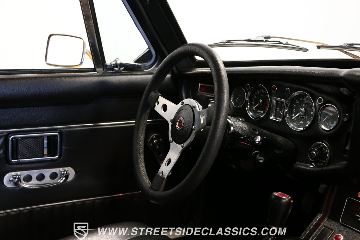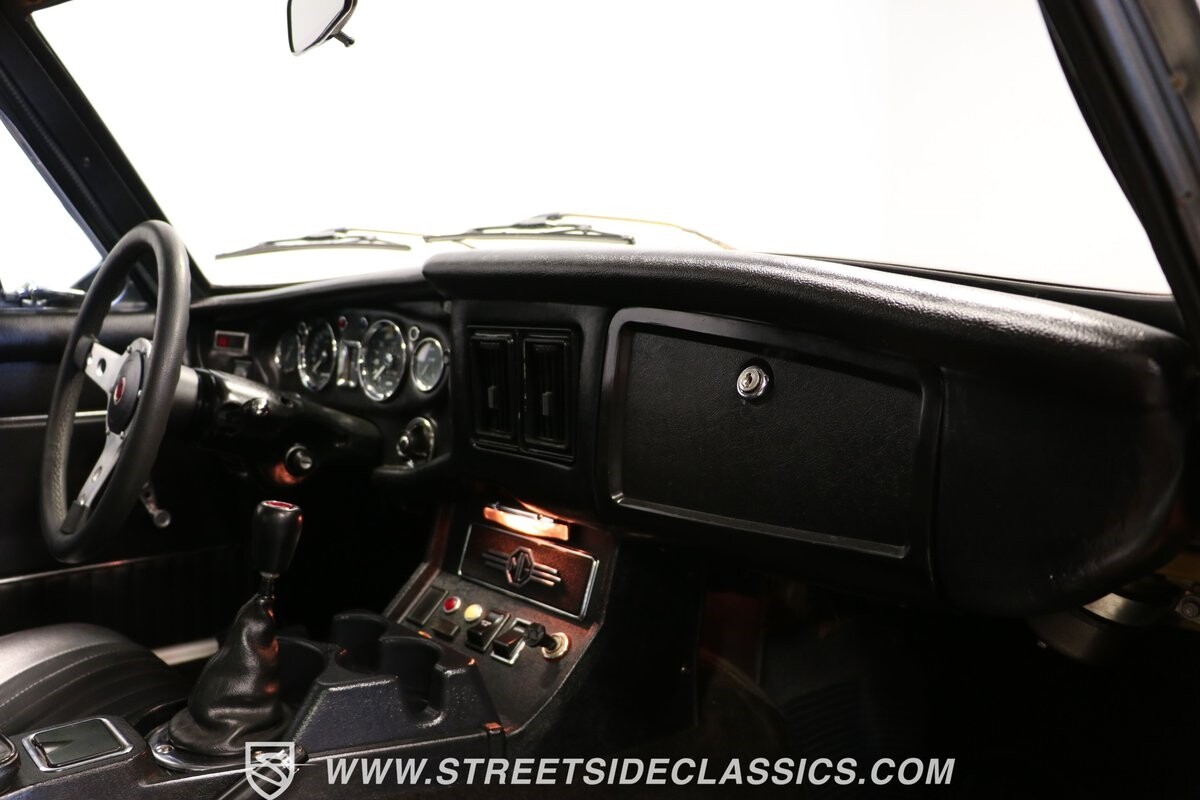 The motor has the same clean look and good care throughout the car. It's not just the polished pieces like the head cover and air grabber. This is tidy and fresh, right down to the wires and hoses. This has even received the right upgrades, like a Weber carburetor and a Cannon intake. It makes for a strong powerhouse that reaffirms this is a true driver's car. There's a confident feeling from the driver's seat thanks to front disc brakes and modern touring tires. So this coupe has the kind of style that begs for the open road, and that's precisely what an MGB GT is all about. The sound of the motor, the slickness of the four-speed gearbox, and the nimble handling will make it your favorite classic.