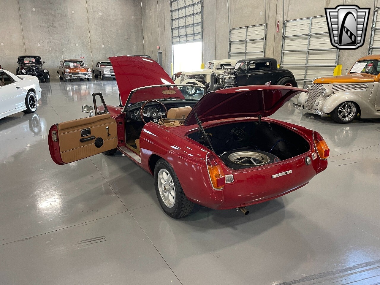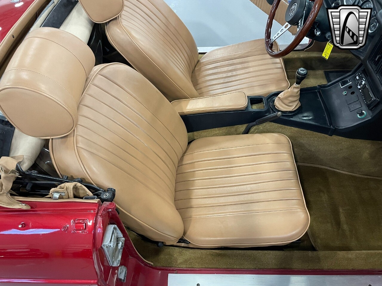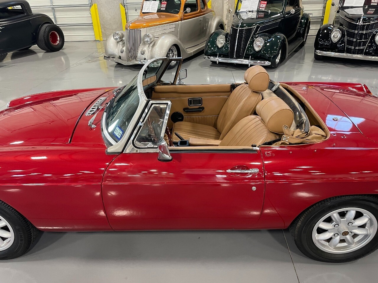 Gateway Classic Cars of San Antonio/Austin is happy to offer a true British classic, this 1975 MG MGB! The classic 1975 MG MGB is a timeless piece of British motoring history, and his particular model comes in a striking red exterior with slightly modified front & rear fascia's that have done away with those bulky U.S. mandated rubber bumper guards! The smoothed look and the crisp red exterior nicely complements the tan Moss seats, interior and top, creating a stylish and sophisticated aesthetic that is sure to turn heads.