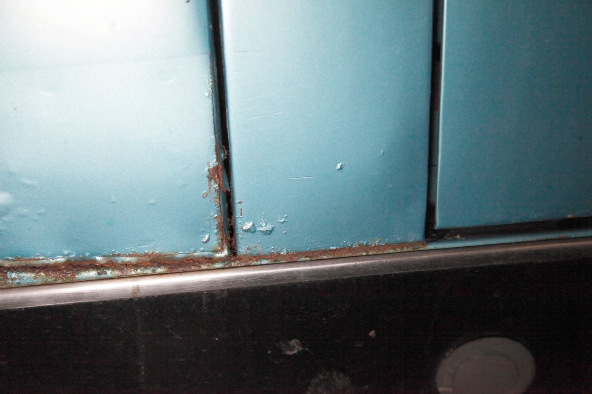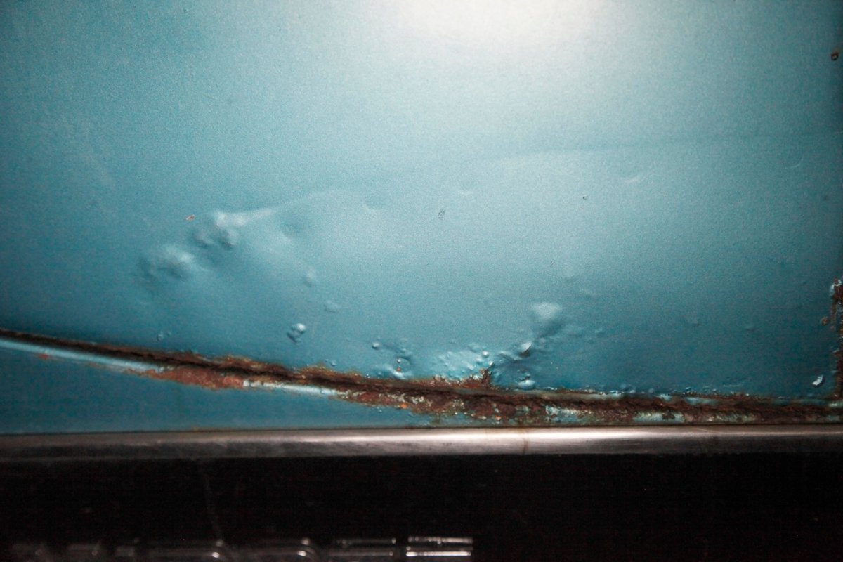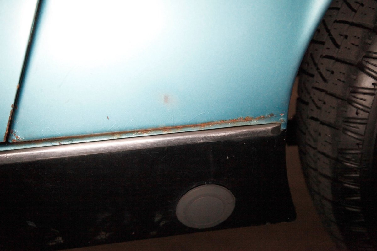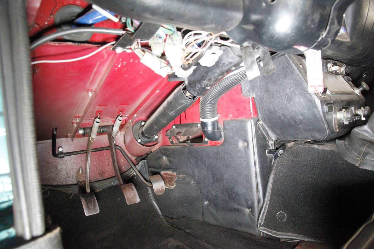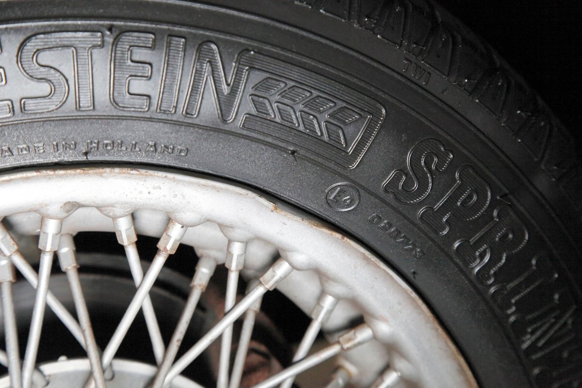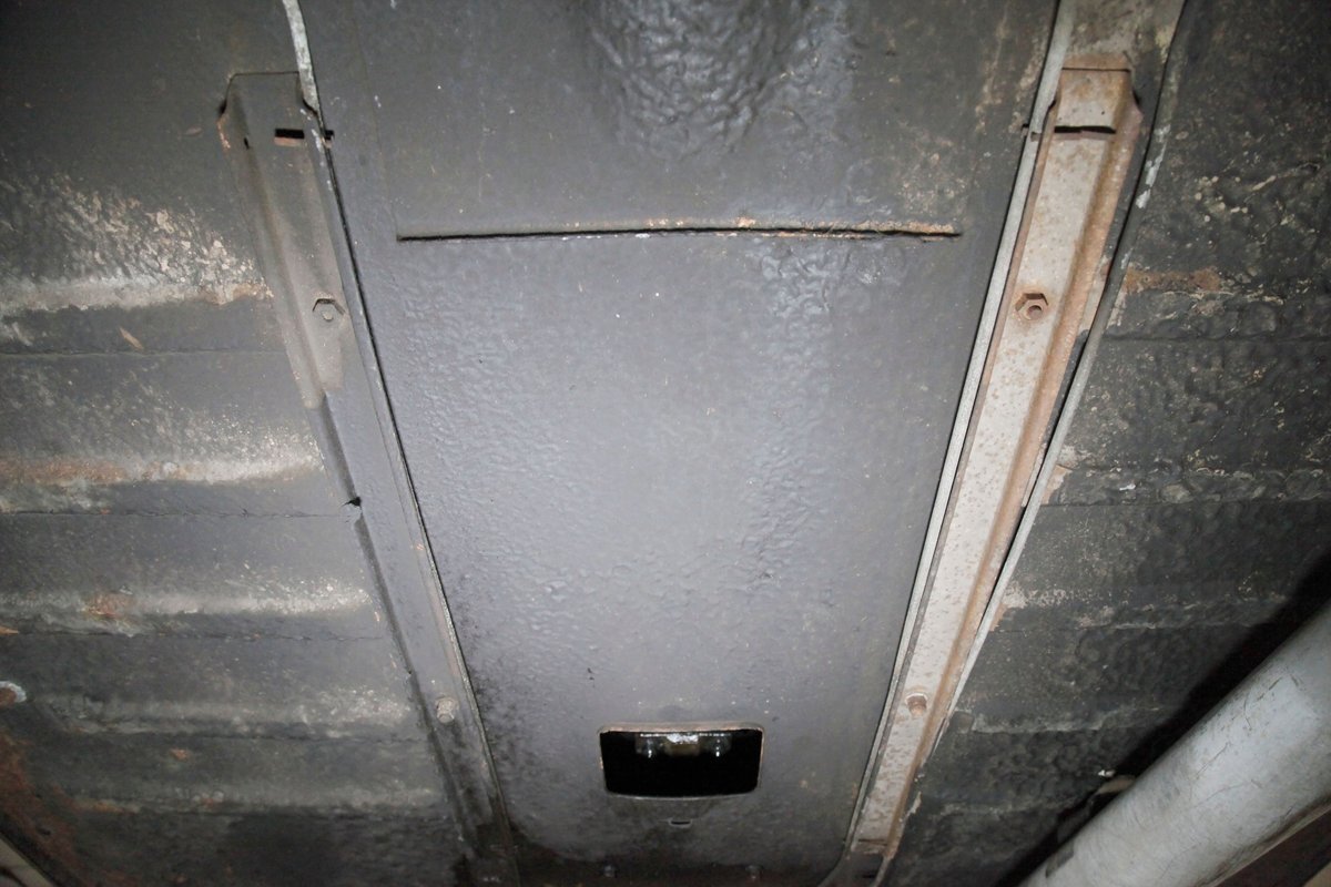 Underneath we note some surface rust, on suspension parts and the edges of the unibody where the floor pans and rockers meet. Front disc brakes are on with drums in the rear and the exhaust has a stock style muffler. Providing the sporty and surefooted ride is an independent coil spring front suspension that works with a leaf spring suspension in the rear and things are looking just cracking amid the patina finished undercarriage.