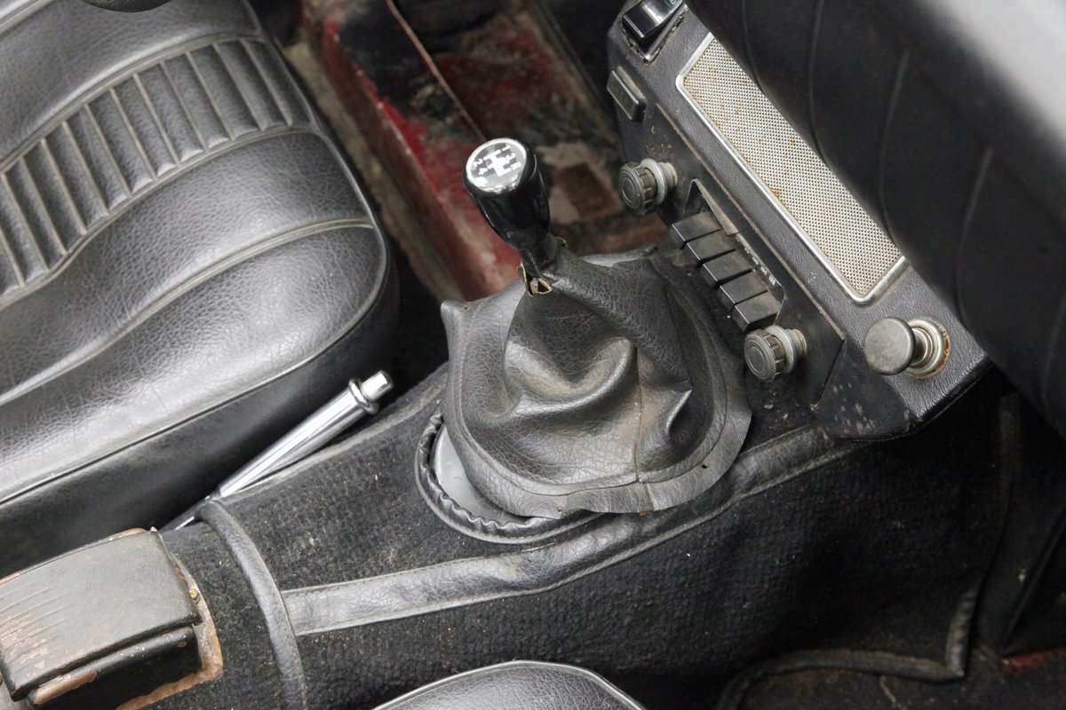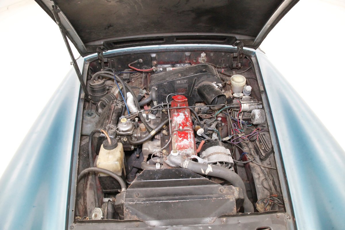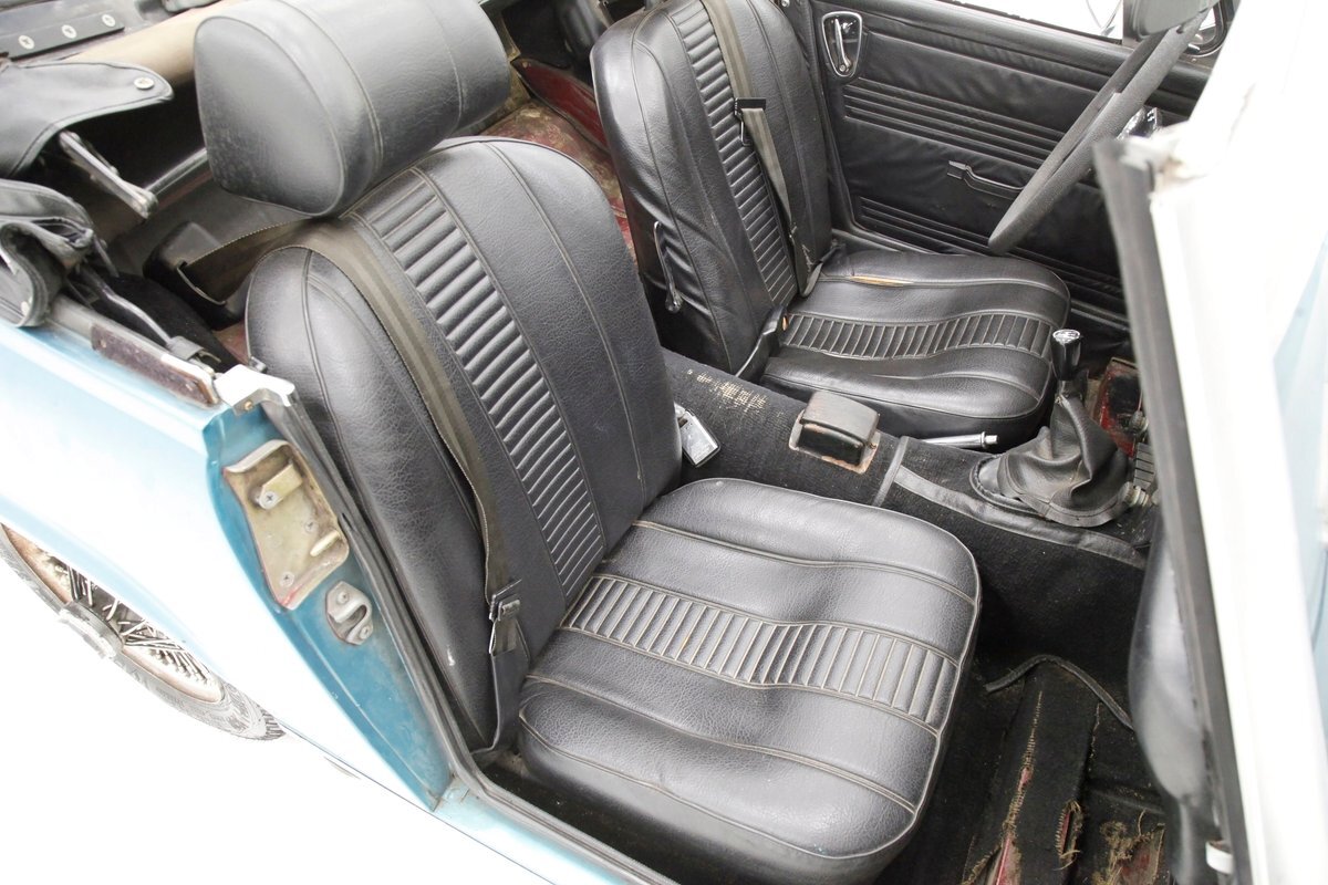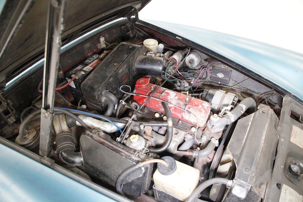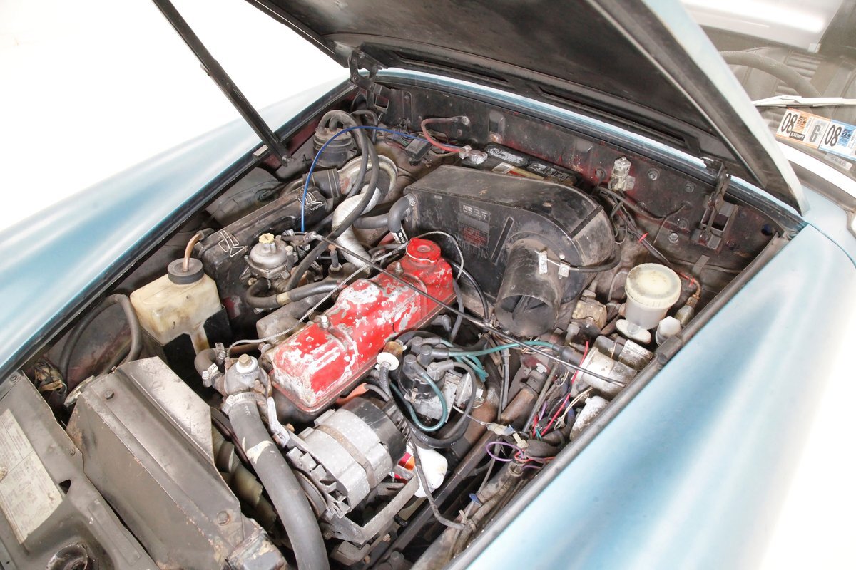 A flip of the bonnet and an unrestored and original engine bay greets us and is looking cracking. She's a Triumph SC 1493cc 4-cylinder and is fed by a single Zenith CD4 1-barrel carb with a new throttle cable and features overhead valves. On the back is a Morris Marina 4-speed manual transmission with a new slave and clutch cylinder pushing power rearward to a 3.90 rear axle. Small but mighty with a header now replacing the factory manifold and the emissions equipment removed.