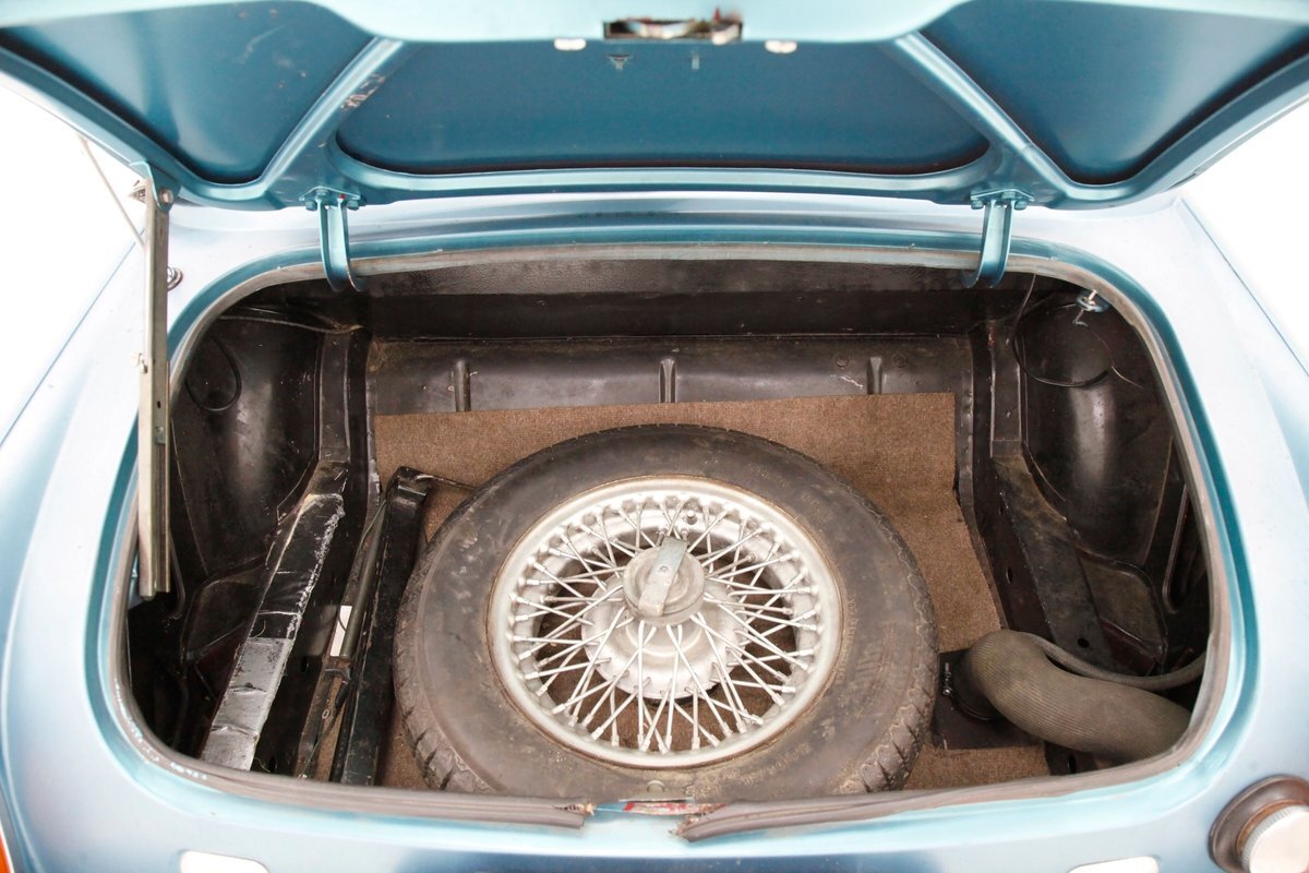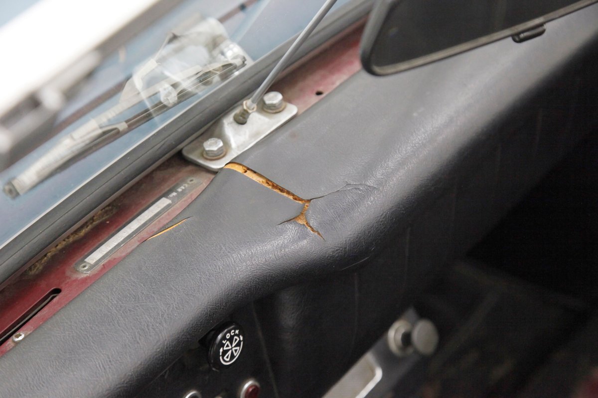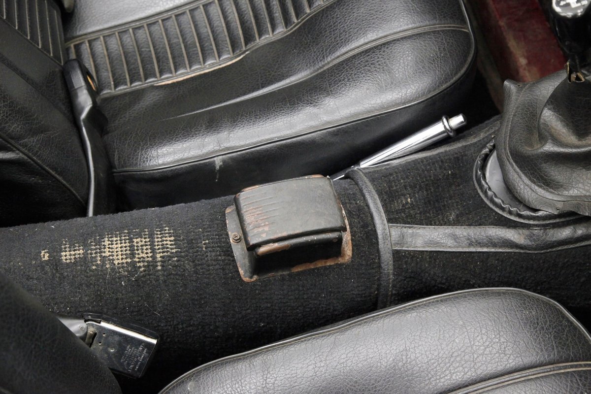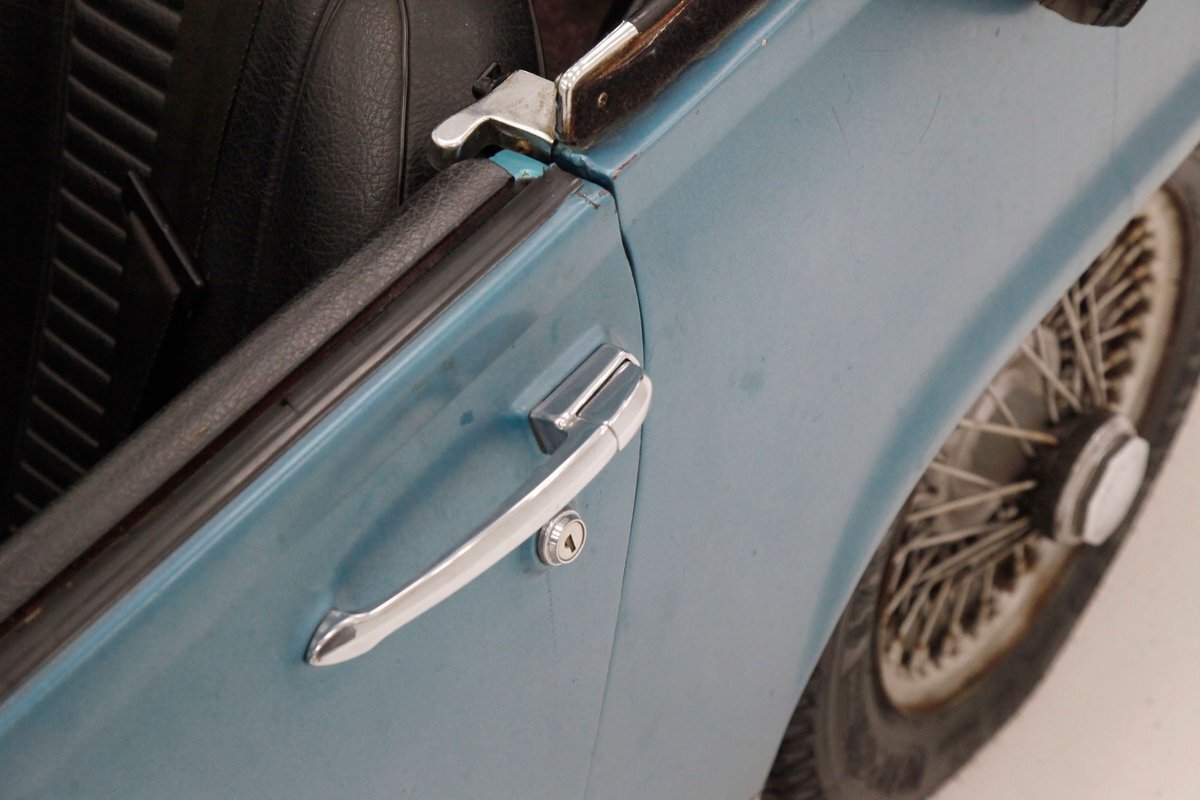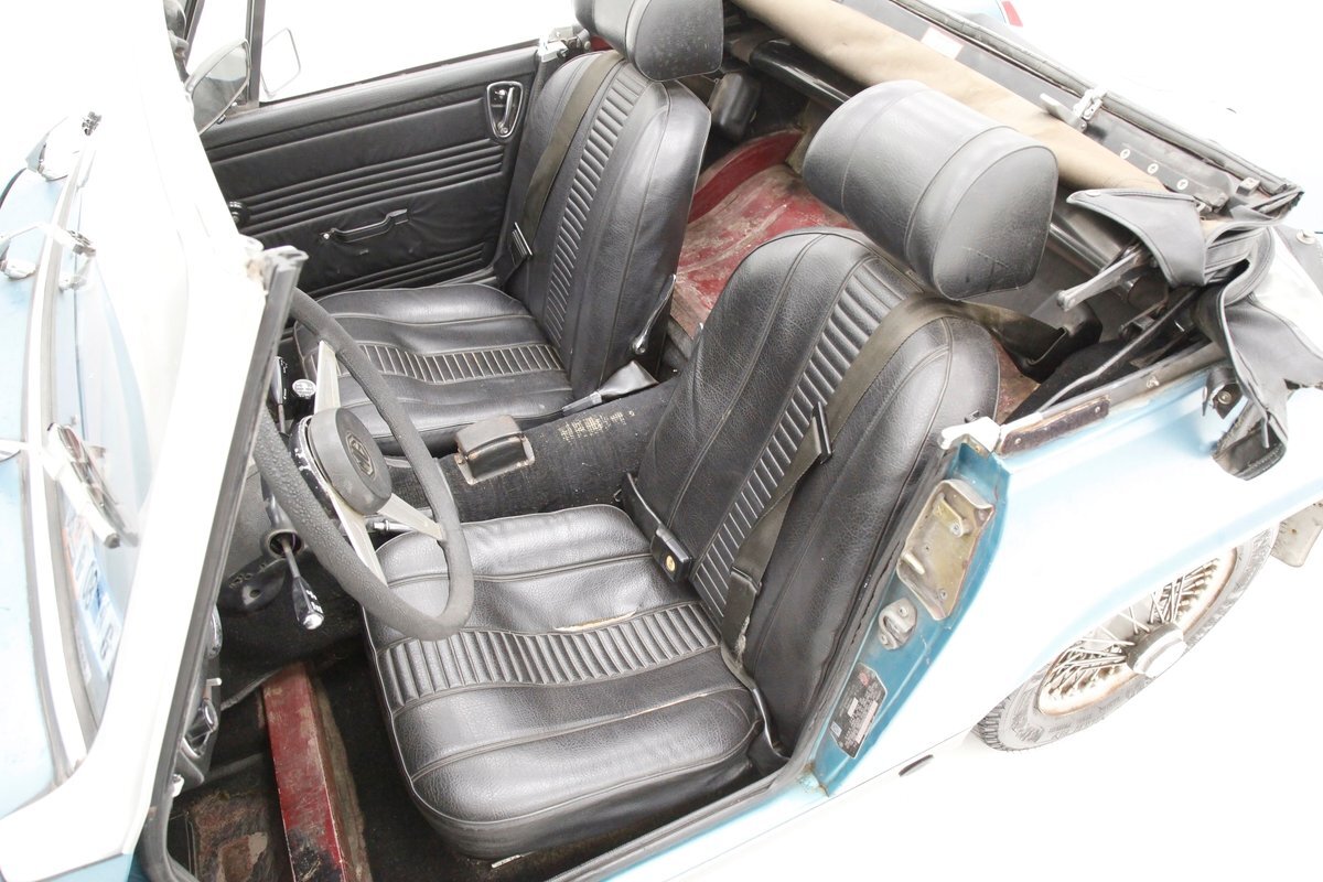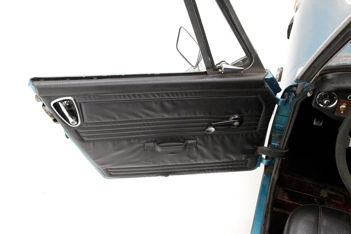 A flip of the bonnet and an unrestored and original engine bay greets us and is looking cracking. She's a Triumph SC 1493cc 4-cylinder and is fed by a single Zenith CD4 1-barrel carb with a new throttle cable and features overhead valves. On the back is a Morris Marina 4-speed manual transmission with a new slave and clutch cylinder pushing power rearward to a 3.90 rear axle. Small but mighty with a header now replacing the factory manifold and the emissions equipment removed.