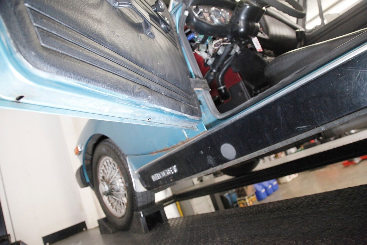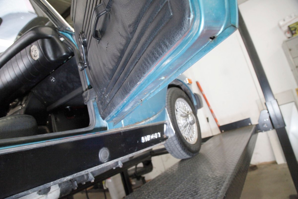 This car started with ease, and rolled effortlessly over to the Classic Auto Mall test track. Here it performed very nicely with some power coming from the engine and that Zenith 1-barrel carb. Good acceleration, smooth shifting, and very snappy handling, with straight bias free panic braking. An overall good experience especially with the top down but our drive was not without a few frowns. We noted the heater blow didn't blow, the radio did not belt out any tunes, the brake lights did not illuminate when prompted, and the wipers refused to wipe.