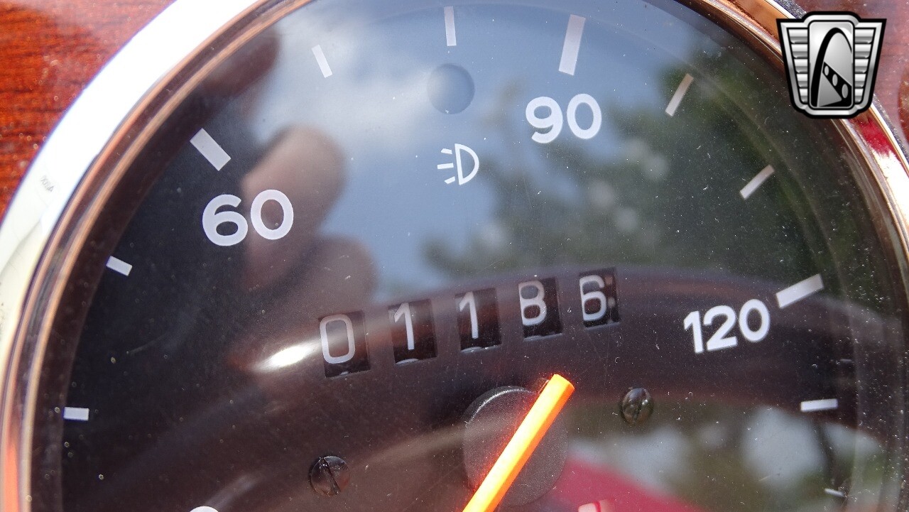 Inside, you'll find a tan vinyl interior that complements the exterior. The seats are comfortable and spacious, ensuring a pleasant ride for both the driver and passengers. The interior also features seatbelts, ensuring safety while maintaining the vintage aesthetic of the car.