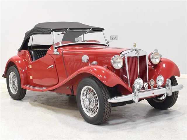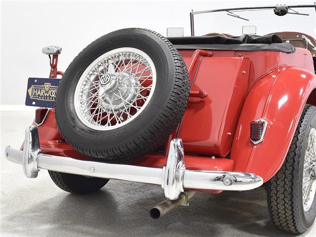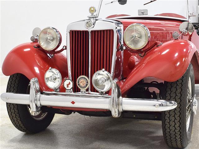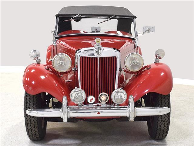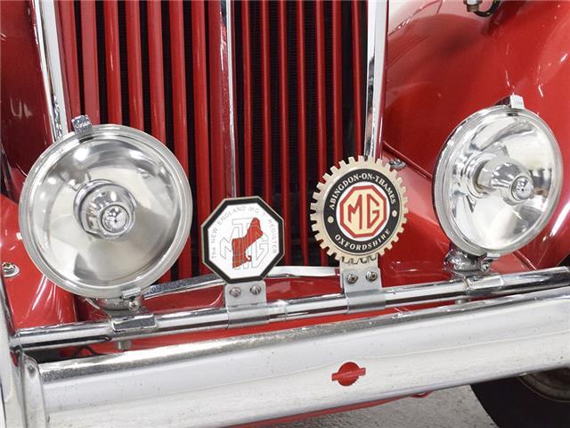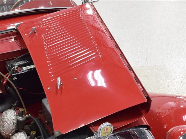 This appealing MG is instantly recognizable, and even people who don’t know much about cars seem to know that this is an MG and that an MG is special. The brilliant Signal Red paint certainly helps, because, after all, if you’re going to have a sports car, you may as well go with something flashy. The high-quality workmanship is visible throughout, with a deep gloss to the paint, laser-straight sheetmetal, and excellent fit and finish that shows in the way the doors open and close and how easy the hood is to latch. It’s difficult to resist running your fingertips down the long hood and while the TD was a notable update over the TC, it still has that old-fashioned MG look with separate headlights, an upright grille, and flowing fenders. This particular car is nicely dressed with chrome bumpers, accessory mirrors, and a Boyce moto-meter atop the radiator which is a wonderfully old-fashioned touch. The chrome was all restored with the rest of the car and remains in very good condition. It was not restored to be a trailer queen, so there are a few signs of use including a touch-up on the left front fender, but the quality is visible throughout and it works quite well.