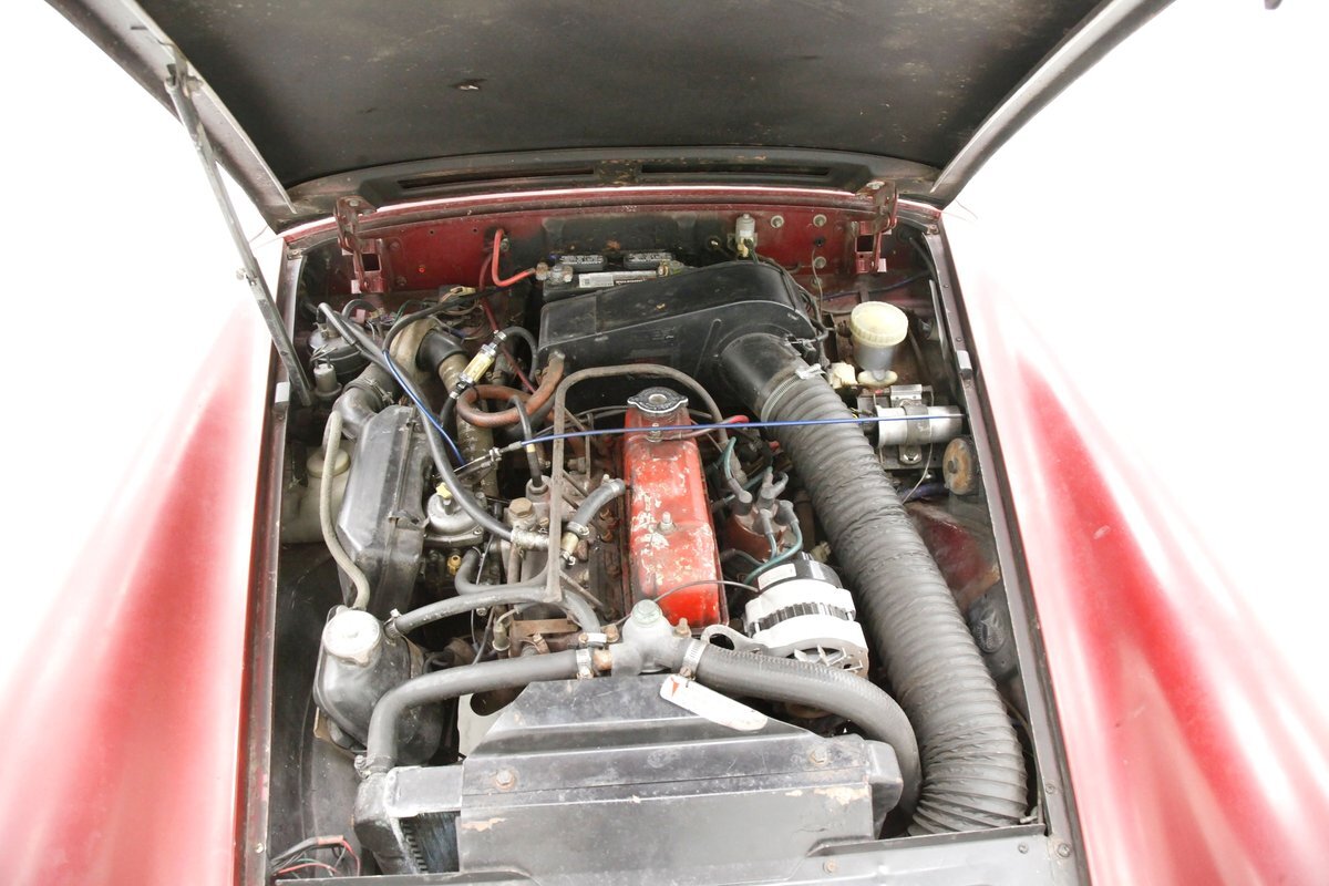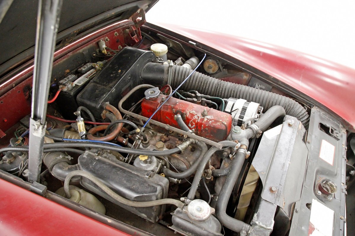 A flip of the bonnet and an unrestored and original engine bay greets us and is looking cracking. She's a BMC Austin A-series 1493cc 4-cylinder and is fed by a single Zenith CD4 1bbl carb and features overhead valves. On the back is a 4-speed manual transmission pushing power rearward to a 3.90 rear axle. Small but mighty with a new alternator noted.