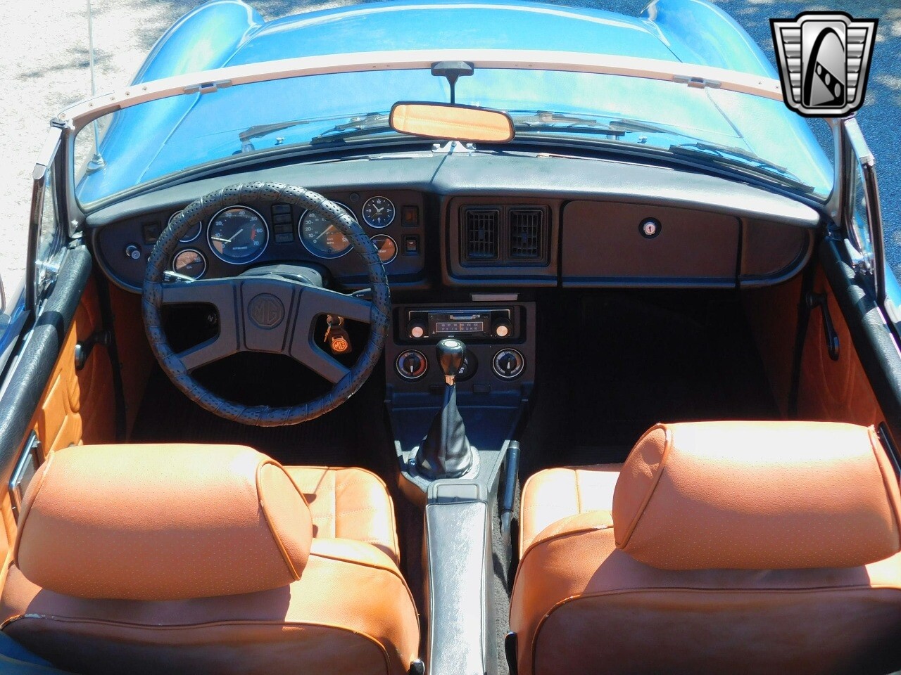 Gateway Classic Cars of Orlando invites you to step into the world of classic British motoring with this 1977 MG B. This iconic roadster is finished in a striking blue exterior, complemented by a rich brown vinyl interior, creating a timeless aesthetic that is sure to turn heads wherever you go.