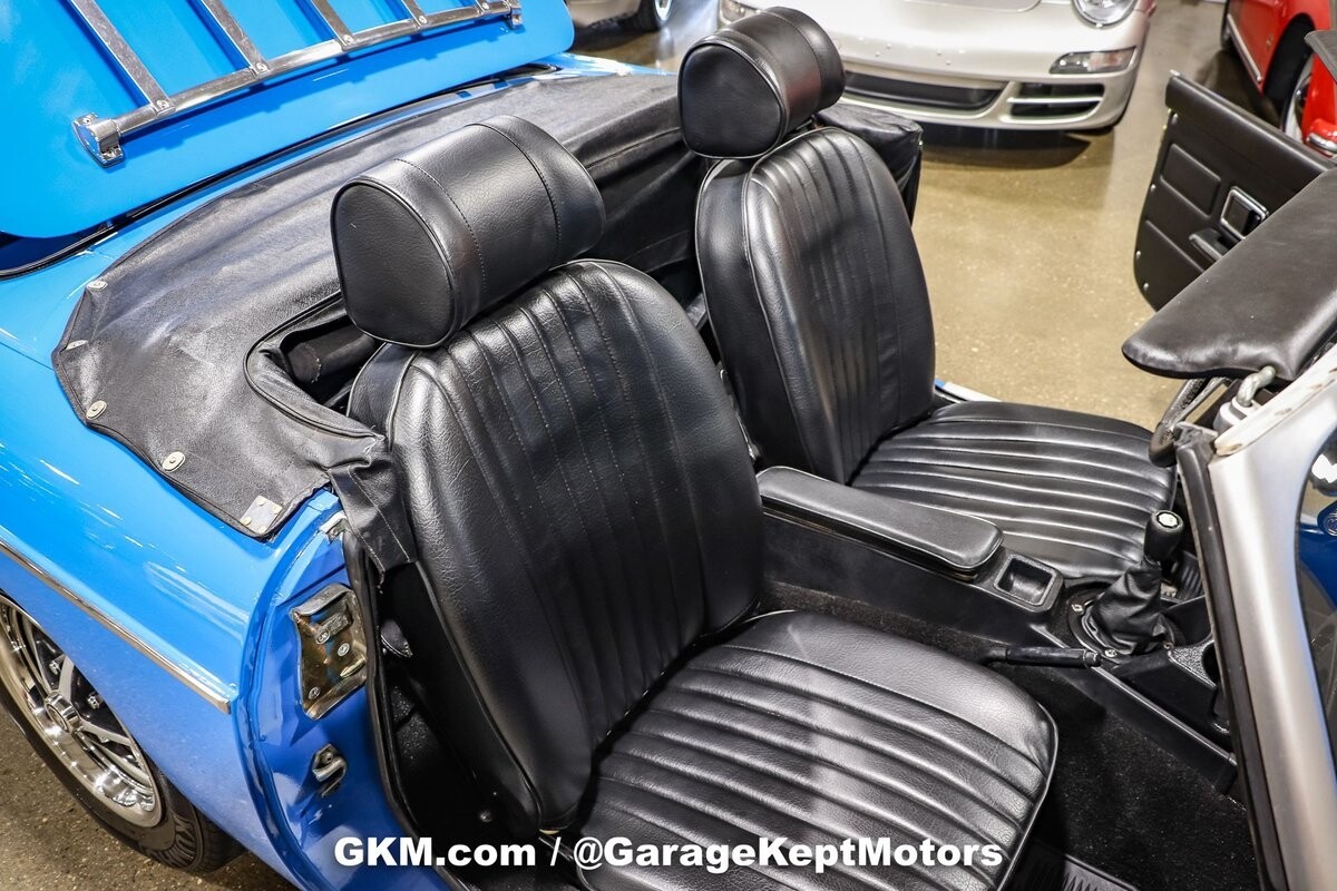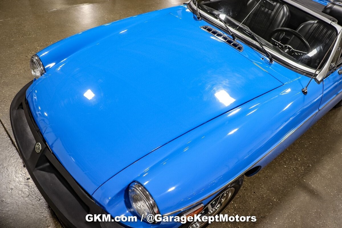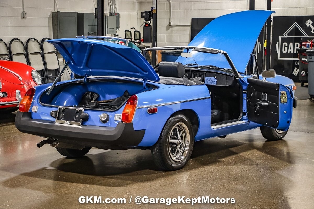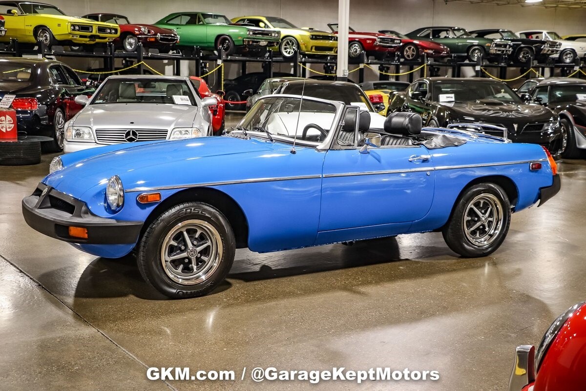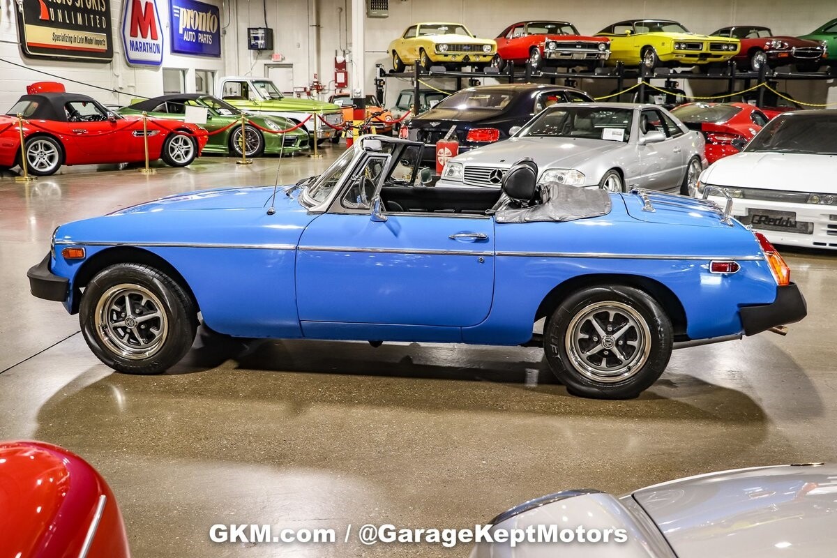 The 1979 MGB Roadster is a classic British sports car that exudes timeless charm and driving excitement. One of its unique features is the rare Pageant Blue exterior, a color that perfectly complements the car's vintage aesthetics and accentuates its sleek lines. This MG MGB Roadster represents the final iteration of the MGB, making it a sought-after collector's item among automotive enthusiasts.