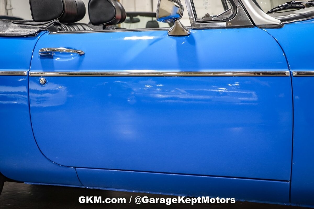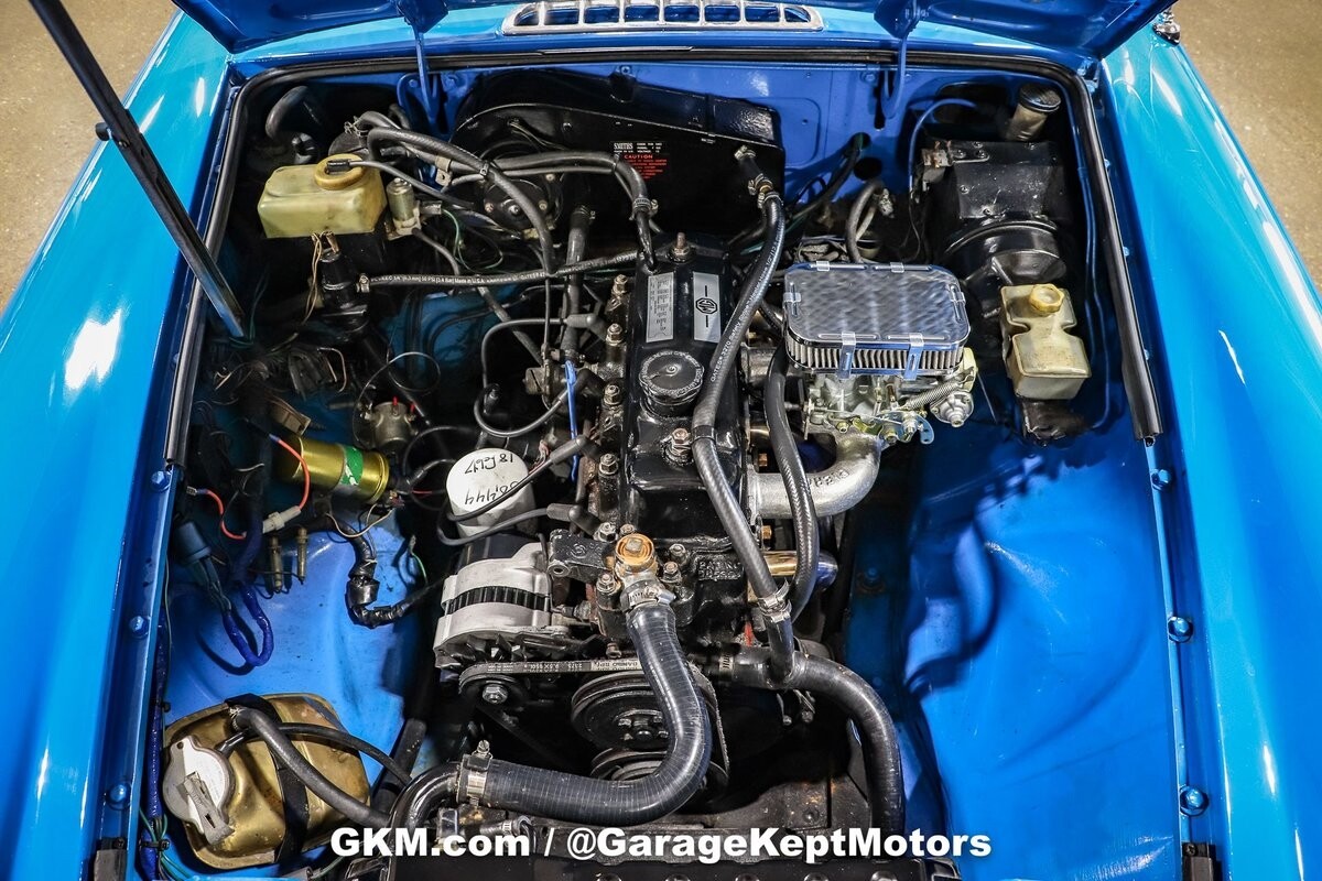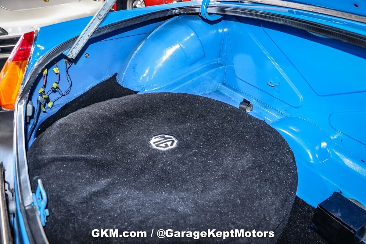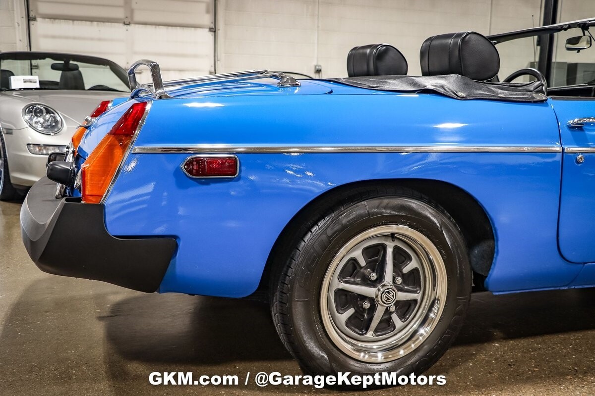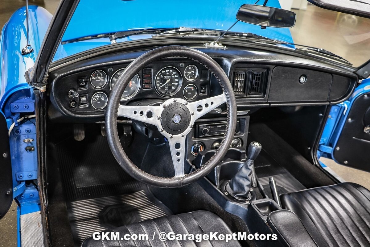 The 1979 MGB Roadster is a classic British sports car that exudes timeless charm and driving excitement. One of its unique features is the rare Pageant Blue exterior, a color that perfectly complements the car's vintage aesthetics and accentuates its sleek lines. This MG MGB Roadster represents the final iteration of the MGB, making it a sought-after collector's item among automotive enthusiasts.
