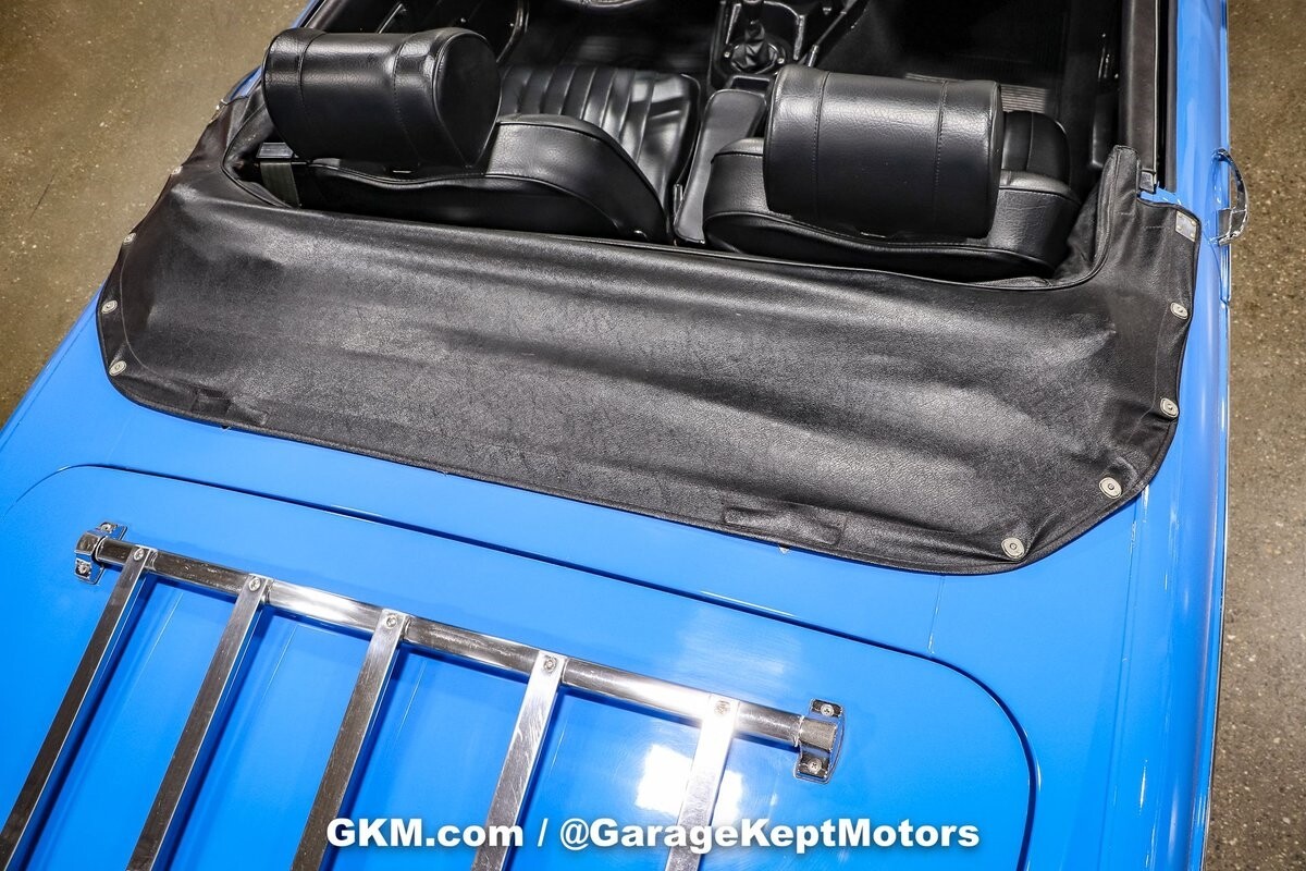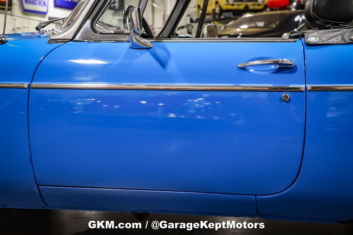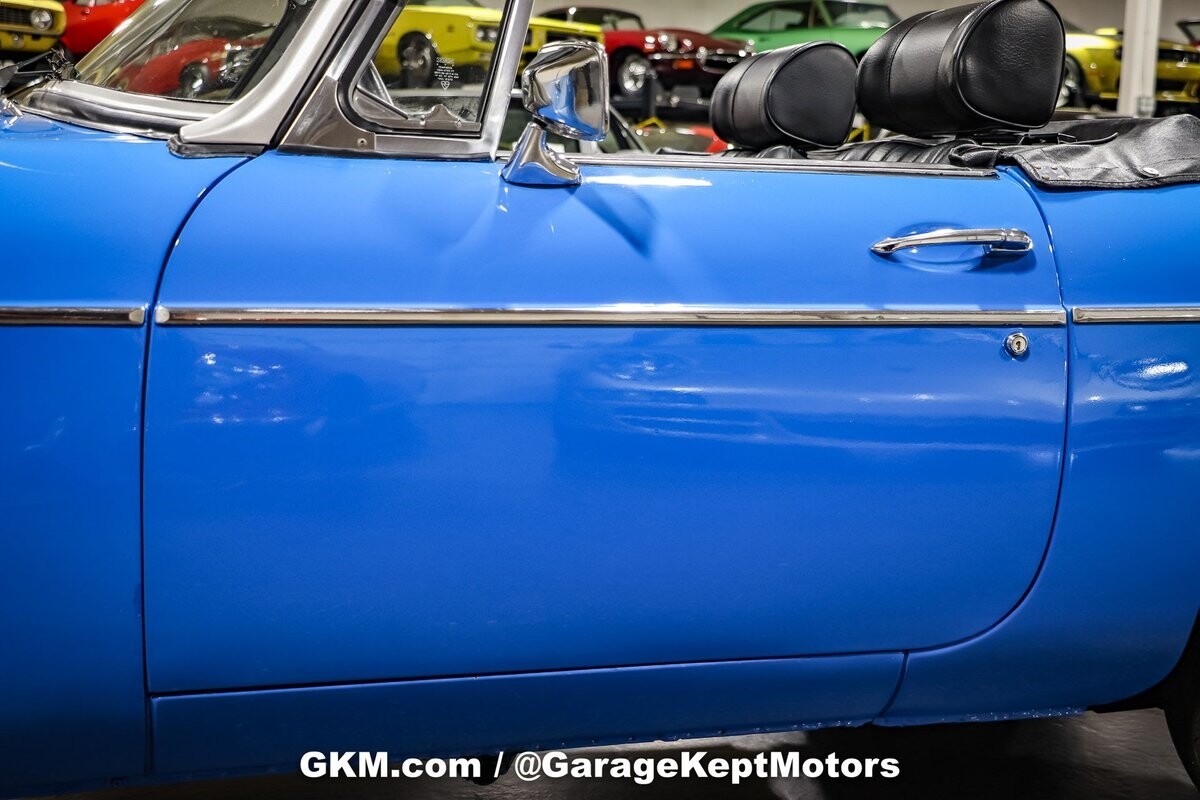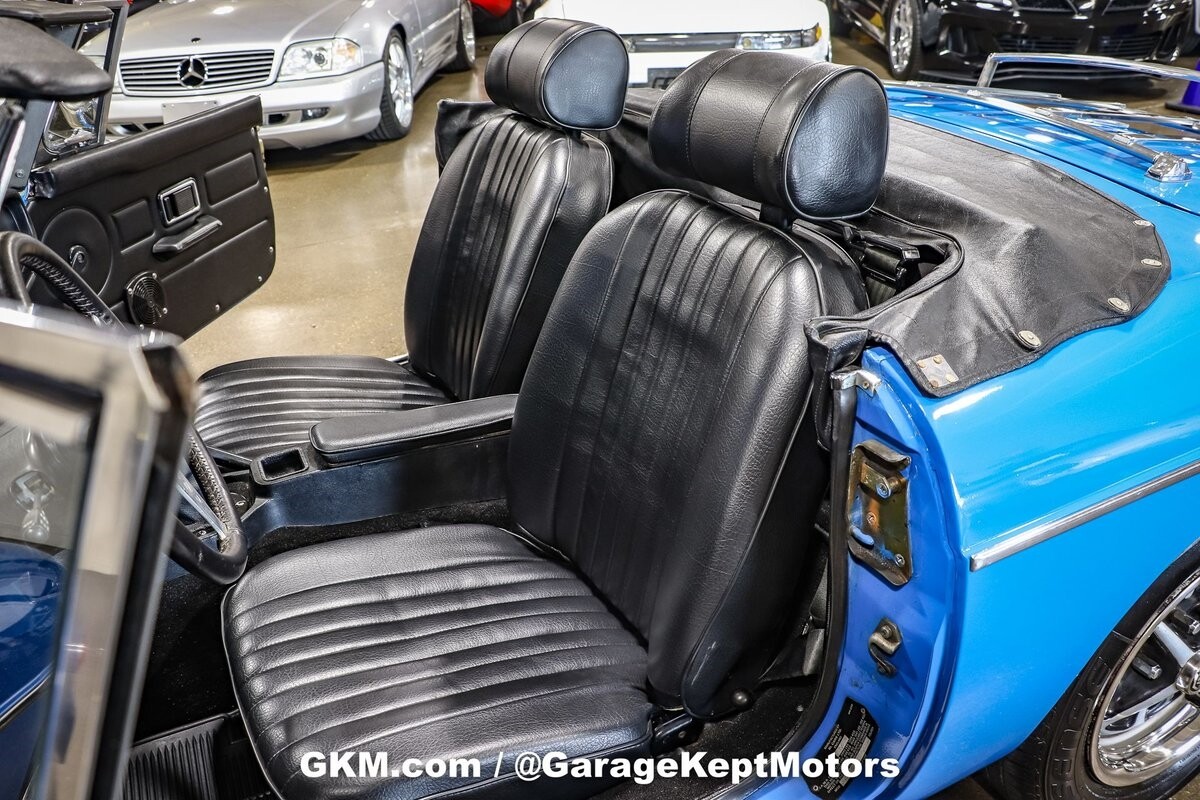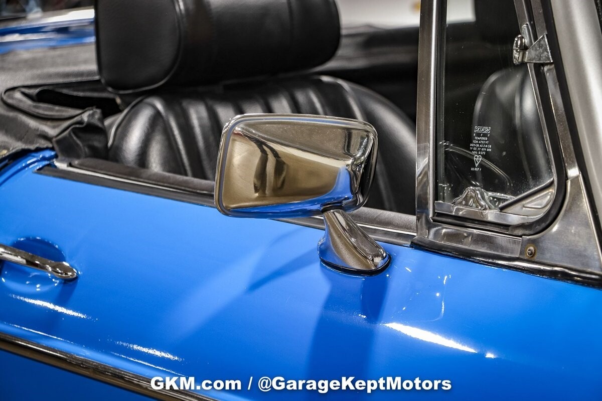 The 1979 MGB Roadster is a classic British sports car that exudes timeless charm and driving excitement. One of its unique features is the rare Pageant Blue exterior, a color that perfectly complements the car's vintage aesthetics and accentuates its sleek lines. This MG MGB Roadster represents the final iteration of the MGB, making it a sought-after collector's item among automotive enthusiasts.