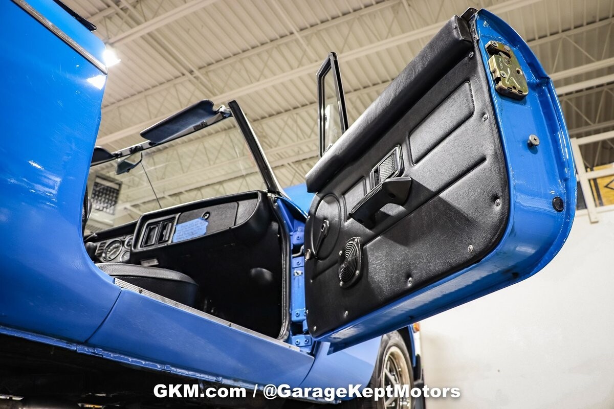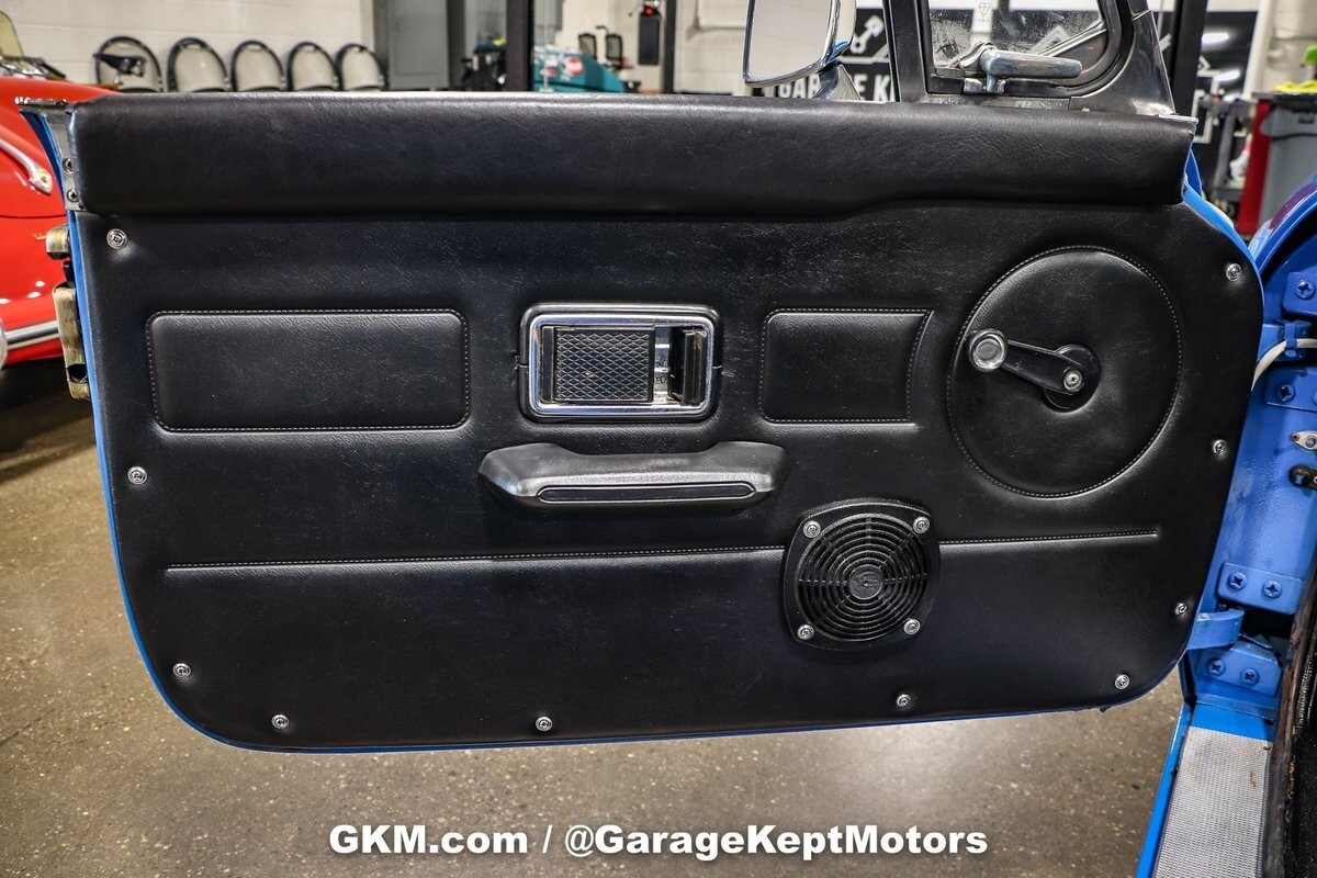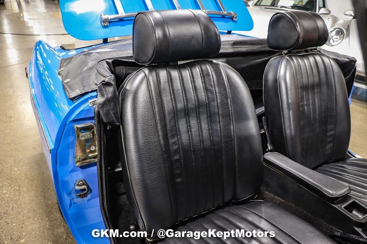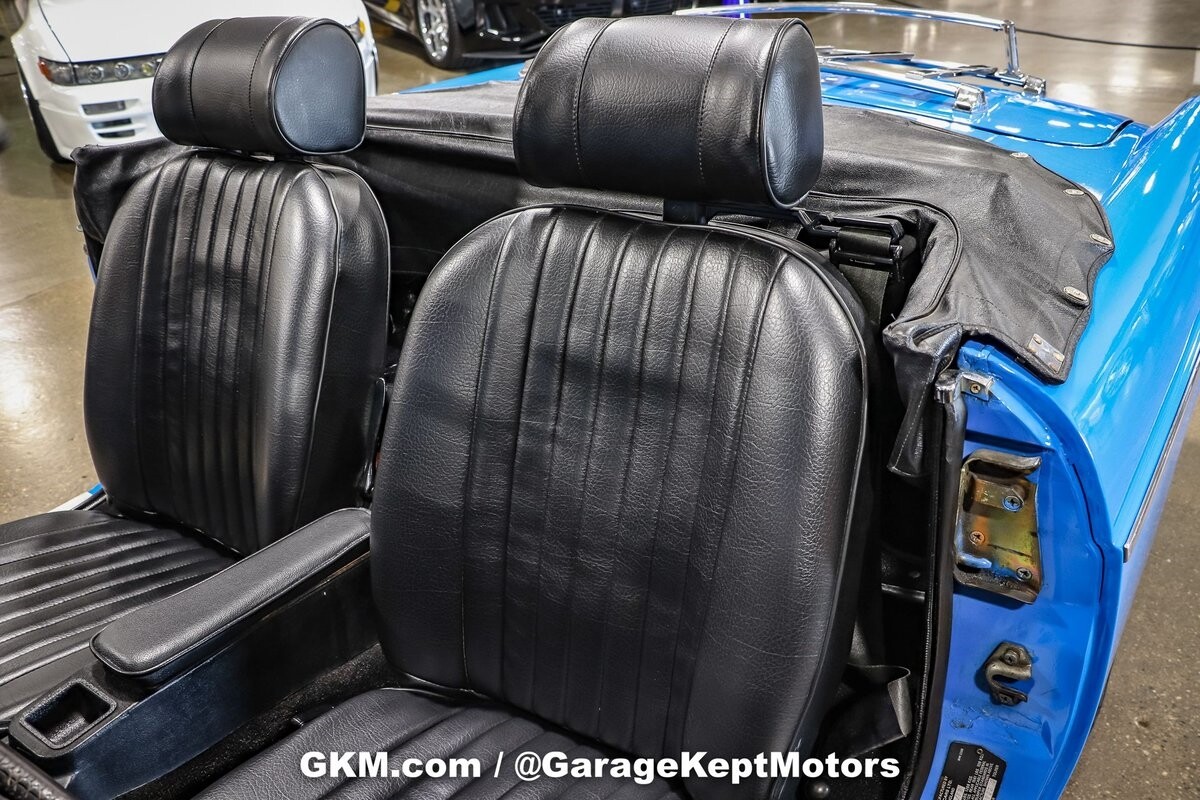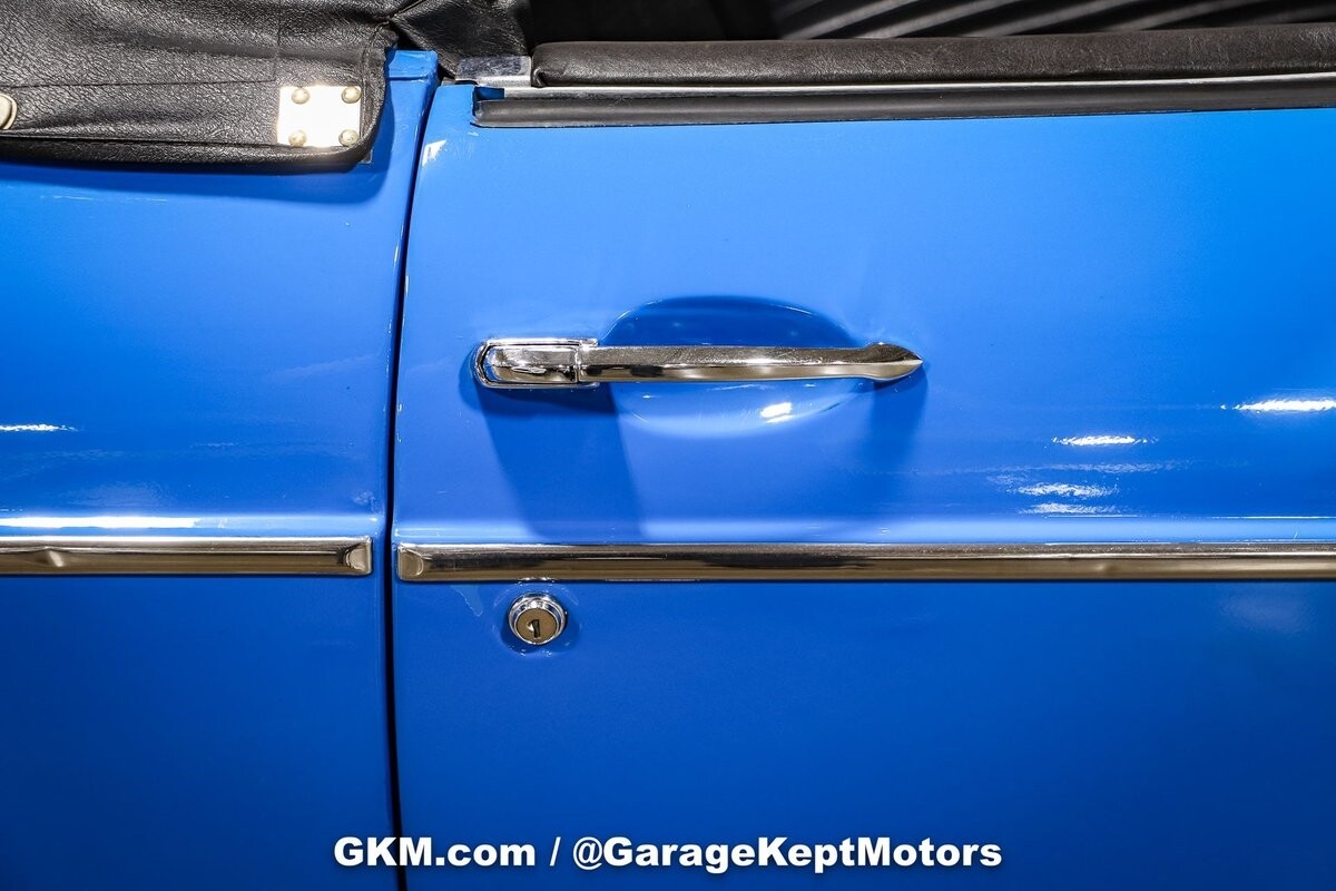 The 1979 MGB Roadster is a classic British sports car that exudes timeless charm and driving excitement. One of its unique features is the rare Pageant Blue exterior, a color that perfectly complements the car's vintage aesthetics and accentuates its sleek lines. This MG MGB Roadster represents the final iteration of the MGB, making it a sought-after collector's item among automotive enthusiasts.