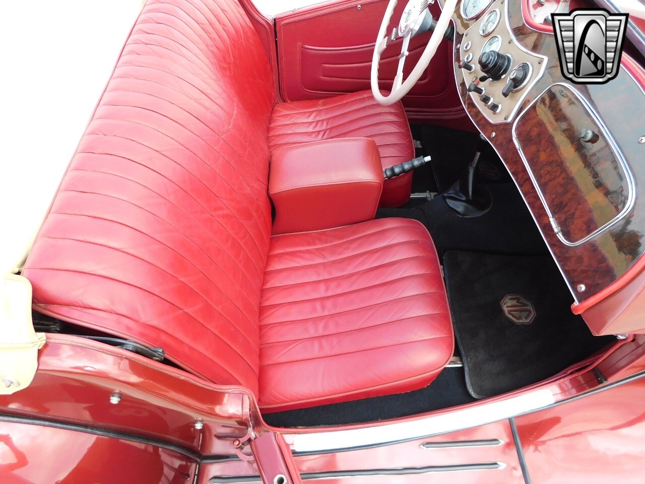 Gateway Classic Cars of San Antonio/Austin is pleased to present this nicely preserved 1951 MG TD. The TD Midget was introduced in January 1950, and it combined MG's TC drivetrain and the MG Y-type chassis to produce the new 1951 TD model. This TD is powered by the 1,250 CC 4-cylinder engine that still retains the original brass MG number tag, verifying the block is matching, and is teamed with a 4-speed manual transmission. This 1951 MG TD has a newer Cadillac "Autumn Maple metallic" PPG exterior paint and vibrant darker red leather interior and is also equipped with a black manual convertible top with a beige canvas cover, seat belts, spare tire and jack, original MG temperature Radiator cap, hub caps, radial tires, "King of the Road" headlamps, the optional armrest, the original "king Dick" tool set and even an antique Union Jack! Also to be included will be a folder of various receipts & invoices dating back to the early '80s. .