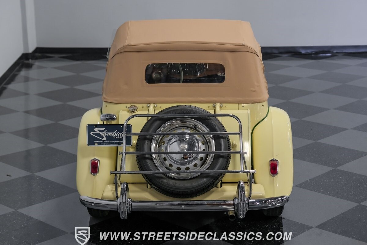 Gazing upon this 1952 MG TD, one can't help but be transported back to the days when GIs returning from Europe ignited the spark of road racing in the USA. With its beige exterior, complemented by a tan cloth convertible top and full side curtain package, this MG TD stands as a rolling emblem of post-war automotive enthusiasm. It sports Firestone 155R15 tires on 15" wheels, ensuring its stance is as authentic as its spirit. The body, having received a full repaint during its restoration journey, hints at a life cherished by enthusiasts. The inclusion of a wicker picnic basket adds a delightful touch of whimsy, underlining the vehicle's heritage and the adventures it promises.