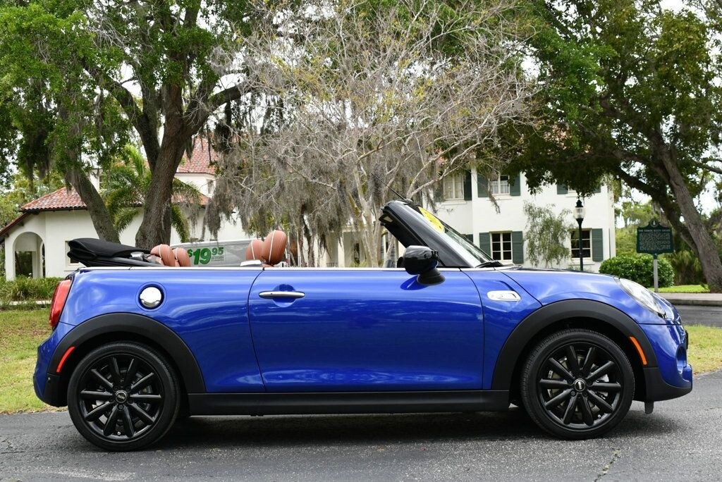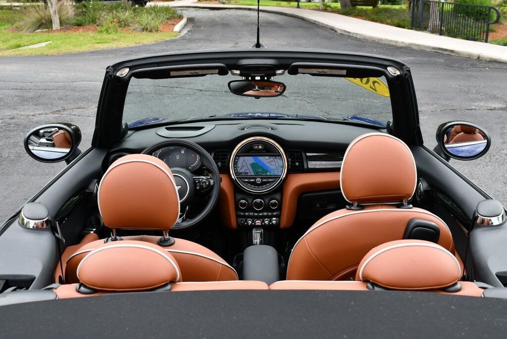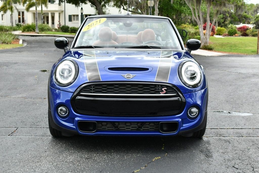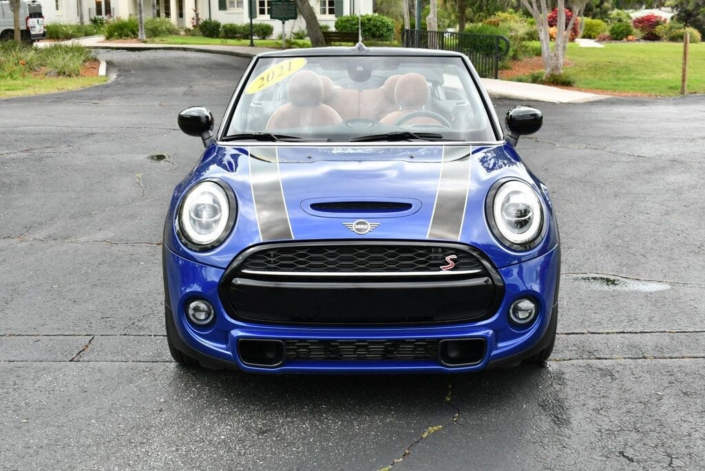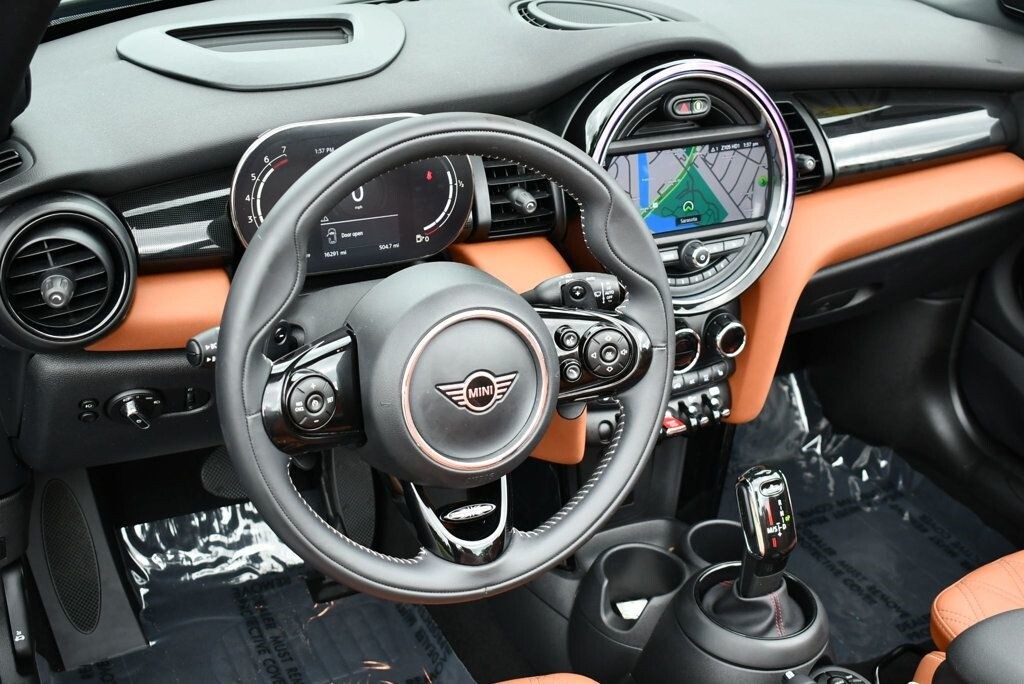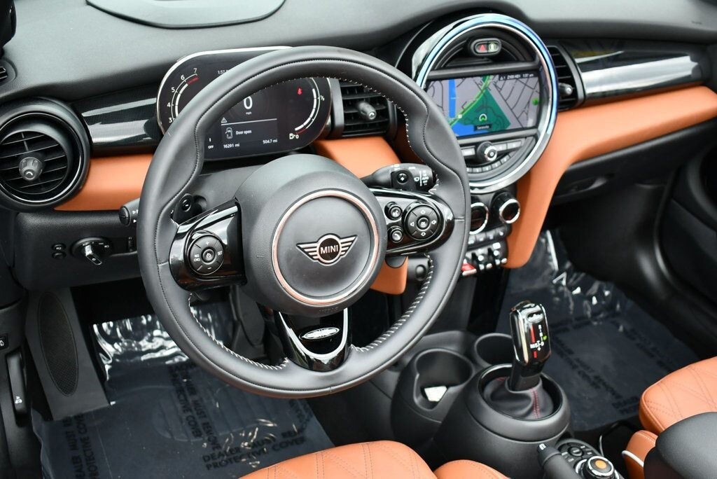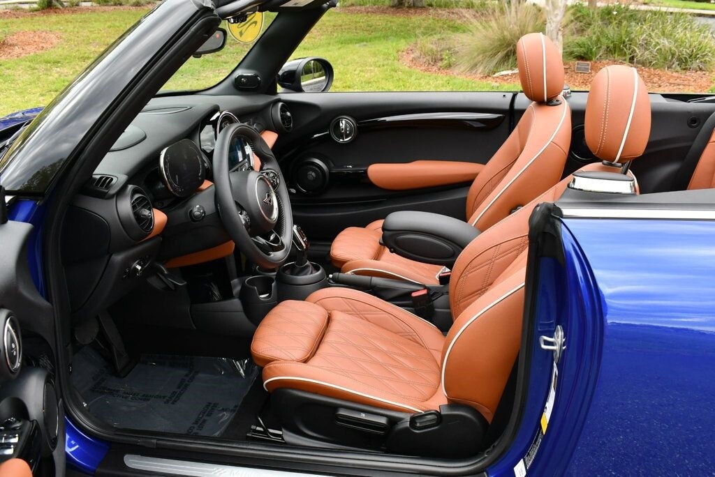 This 2021 MINI Cooper S Convertible 2dr with Iconic Trim Package and Touch Screen Navigation features a 2.0L 4 CYLINDER 4cyl Gasoline engine. It is equipped with a 7 Speed Automatic transmission. The vehicle is Starlight Blue Metallic with a Malt Brown Leather interior. It is offered with the remaining factory warranty. - Air Conditioning, Climate Control, Dual Zone Climate Control, Cruise Control, Power Steering, Power Windows, Power Door Locks, Power Mirrors, Leather Steering Wheel, Clock, Tachometer, Digital Info Center, Tilt Steering Wheel, Telescoping Steering Wheel, Steering Wheel Radio Controls, Sunroof, Moonroof, Driver Airbag, Passenger Airbag, Side Airbags, Keyless Entry, Rear Defogger, Fog Lights, Intermittent Wipers, AM/FM, Leather Interior Surface, Apple CarPlay, Aux. Audio Input, Bluetooth, Carbon Fiber Trim, Center Arm Rest, Daytime Running Lights, Front Heated Seats, Heads Up Display, Heated Mirrors, Navigation System, Overhead Console, Parking Sensors, Power Brakes, Premium Alloy Wheels, Premium Sound, Rain Sensing Wipers, Rear Fog Lamps, Reverse Camera, Roll Stability Control, Sport Seats, Tire Pressure Monitor, Vanity Mirrors -