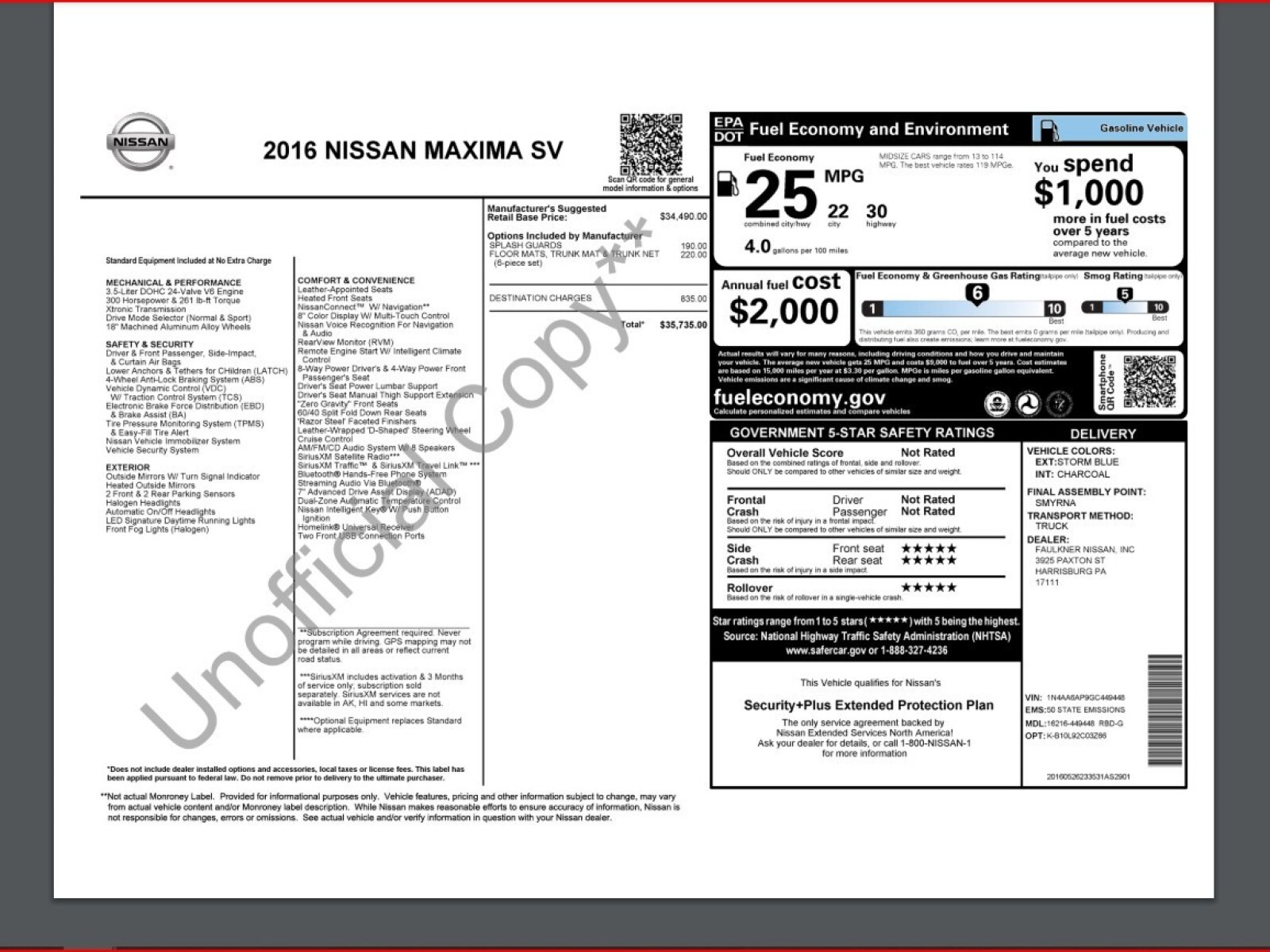 State or local taxes, title, license fee, processing fees, registration fee, dealer documentary fee, finance charges, emission testing fees, and compliance fees are additional to the advertised price.