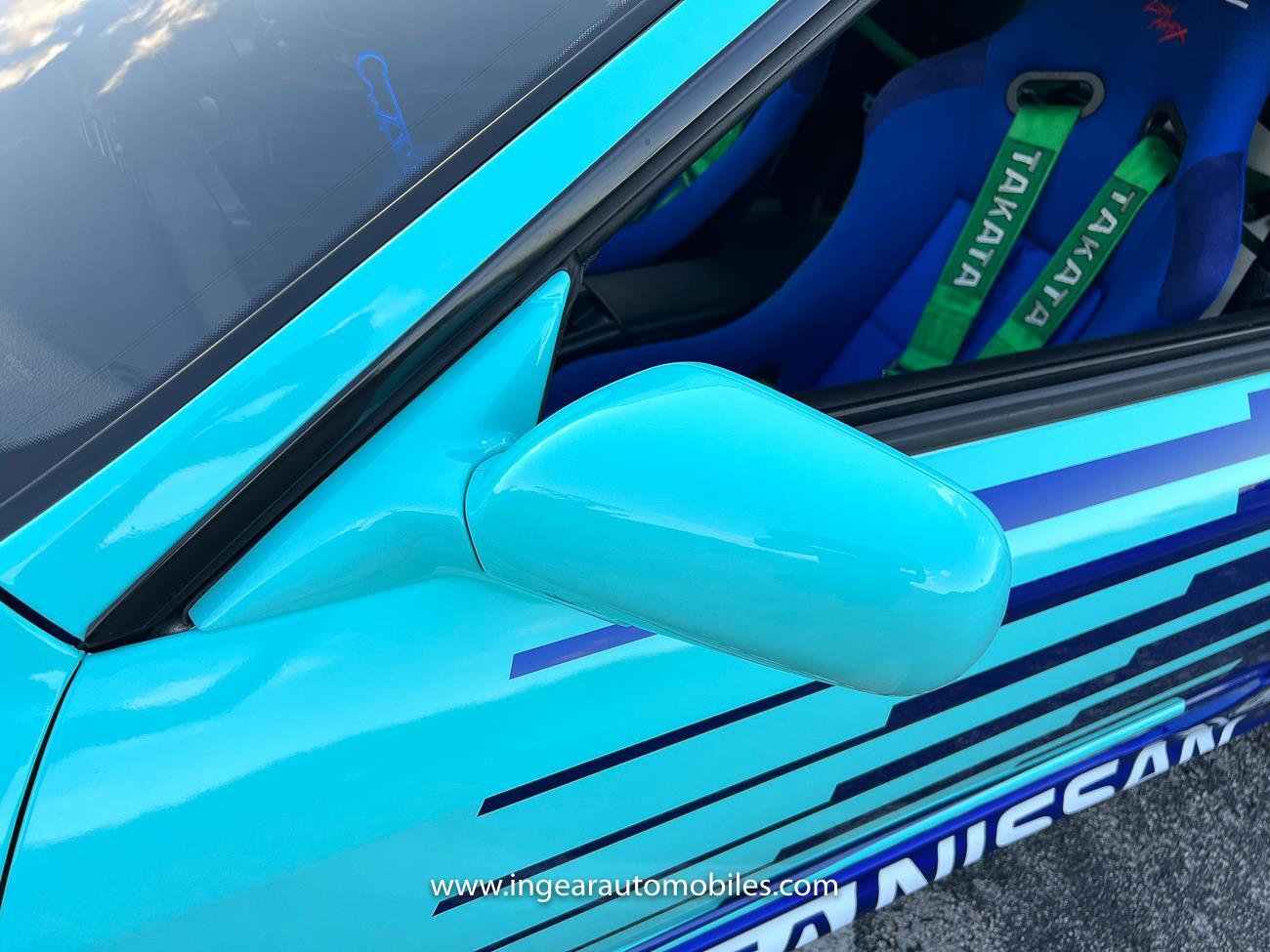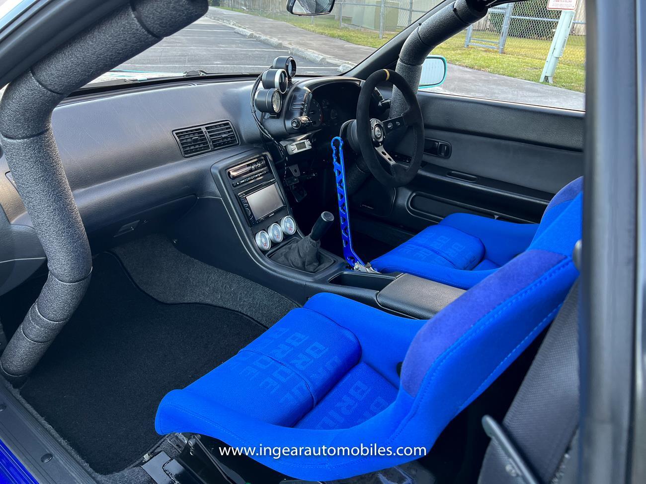 The Body is really clean check out my 150+ detailed pictures of the car. The interior is in great condition! Very comfortable and pleasant to be in, it almost looks new thats how nice it is. It's got all the factory options! The rear back area was fully fabricated with aluminum sheets, Full roll cage painted in black, blue racing seats, racing harness belts, turbo timer, full set of guages, AEM air/fuel guage, Nismo guage cluster, Pioneer screen with DVD, suede racing steering wheel, suede shifter boot, drift blue billet lever, racing pedals, and more...