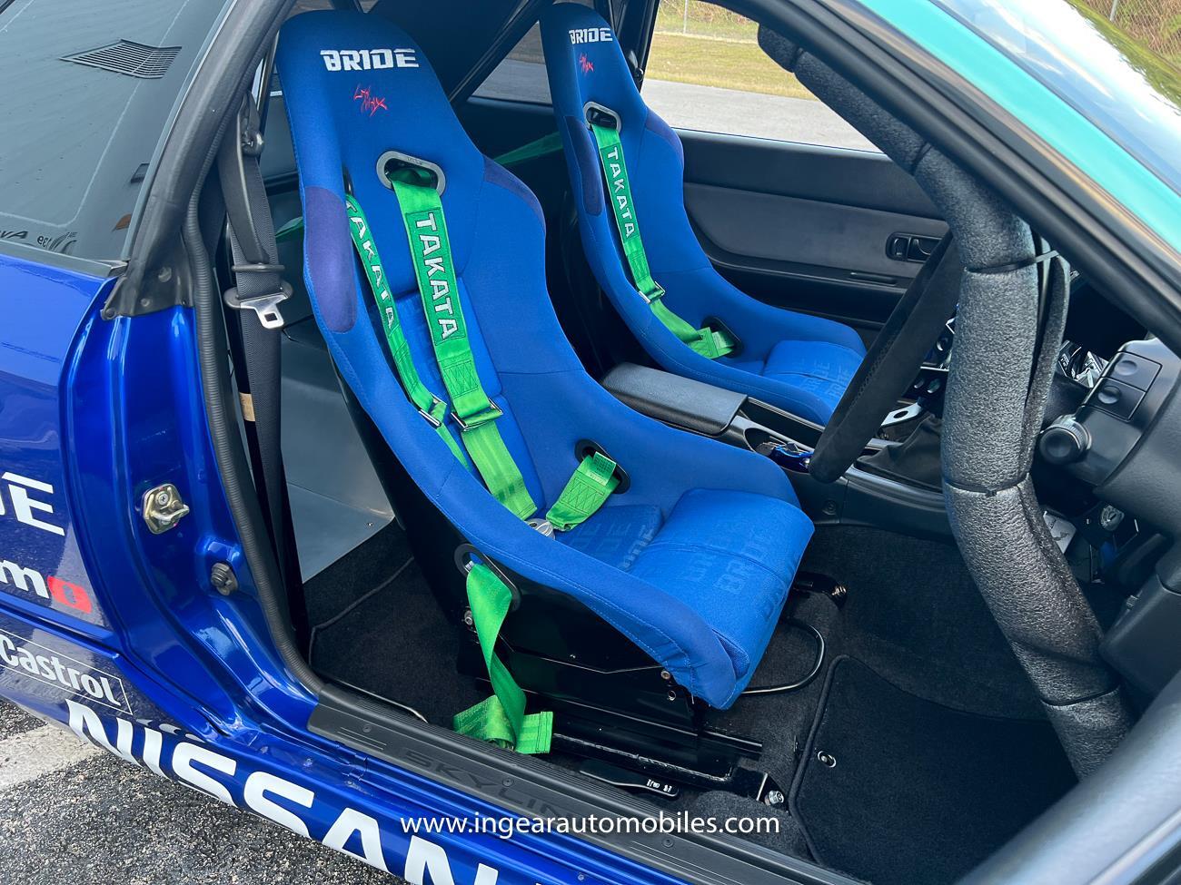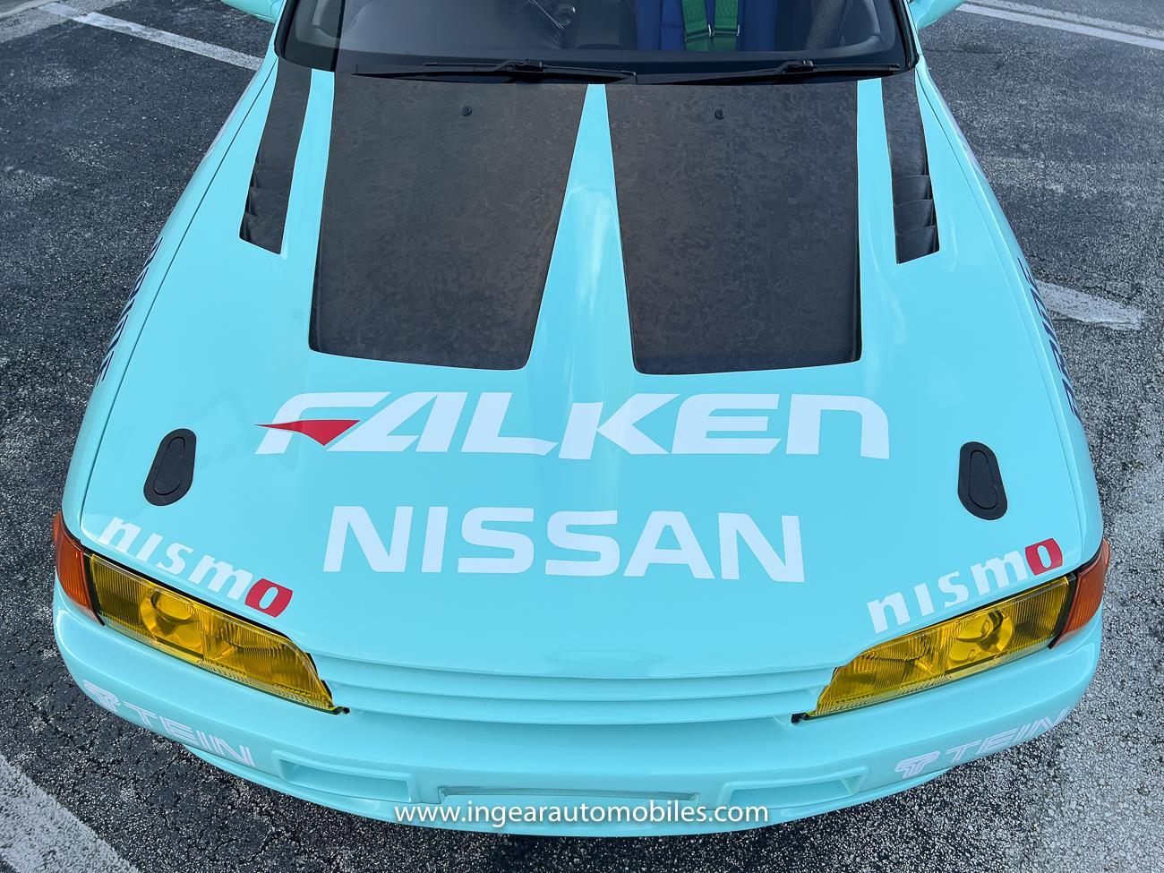 Up for sale is a unique build of a 1993 Nissan Skyline R32 into the Falken Racing GT-R Group A replica race car. Inspired by the Skyline GT-R GR.N race car, this one you can get a coffee in, without running foul of the law. Originally Group A made about 500hp this particular Skyline is built with an RB26DETT straight-six from an R34 making a conservative 500whp for daily driving. Installed is Haultech Elite 2000 ECU that is fully programmable. Lots of time and money was spent on this build with quality parts.