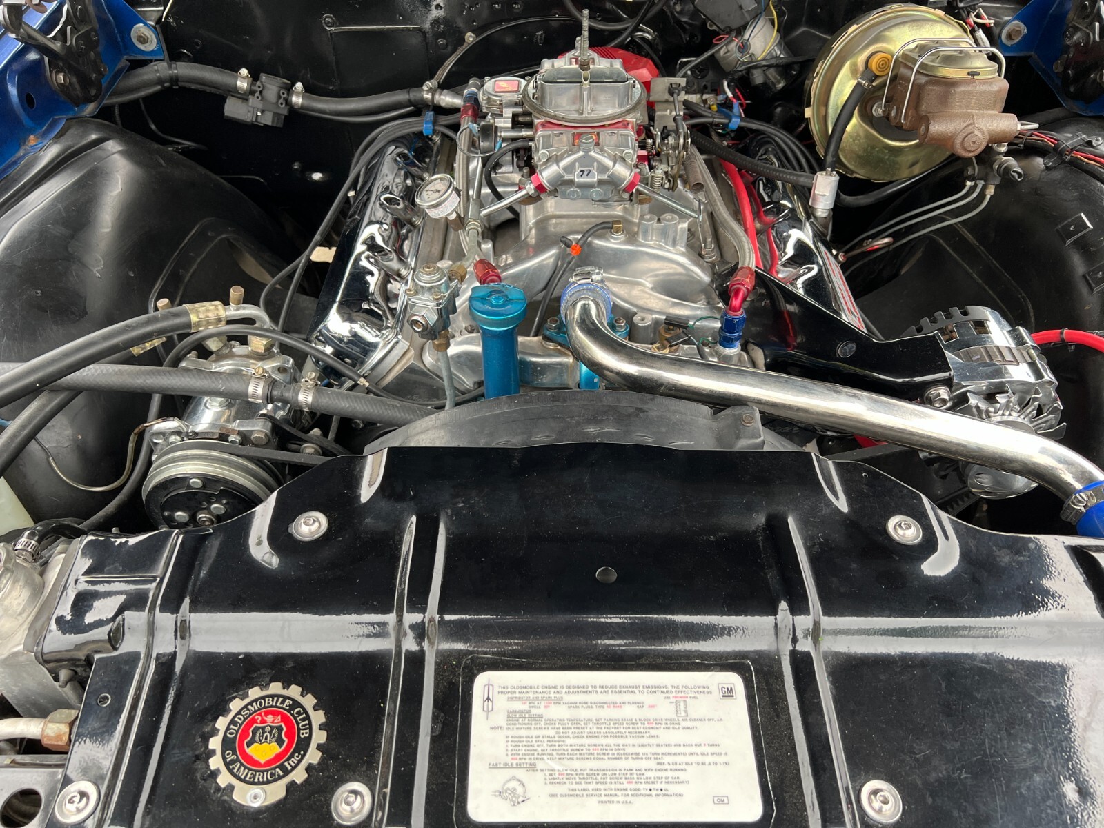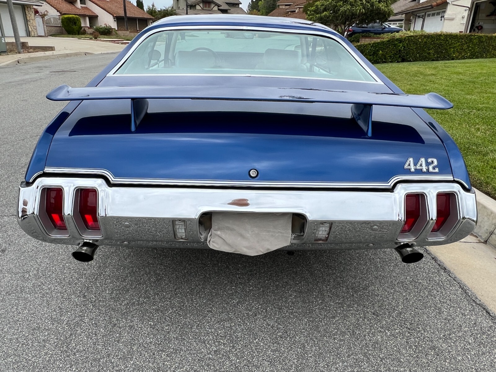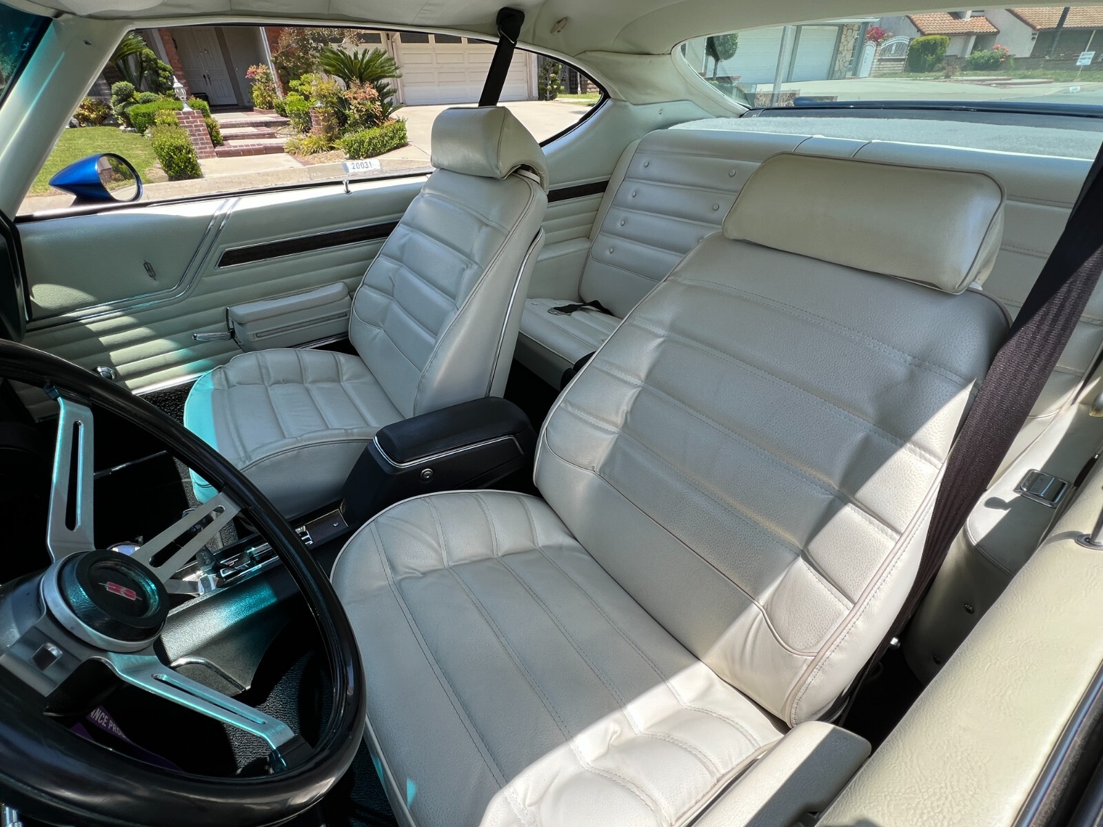 •1970 Olds 442 built Freemont ,Calif. First sold Ventura,Calif. Completly restored starting 2005 by father /son project approx. 12 years later .Electron Metallic Blue w/factory W25 Ram Air hood /W35 Rear spoiler w/custom LED 3rd rear tail light. White saddle bucket seats/interior by Legendary. 455 cubic inch motor 0.030 over not numbers matching -correct serial block/Edelbrock Aluminum heads/factory 442 automatic blue print cam/roller rockers/recent New ceramic Headman headers/Doug Thorley electric cutouts/approx. 12K miles since engine rebuild-completely rings seated runs excellent. Air Gap intake w/QFT 880 CFM carb/HEI 65K Volt ignition/New AGR fast ratio steering box/Vintage AC/Hurst Dual Gate 4sp shifter/console/ART CARR HD Turbo 200R4 trans/Northern Aluminum radiatior/All new Moog suspension w/ 1 3/8 “ front sway bar/Hotchkis HD rear control arms w/1” rear sway bar/ 4-wheel disc brakes all four wheels/SSBC dual piston front caliber//new 3:42 ratio posi traction /W27 aluminum rear cover/New Koni shock. Recent 2022 New Cooper tires 235x55Rx16 on Special Chrome/Aluminum Hopster wheels./New LED headlight/custom Sequential LED tail lights/complete new harness for car/new battery/Milton 909 996-5046 So. Calf Olds Member 1228 ;OCA 3166