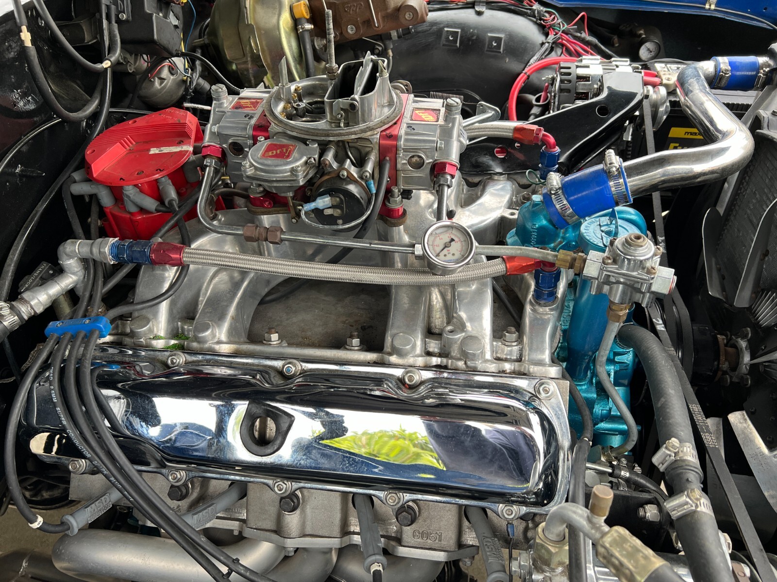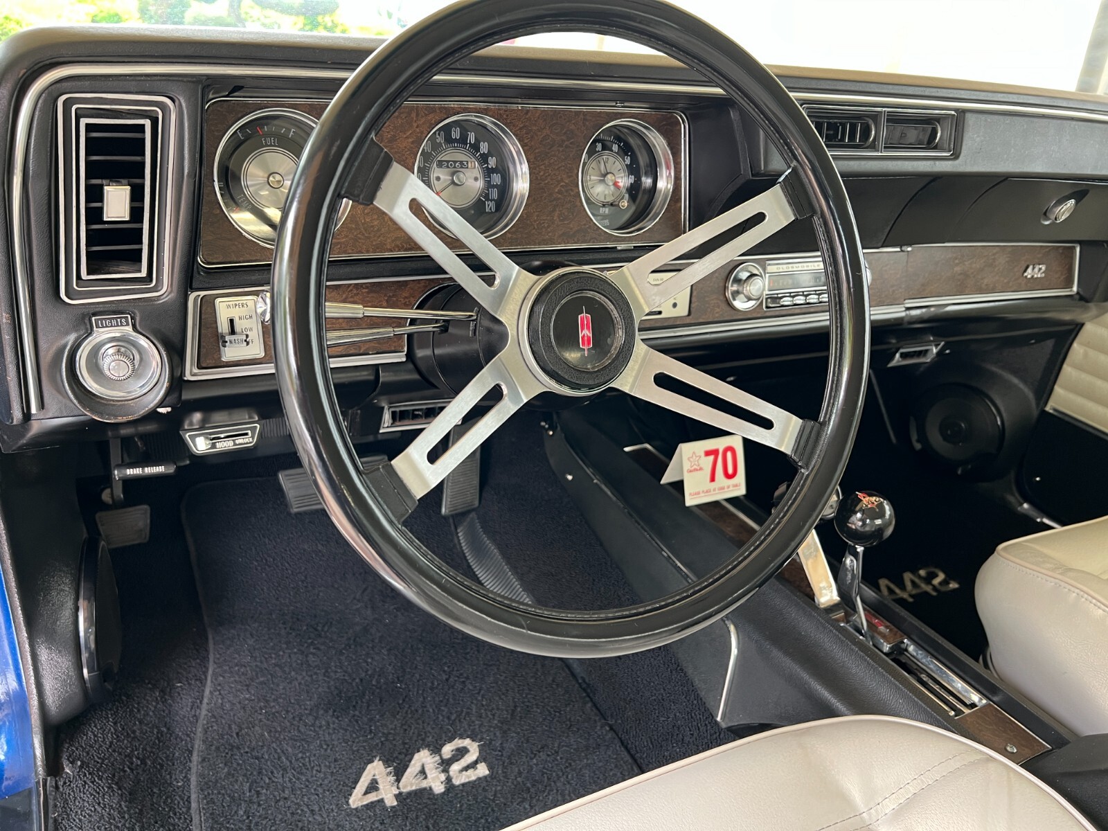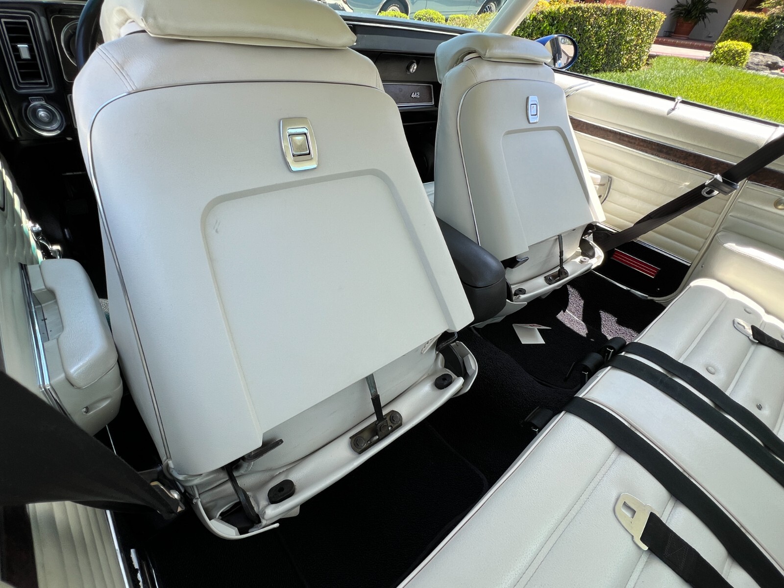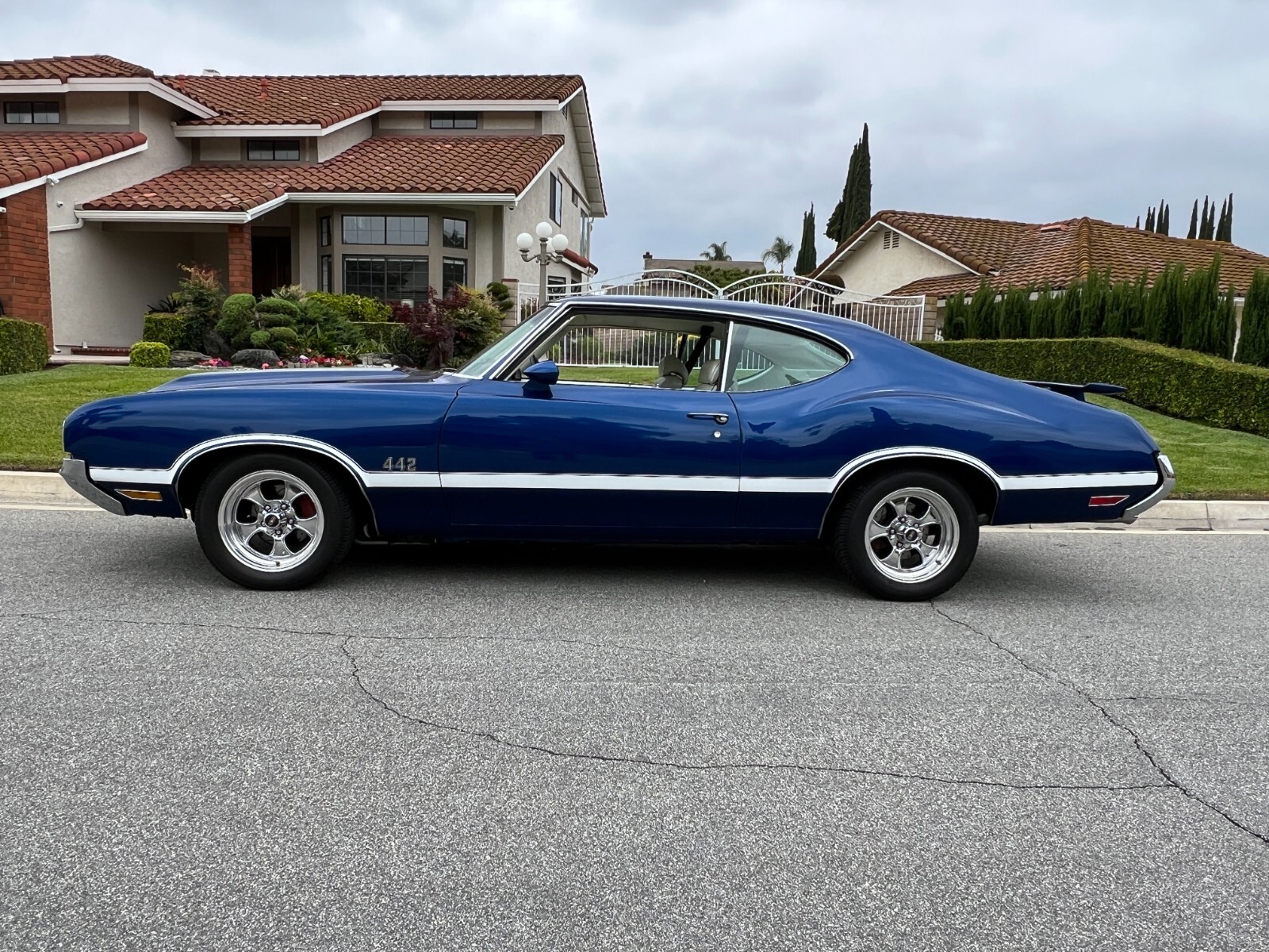•1970 Olds 442 built Freemont ,Calif. First sold Ventura,Calif. Completly restored starting 2005 by father /son project approx. 12 years later .Electron Metallic Blue w/factory W25 Ram Air hood /W35 Rear spoiler w/custom LED 3rd rear tail light. White saddle bucket seats/interior by Legendary. 455 cubic inch motor 0.030 over not numbers matching -correct serial block/Edelbrock Aluminum heads/factory 442 automatic blue print cam/roller rockers/recent New ceramic Headman headers/Doug Thorley electric cutouts/approx. 12K miles since engine rebuild-completely rings seated runs excellent. Air Gap intake w/QFT 880 CFM carb/HEI 65K Volt ignition/New AGR fast ratio steering box/Vintage AC/Hurst Dual Gate 4sp shifter/console/ART CARR HD Turbo 200R4 trans/Northern Aluminum radiatior/All new Moog suspension w/ 1 3/8 “ front sway bar/Hotchkis HD rear control arms w/1” rear sway bar/ 4-wheel disc brakes all four wheels/SSBC dual piston front caliber//new 3:42 ratio posi traction /W27 aluminum rear cover/New Koni shock. Recent 2022 New Cooper tires 235x55Rx16 on Special Chrome/Aluminum Hopster wheels./New LED headlight/custom Sequential LED tail lights/complete new harness for car/new battery/Milton 909 996-5046 So. Calf Olds Member 1228 ;OCA 3166