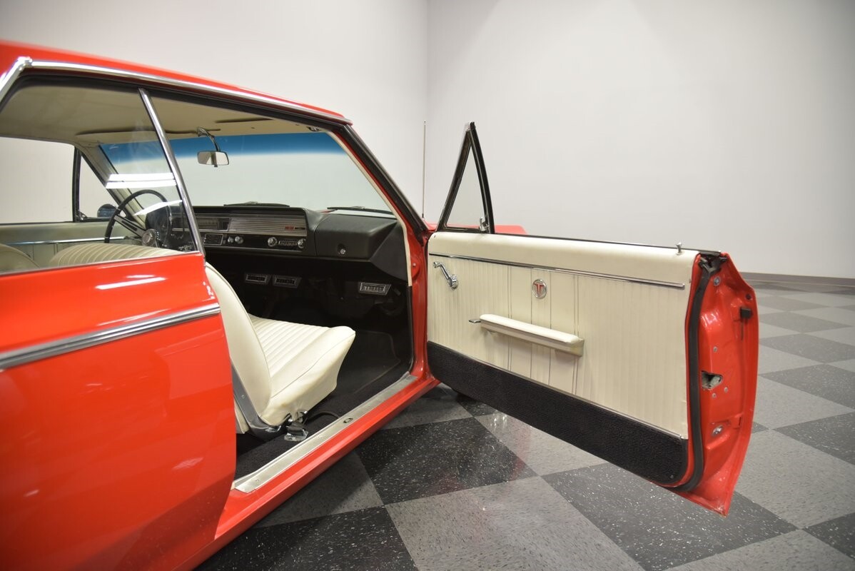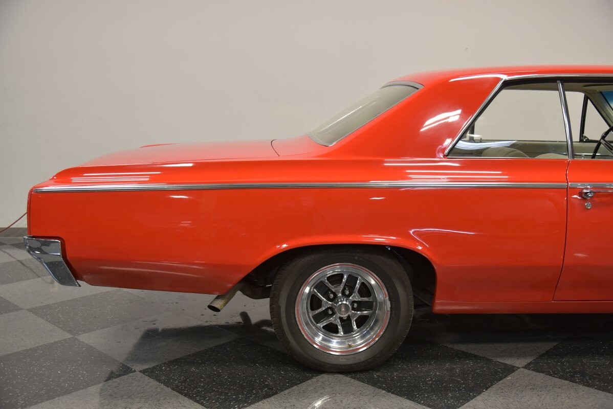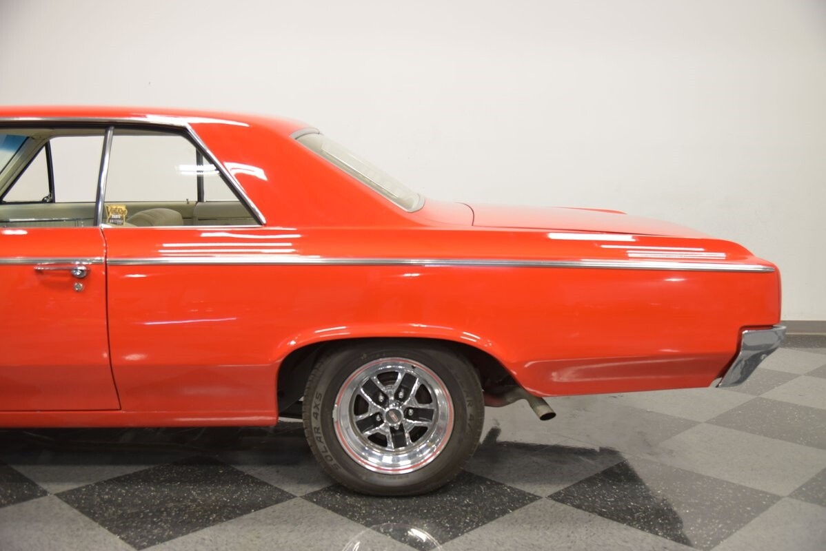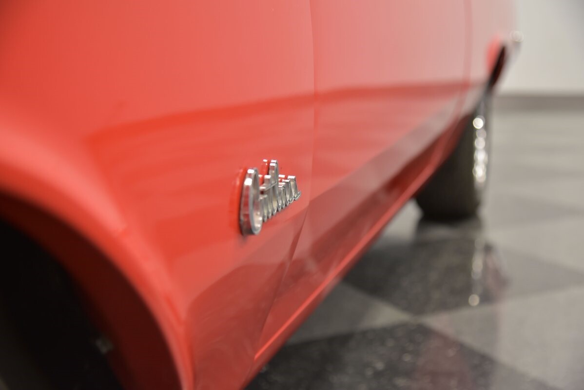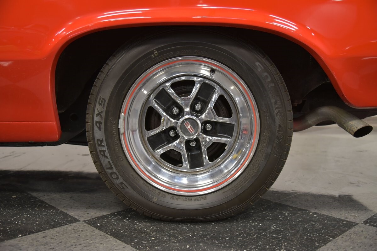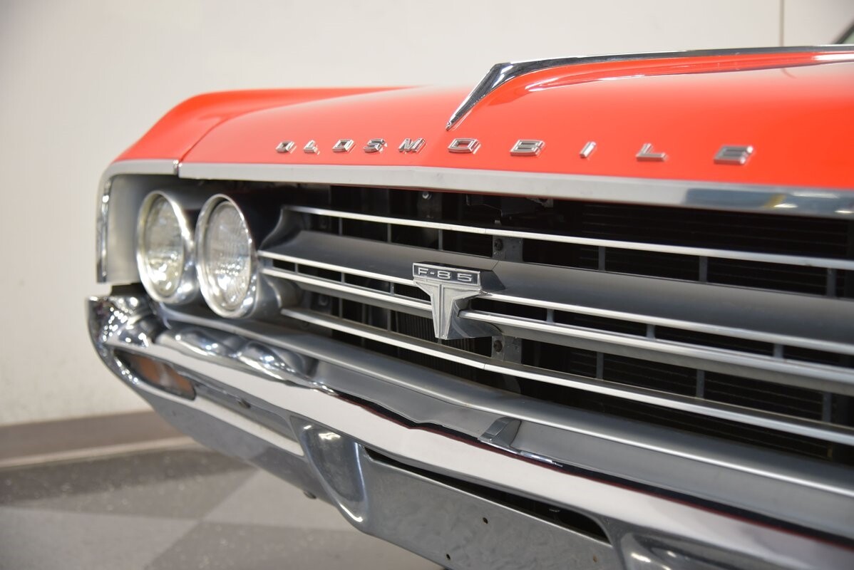 It's a Holiday Hardtop finished in Holiday Red, so this coupe already has a very cool sound to it. The later respray ensures a nice shine while also making sure this hardtop has a driver-ready style. After all, this one also wants to be a fun 442 tribute so you have sporty details, like the 442 badging, dual exhaust tips, and a cool set of upgraded Super Stock wheels with a sporty red line. The tires are even staggered to give this one a nice overall stance.