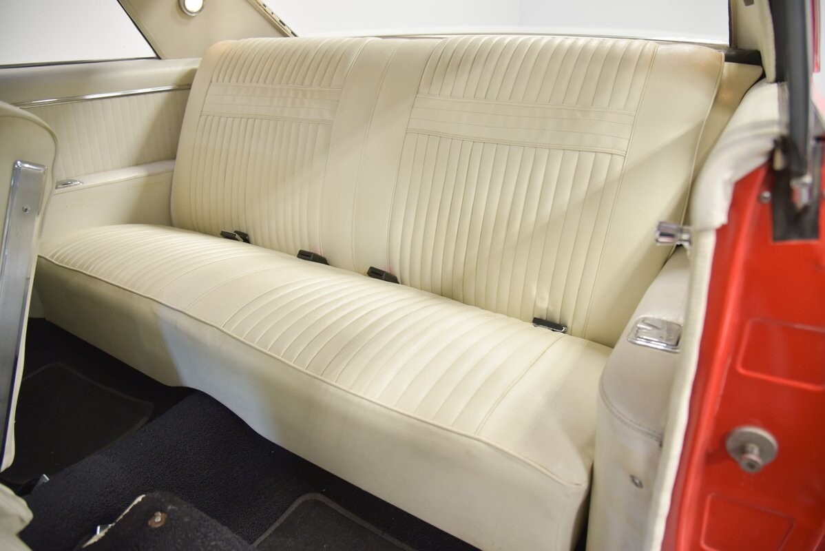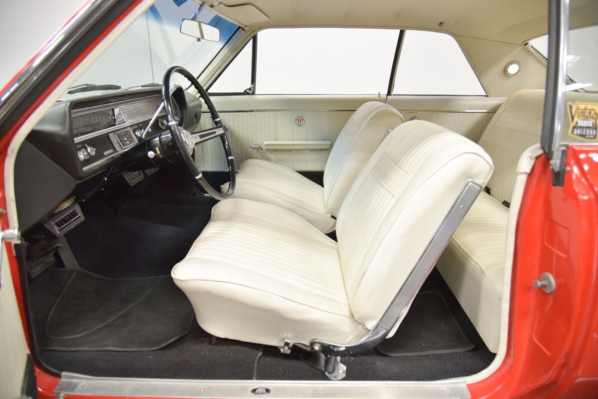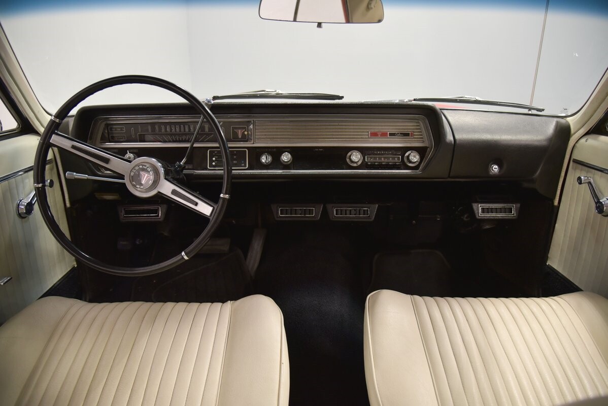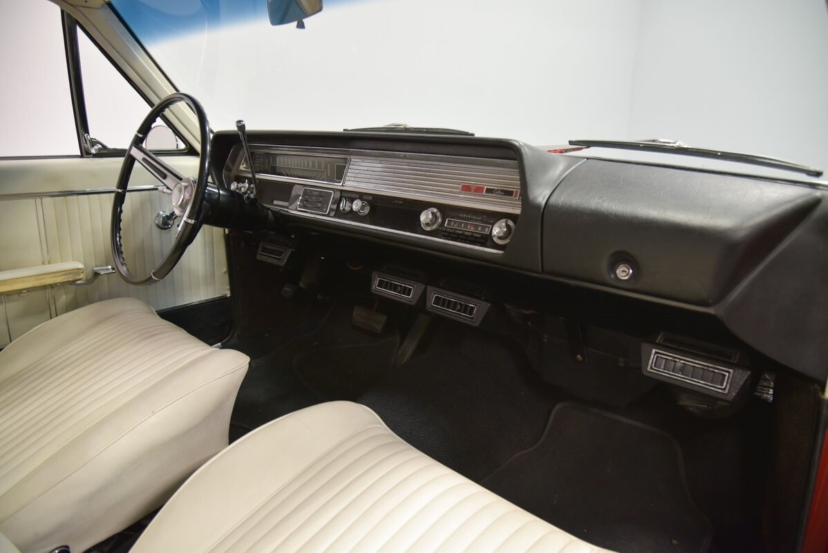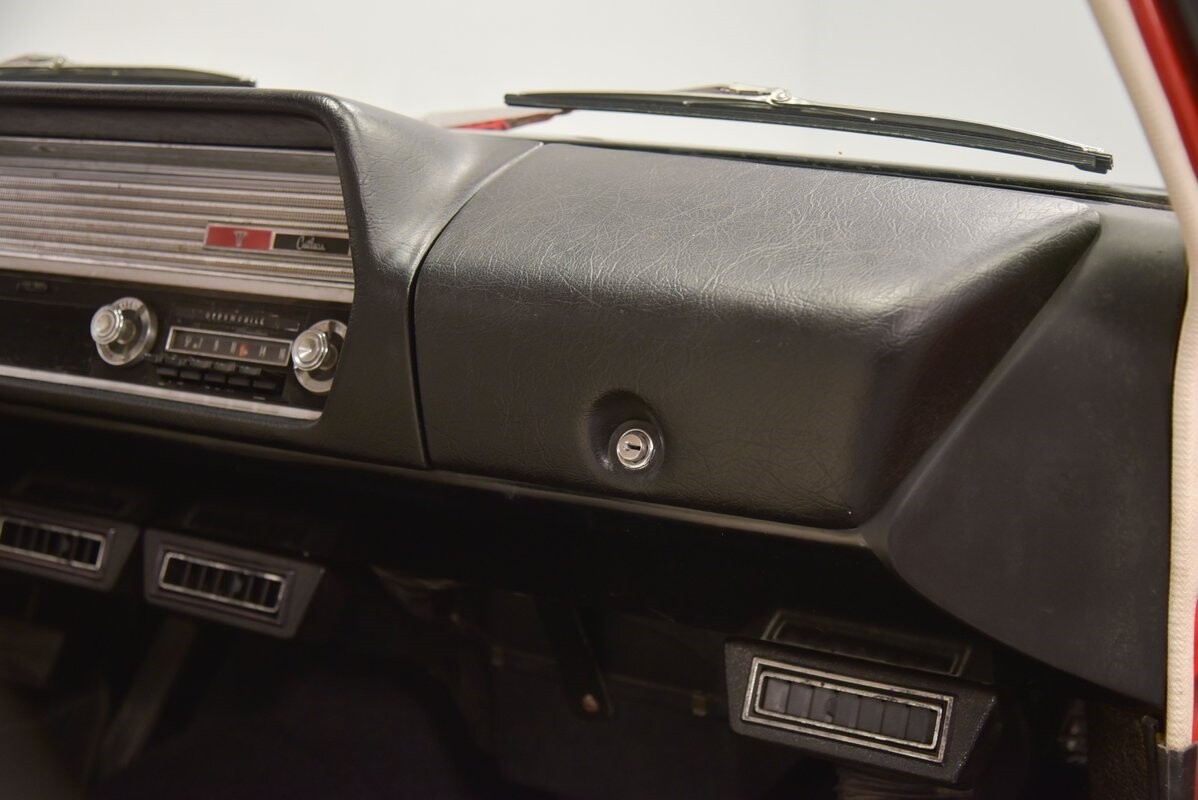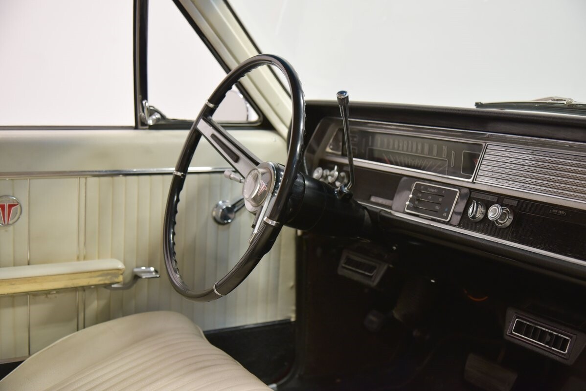 We like the look of a white interior because it always feels like a touch of upper-class style. Just like the exterior, it looks good but with a focus on being driver-ready more than a museum piece. In fact, high-traffic areas like the carpeting and steering wheel are done in black to show less dirt. There's the right classic feel with details everywhere from the working dome light to the factory AM radio there for a display. There are also nice updates, like the fully plumbed Vintage Air A/C system that should just need programming to start blowing cold. And features like the front bucket seats and the classic grip of the thin steering wheel get you ready for a proper driver's experience.