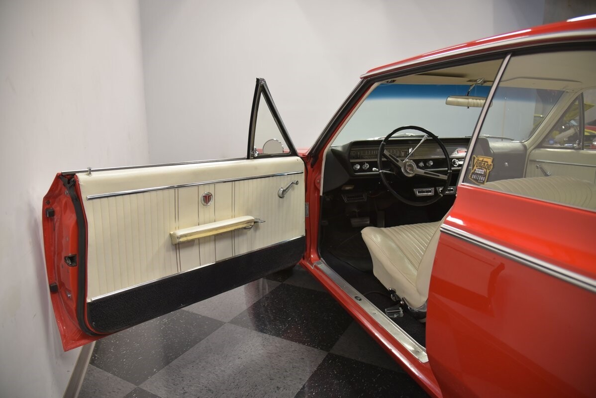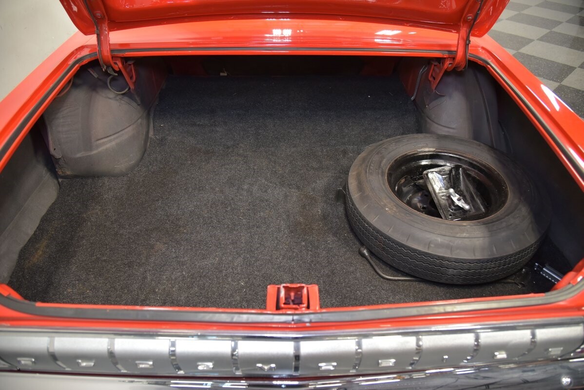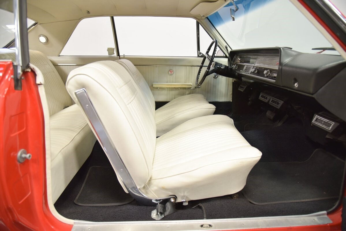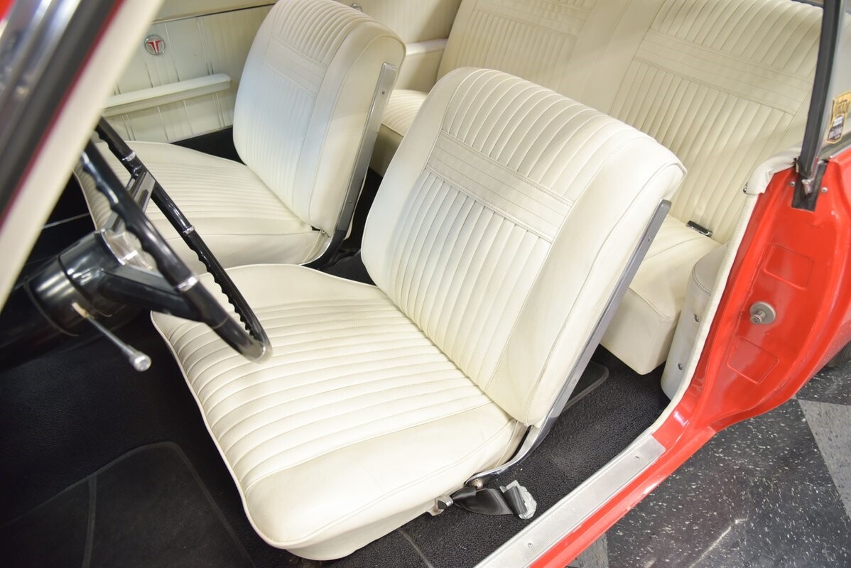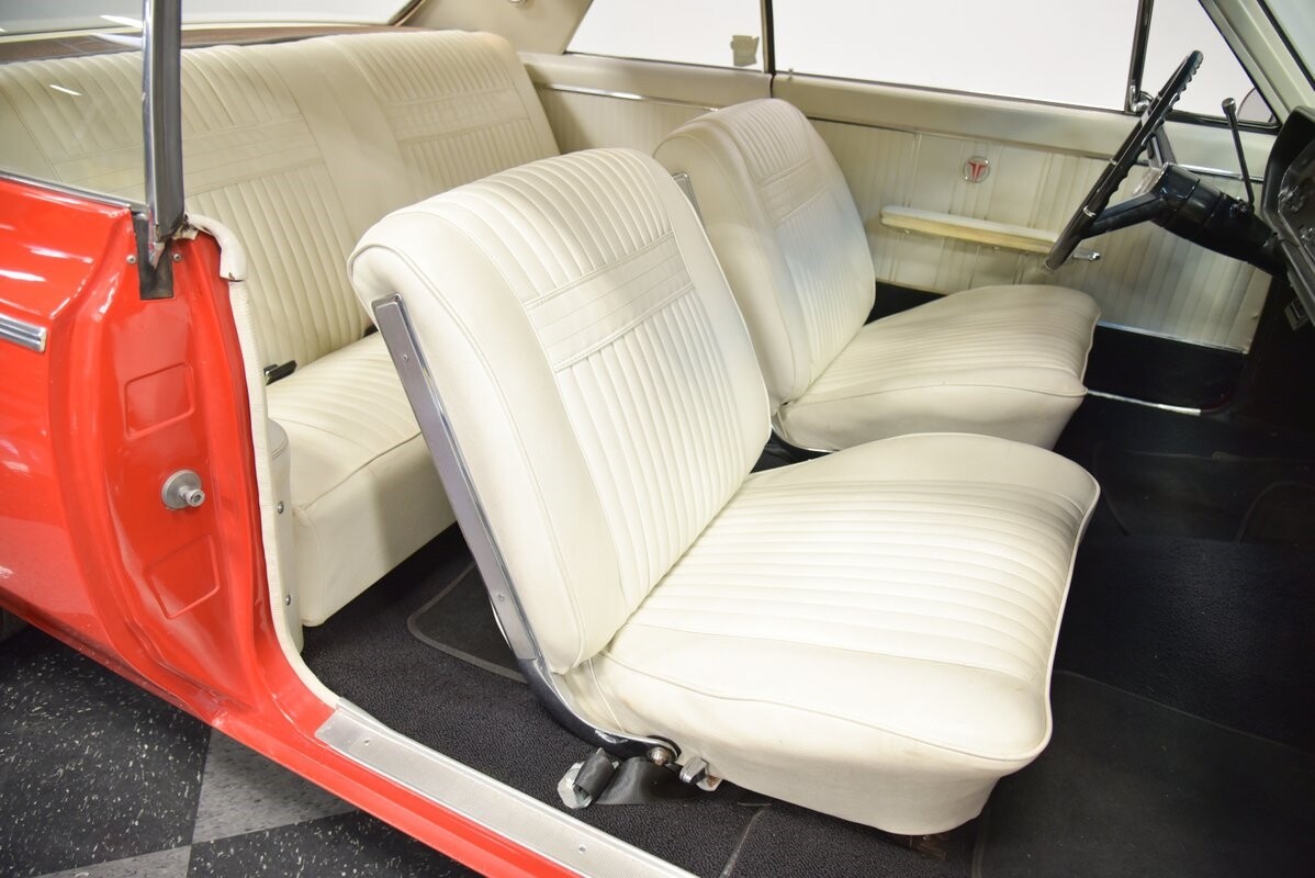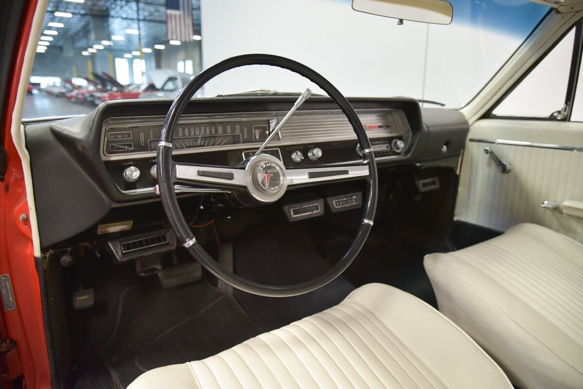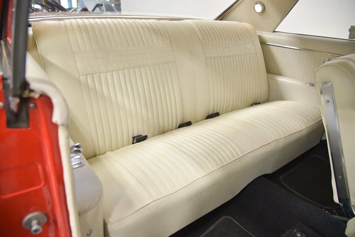 We like the look of a white interior because it always feels like a touch of upper-class style. Just like the exterior, it looks good but with a focus on being driver-ready more than a museum piece. In fact, high-traffic areas like the carpeting and steering wheel are done in black to show less dirt. There's the right classic feel with details everywhere from the working dome light to the factory AM radio there for a display. There are also nice updates, like the fully plumbed Vintage Air A/C system that should just need programming to start blowing cold. And features like the front bucket seats and the classic grip of the thin steering wheel get you ready for a proper driver's experience.