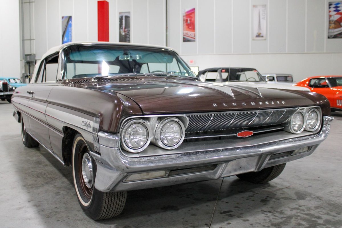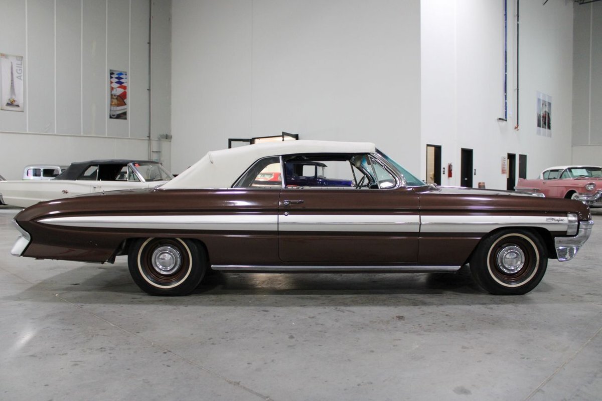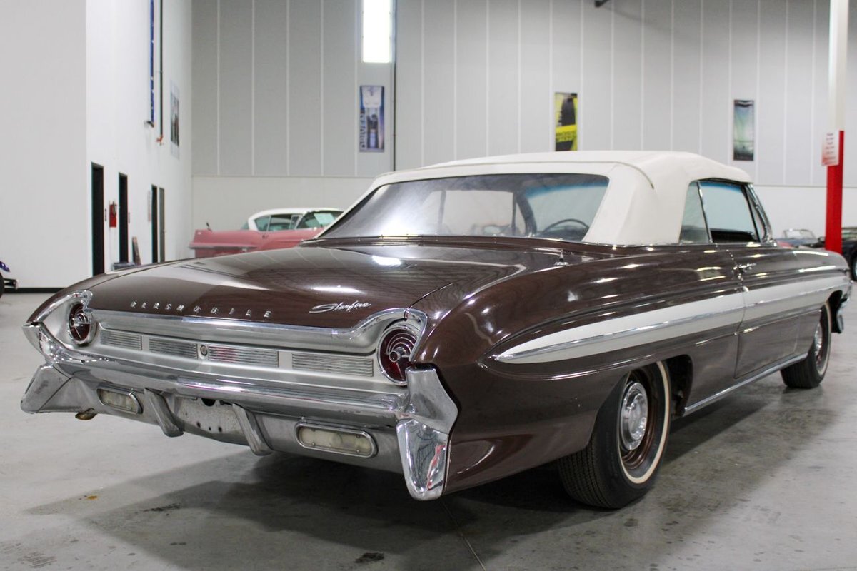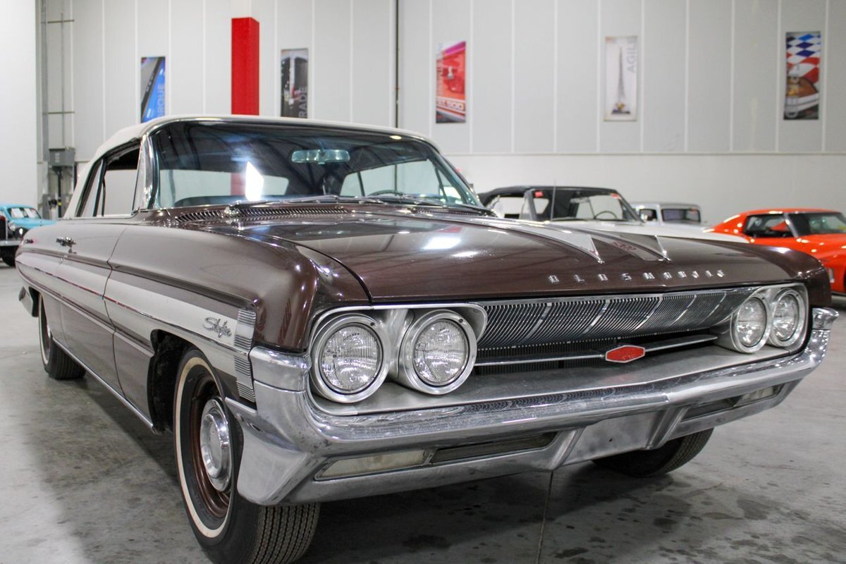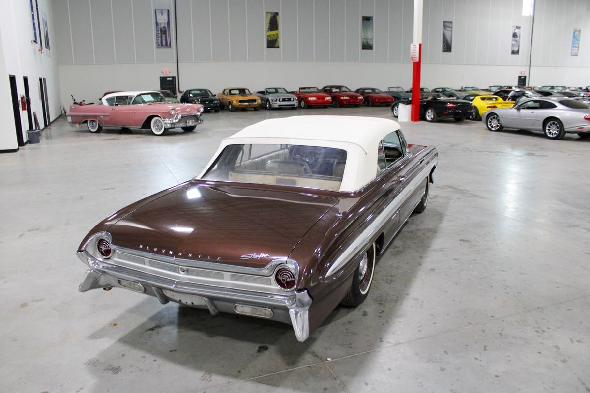 GR Auto Gallery is pleased to offer this ultra-sleek, 1962 Oldsmobile Starfire Convertible for consideration. The car is powered by its "ultra-high compression" Starfire 394 cid V8 that from the factory produced a healthy 345 horsepower and a face-ripping 440 ft lbs of torque. This power is transferred via its silky smooth Hydra-Matic automatic transmission and applied to the rear wheels. The Starfire was a premium line of Olds and typically came loaded with options and creature comforts. The car offered here remains highly original with the exception of an older repaint. At 45,841 miles, this Starfire remains in wonderful overall condition and possesses great drivability. Highlights include: Power steering, power brakes, power windows, power antenna, bucket seats, console with automatic shifter, console-mounted tachometer, factory futuristic steering wheel, dual spotlights, clock, etc. The exterior features original trim and chrome, the Starfire signature satin-smooth aluminum accent that runs the entire length of the car, fender skirts, wheel covers, etc.
