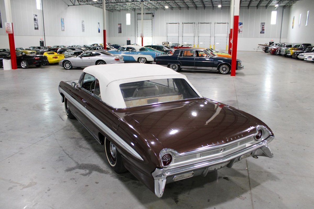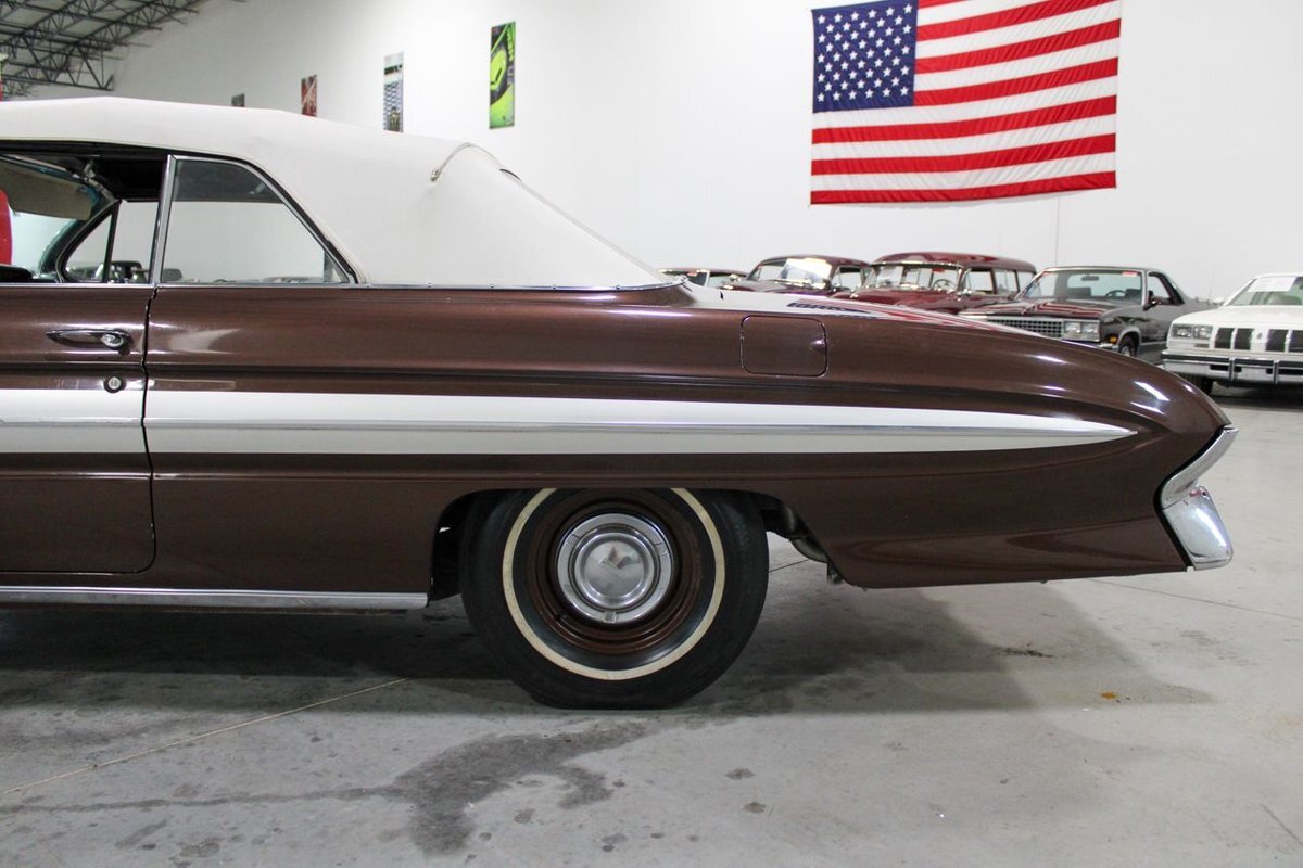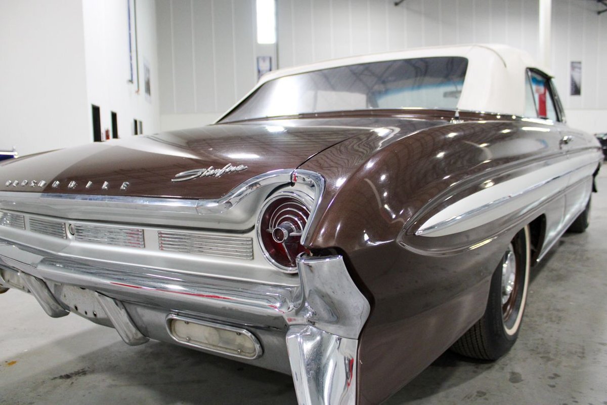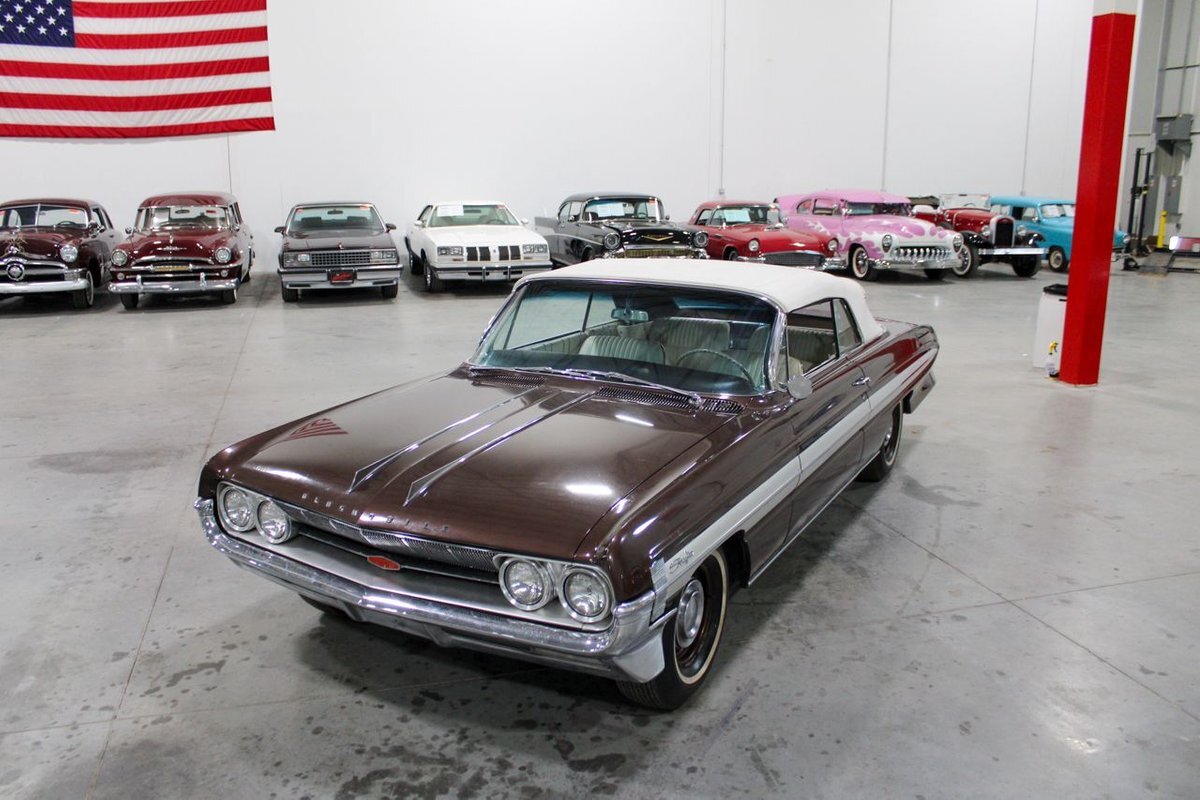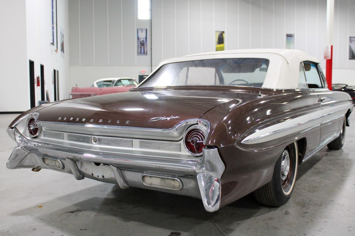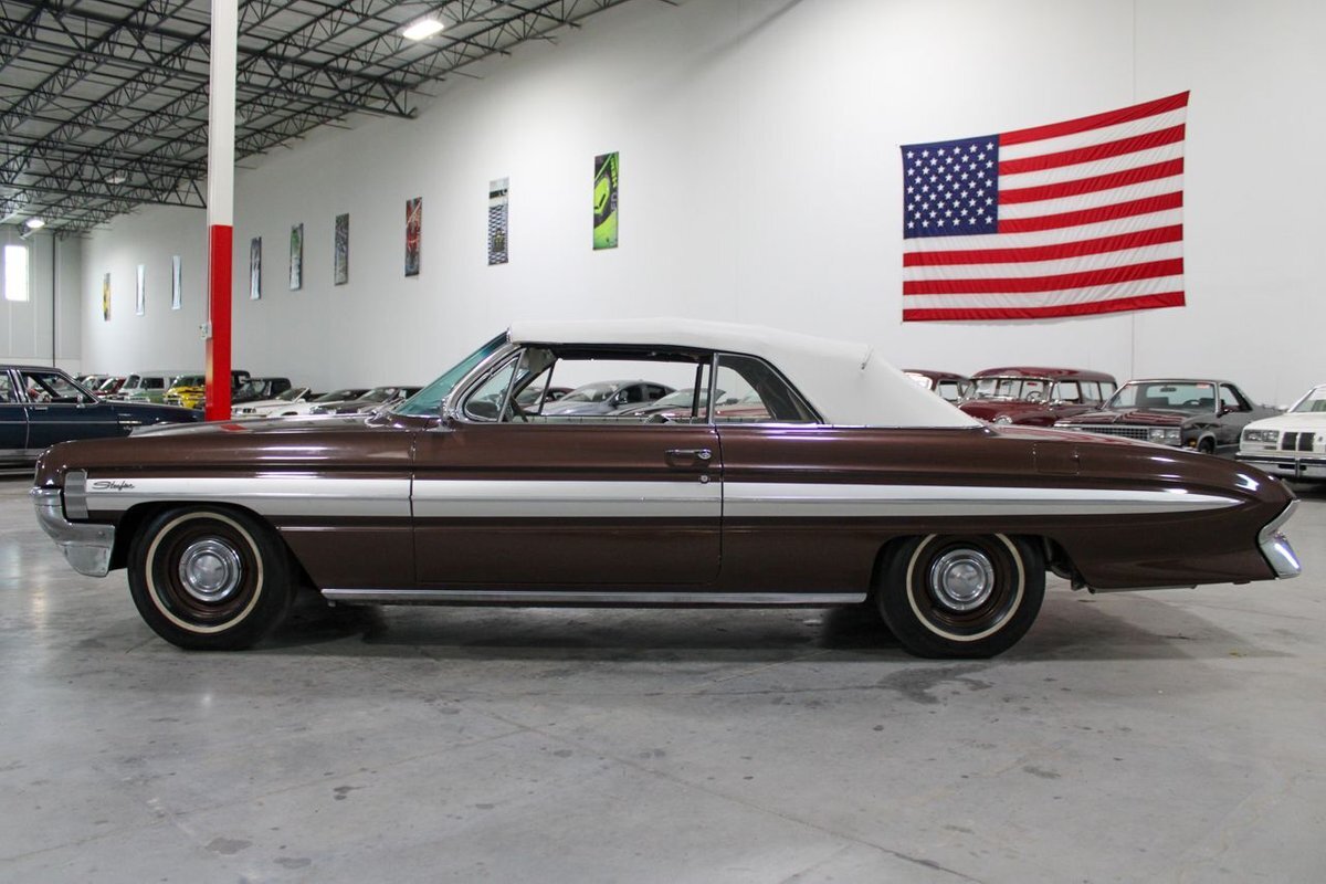 GR Auto Gallery is pleased to offer this ultra-sleek, 1962 Oldsmobile Starfire Convertible for consideration. The car is powered by its "ultra-high compression" Starfire 394 cid V8 that from the factory produced a healthy 345 horsepower and a face-ripping 440 ft lbs of torque. This power is transferred via its silky smooth Hydra-Matic automatic transmission and applied to the rear wheels. The Starfire was a premium line of Olds and typically came loaded with options and creature comforts. The car offered here remains highly original with the exception of an older repaint. At 45,841 miles, this Starfire remains in wonderful overall condition and possesses great drivability. Highlights include: Power steering, power brakes, power windows, power antenna, bucket seats, console with automatic shifter, console-mounted tachometer, factory futuristic steering wheel, dual spotlights, clock, etc. The exterior features original trim and chrome, the Starfire signature satin-smooth aluminum accent that runs the entire length of the car, fender skirts, wheel covers, etc.